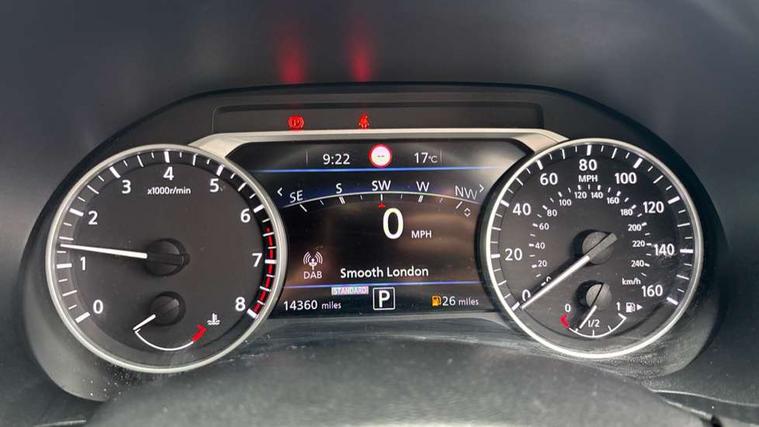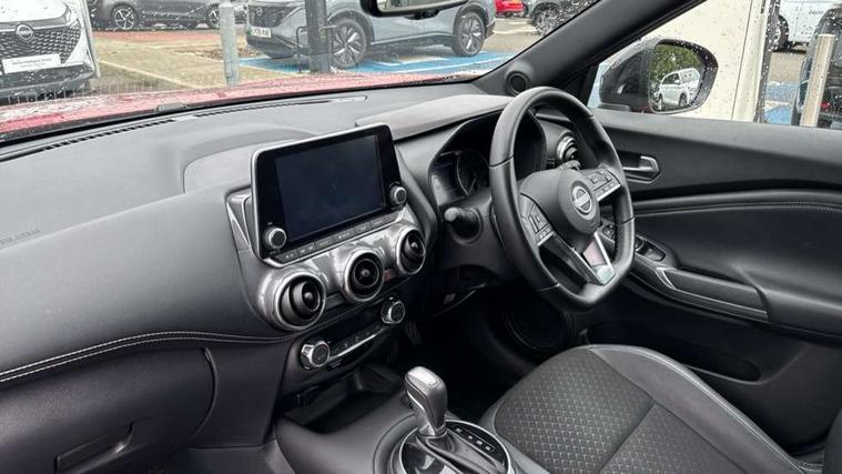 7" full colour TFT screen combimeter, Apple CarPlay and Google Android auto, Drive modes select (Eco, normal and sport), Emergency and breakdown call, Front parking sensor, Idle start/stop system, Intelligent lane intervention, Lane departure warning system, Nissan connect 8" touch screen entertainment system, Nissan connect nav with TomTom traffic, Nissan connect services and Wifi connection, Outside temperature sensor, Power Steering, Rear parking sensor, Traffic sign recognition, Trip computer, Voice recognition, Gasoline particulate filter, 6 speakers, Bluetooth system, USB, Aux-in and 12V socket, DAB Digital radio, Rear console USB port, Auto dimming interior rear view mirror, Auto headlights, Automatic hazard signal with emergency stop signal, Body colour bumpers, Body colour door handles, Electrically adjustable door mirrors with integrated indicators, Follow me home headlights, Front and rear electric window with one touch driver window, Heated and auto folding door mirrors, High beam assist, LED daytime running lights, LED headlamps, LED rear fog lamp, LED rear lamps, Rain sensor windscreen wipers, Rear privacy glass, Rear side wing doors, Rear wiper, Shark fin roof antenna in Pearl Black, Three blink turn signal, 3 height adjustable rear headrests, 3 seat bench in 2nd row, 60/40 split folding rear seat, Automatic climate control, Card holder on driver sunvisor, Cloth upholstery with black and metallic grey syntech leather inserts, Driver and passenger sliding and reclining seats, Driver side rear coat hanger, Driver/passenger sunvisors and vanity mirrors, Front and rear cabin lights, Front armrest, Front door pockets with bottle holders, Front head restraints, Front/rear passenger grab handles, Grey synthetic leather kneepad, Height adjustable driver's seat, Internal chrome door handles, Leather gearshift knob, Leather steering wheel, Luggage board, Luggage space lighting, Monoform sporty seats, Multifunction steering wheel, Rear door bottle holders, Single front passenger seat, Steering wheel mounted gearshift paddles, Telescopic steering wheel adjustment, Two cupholders in front centre console, Two rear isofix child seat anchorage points with top tether, Welcome light and console tray ambient lighting, ABS with EBD and brake assist, Active ride control, Active Trace Control, Driver and passenger airbags, Driver and passenger side airbags, Electric handbrake with auto hold function, Electronic Stability Programme (ESP), Front and rear curtain airbags, Height adjustable seatbelts, Hill start assist, Intelligent emergency braking with pedestrian and cyclist recognition, Rear door child safety locks, Seatbelt reminder for driver/front passenger and rear seats, Single tone horn, Three 3 point rear seatbelts, Traction control, Tyre pressure monitoring system, VDC Dynamic Vehicle Control, Ventilated rear brake discs, Alarm, Immobiliser, Intelligent key and start push button with walk away lock and approach unlock functions, Remote central locking,