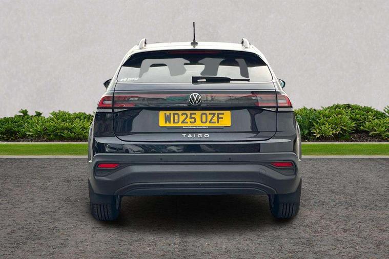8" Digital cockpit basic display, Adaptive cruise control, Advanced driver attention and drowsiness monitor, Dynamic road sign display, e-Call (emergency call), Power Steering, Rear view camera, Travel assist including emergency assist, Washer fluid level indicator, Wireless Charging including Bluetooth, Start-stop system with battery regeneration (recuperation - energy recovery during braking), Digital radio reception (DAB+), WeConnect plus, Ambient lighting with logo projection, Aspherical driver's exterior mirror, Body coloured bumpers, Body coloured exterior mirror housings and door handles, Electric windows, External USB type C socket and charging sockets, Heat insulating glass windscreen, LED rear combination lamp, LED third brake light, Left convex exterior mirror, Power folding adjustable/heated exterior mirrors and front passenger exterior mirror lowering function, Rear fog light on one side, reversing light on both sides, Rear side wing doors, Rear wash/wipe with intermittent wipe setting, Side windows in heat-insulating glass, from B-pillar and rear window dark tinted, 'Slash/ Austin' Cloth upholstery, 12V socket in centre console, 2 front reading lights, 3 rear head restraints, 3 seat bench in 2nd row, Black carpets, Ceramique headliner, Child seat anchor for child seat system i-Size, 2x top tether and child seat anchor in front on front passenger side, Door and side trim panels in titan black, Driver and front passenger seat height adjustment, Front centre armrest, Handbrake lever handle in leather, Height and reach adjustable steering wheel, Leather trimmed gear knob, Leather wrapped multifunction steering wheel with paddle shift, Luggage compartment floor, Luggage compartment light, Lumbar support for driver's and front passengers seat, Seat covers in titanium black, Single front passenger seat, Split folding backrest with centre armrest and unsplit rear seat bench, Storage compartment under front seats, Sun visors with illuminated vanity mirrors, Titanium black instrument panel, Chrome Package - Taigo, Drivers assistance package - Taigo, Light and sight pack - Taigo, 2 x 3-point seatbelts/outer rear seats with ECE label, 3-point seat belts in front with pretensioner and height adjustment, 3-point seatbelt for centre rear seat, Driver and front passenger airbag with front passenger airbag deactivation, Driver and front passenger safety-optimised head restraints, Electronic stability control, Extended and predictive pedestrian/ cyclist protection, Front and rear disc brakes, Front curtain and side airbags with center airbag, Hill start assist, Manual rear child locks, Single tone horn, Tyre pressure loss indicator, Anti-theft alarm system with interior monitoring, backup horn, and towing protection, Keyless locking and starting system keyless access with safelock, Black (slush) Dashboard, Lava stone black gloss/matt decorative inserts in dash and front door panels, Low rolling resistance tyres,