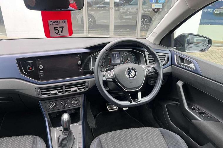 Cruise control + speed limiter, Digital clock, Discover navigation - 8.0" colour touch screen navigation/infotainment systems with Car- net guide and inform, Driver alert system, Emergency call service, Front assist, radar sensor controlled distance monitor, city emergency braking and predictive pedestrian protection, Multifunction computer plus, Power assisted speed sensitive steering, Speedo and rev counter, electronic odometer, trip, service interval display and fuel gauge, Start/stop system, Ultrasonic front and rear optical and audible parking sensors, Voice activation, Volkswagen connect, Warning buzzer and light for front seatbelts unfastened, Wireless app connect, Battery regeneration during braking, Galvanished body, DAB digital audio broadcast, Diversity antenna for FM reception, Premium USB cable in choice of either Apple or Android smartphone compatibility, Black grille with chrome surround, Black radiator grille with chrome louvres, Body colour bumpers, Body colour door handles, Body colour door mirrors with integrated indicators, Body colour rear spoiler, Body coloured side sills, Electric front windows, Electric operated/heated door mirrors, Front fog lights including static cornering, Front windscreen washers and wipers with 4 speed intermittent delay, Halogen clear headlights with range adjustable including automatic headlights on, Heat insulating tinted glass, Heated rear window with auto timer, High level 3rd brake light, Internally adjustable door mirrors, LED daytime running lights, LED rear number plate lights, Manual dimmable interior rear-view mirror, Rear electric windows, Rear tinted glass from B-pillar backwards approx 65% tinted, Rear windscreen washer and wiper with interval delay, reverse activated, United badge on B-pillar, United door sill protector, 2 bag hooks in luggage compartment, 2 front and 2 rear reading lights, 2 front cupholders and 12 V socket with cover, 3 rear head restraints, 4 grab handles, 60/40 split folding rear seat, Atlantic blue dash insert and centre console, Centre console storage with open storage compartment, Chrome interior door handles, Driver and front passenger seat height adjustment, Driver and front passenger sunvisors with illuminated vanity mirrors, Dust/pollen filter, Folding rear seat backrest, Front + rear carpet mats, Front head restraints, Front seat backrest storage pockets, Gear lever gaiter in black trim surround, Glovebox, Handbrake grip button in chrome effect, Height/reach adjustable steering column, Instrument lighting, adjustable panel illumination, Interior light with delay, Isofix Preparation 2 Rear child seats, Leather gear knob and handbrake grip, Leather multifunction steering wheel, Luggage compartment cover, removable, Luggage compartment lighting, Luggage compartment with variable load floor, Lumbar adjustment for front seats, Manual air conditioning, Storage compartment in front doors, Storage compartment in rear doors, Storage compartment under front seats, Sunglasses holder, United cloth upholstery, Composition Media Pack - Polo United, Light and sight pack - Polo, Winter pack - Polo, 3 point height adj front seatbelts + pretensioners, 3x3 point rear seatbelts, ABS, Automatic post collision braking, Driver/front passenger airbag, Drivers and front passengers safety optimised head restraints, ESP with EDL + ASR, Front and rear passenger curtain airbags, Front disc brakes and rear drum brakes, Front passenger airbag deactivation, Front seat side impact airbags, Hill hold control, Hydraulic Brake Assist (HBA), Single tone horn, Tyre pressure monitoring system, Alarm with interior protection and deactivation via infotainment system, Electronic engine immobiliser, Remote central locking with 2 remote folding keys, Air vents in High gloss black, Limestone grey decorative inserts, Seat covers in the Waveform design, 15" Dublin alloy wheels, Tyre mobility kit,