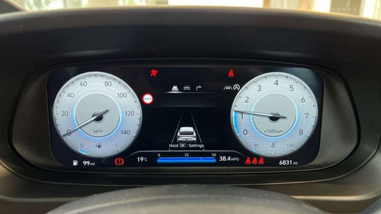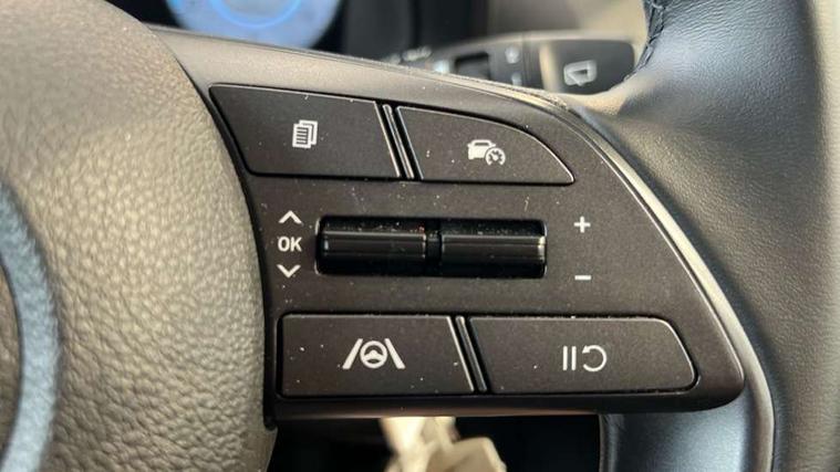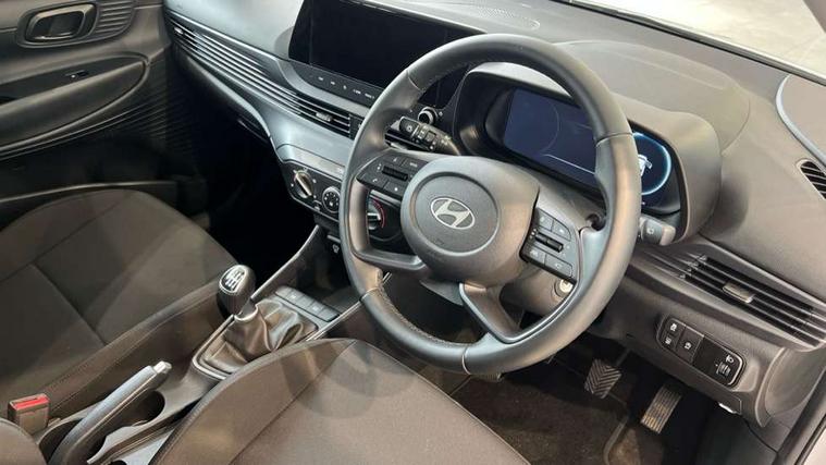 10.25" digital supervision cluster, 2nd Gen eCall, 8" Touchscreen with DAB, Apple car play/Android Auto, Cruise control + speed limiter, Forward collision assist with car, pedestrian and cycle detection, Intelligent speed limit warning, Lane follow assist, Lane keep assist, PAS, Rear parking sensor, Rear view camera with dynamic guidelines, USB C port front, 3rd brake light, Dusk sensor, Electric adjustable heated door mirrors, Front grille mesh pattern design, High beam assist, LED daytime running lights, LED Headlights, LED taillights, Rain sensor, Rear side wing doors, Rear wiper, Repositioned flat metal hyundai emblem, 3 seat bench in 2nd row, Adjustable head restraints, Air conditioning, Cloth upholstery, Floor mats, Leather steering wheel, Single front passenger seat, 3x3 point rear seatbelts, ABS with front and rear diagonally split, Autonomous emergency braking, Child locks on rear doors, Front ventilated disc brakes, Rear solid disc brakes, Tyre pressure monitoring system, 16" alloy wheels, Tyre repair kit,