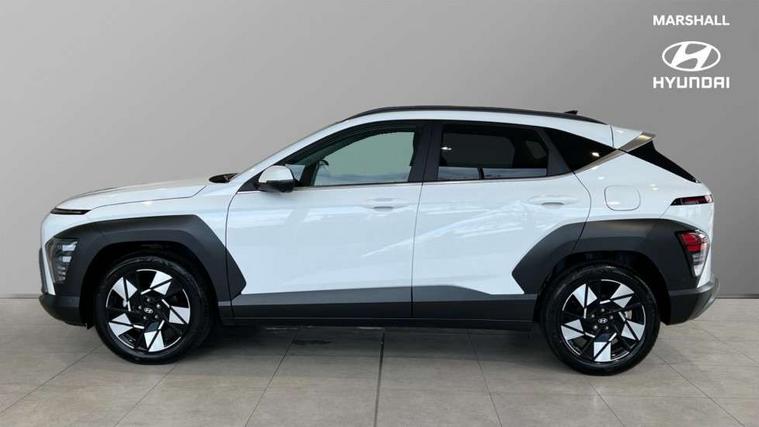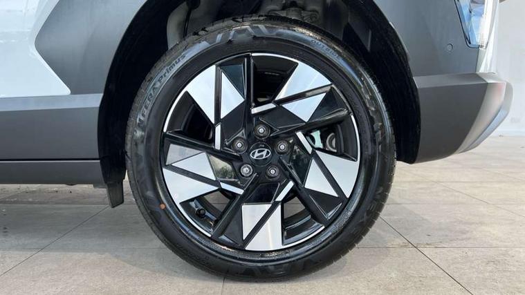 12.25" digital instrument cluster, 12.3" touchscreen centre console display satellite navigation with bluelink, live services and mapcare, Blind spot collision avoidance assist, Blind spot view monitor, Bluetooth connectivity with voice recognition, Driver status monitor (DSM), Driver supervision instrument cluster with 12.3" LCD display, eCall emergency call system, Feature on demand - Enabled, Forward collision avoidance assist (FCA 1.5) - Car, pededstrian, cycle and junction turning, Front parking sensor, HDA - Highway Drive Assist Level 1.5, Height adjustable power tailgate, Intelligent speed limit assist, Lane follow assist, Lane keep assist, Leading vehicle departure alert (LVDA), Parking Collision Avoidance Assist-Reverse (PCA-R), Parking distance warning - side, Parking system with rear camera and guidance system, PAS, Rear cross traffic collision avoidance (RCCA), Rear parking sensor, Rear view camera with dynamic guidelines, Roadside assistance, Safe exit warning (SEW), Smart cruise control with stop and go functionality, Surround view monitor, Wireless phone charging pad, Wireless Smartphone Integration includes Apple CarPlay and Android auto, 2 front USB C and 2 rear USB C charging points, Bose Premium Audio system with 7 premium speakers + subwoofer, DAB Digital radio, Steering wheel audio, phone and cruise controls, Auto dimming rear view mirror, Automatic headlights with dusk sensor, Automatic windscreen wipers with rain sensor, Black painted wheel arch inserts, Body colour exterior door handles, Body coloured door mirrors, Door mirror LED indicator lights, Electric front windows with anti-trap mechanism and one touch control, Electric rear windows, Electric sunroof, Electrically adjustable and heated door mirrors, Horizon centre LED DRL, LED projector headlights, LED taillights, LED upper and lower rear lights, Power folding door mirrors, Privacy glass - Rear windows and tailgate, Rain sensor, Rear roof spoiler with integrated LED brake light, Rear side wing doors, Rear skid plate - silver, Rear wiper, Roof rails, Solar glass with front door glass and windscreen, Tinted glass in front and rear doors, Windscreen auto defog function, 12V power outlet in front console, 2 zone climate control, 3 seat bench in 2nd row, 40/20/40 split folding rear seat, Adjustable head restraints, Ambient lighting, Driver and passenger front seat pockets, Driver's seat electric adjustments, Driver's seat lumbar support, Driver/passenger sunvisors and illuminated vanity mirrors, Floor mats, Front passenger's seat electric adjustments, Heated front seats, Heated rear seats, Heated steering wheel, Height/reach adjustable steering column, Leather steering wheel, Leather upholstery, LED centre interior light, LED front interior light, Luggage compartment LED lighting, Luggage net, Luggage shelf, Metal paint effect interior door handles, Rear centre armrest with cupholders, Shift by wire SBW, Single front passenger seat, Ventilated front seats, Vertical adjustment rear head restraints, Trailer wiring package - Kona, Airbag - front, front side, curtain and centre front airbag, Anti-lock brake system (ABS), Childproof rear door locks, Downhill brake control, Electric parking brake, Electronic stability control, Fixed 3 point for second row centre passenger seatbelt, Hill start assist control (HAC), Rear seat alert, Tyre pressure monitoring system, Alarm/immobiliser, Rear occupant alert, Remote central locking, Smart key with keyless entry and start/stop button, Five year annual vehicle health checks, 18" Alloy wheels, Temporary mobility kit (TMK),