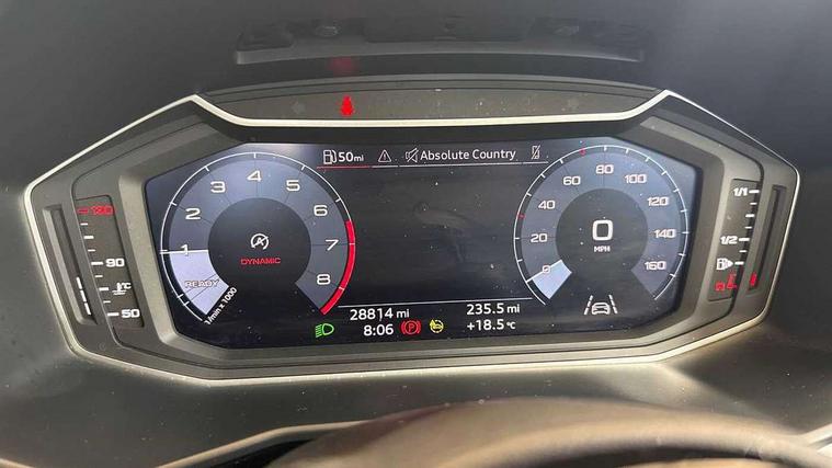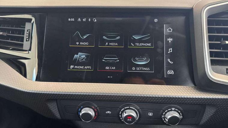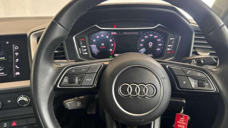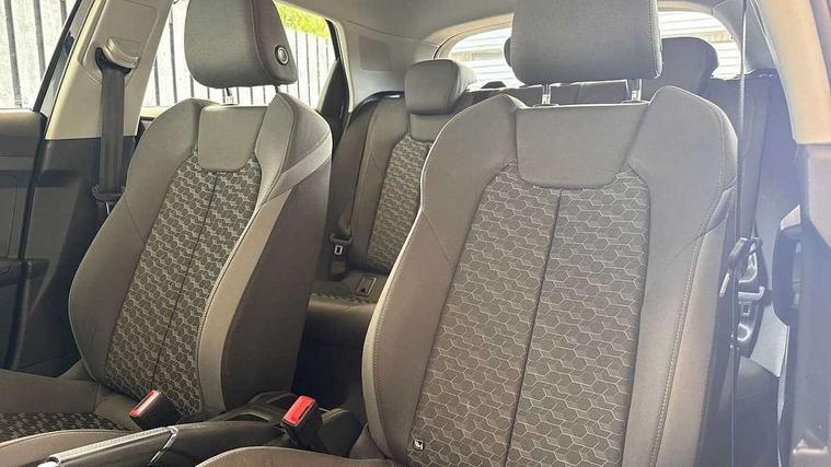 10.25" Digital instrument cluster display classis style instrument dials + speed, odometer, time, outside temperature, telephone menu + fuel level warning, Audi connect safety emergency and service including E-call, Audi drive select - power steering assistance + engine, Audi smartphone interface with connect compatible smartphone via USB directly MMI display + Nav, music, third party apps controlled via MMI controller, Automatic start/stop system, Bluetooth interface, Cruise control, Driver's information system, Electromechanical power steering, Emergency services call system, Lane departure warning system, Service interval indicator, Speed limiter, Voice control system, Washer fluid level indicator, Dynamic suspension, 1 x SDXC card reader, 2 x USB type C connection points, DAB Digital radio, MMI radio plus with 8.8" colour MMI display screen and MMI touch, Auto dimming rear view mirror, Body coloured bumpers, Body coloured door mirrors, Electric front and rear windows, Electrically adjustable, heated, folding door mirrors with integrated LED side indicator, Front side air inlets in grained matt black and C frame in titanium black, Heat insulating glass windscreen and side windows, Heated rear windscreen, High level LED brake light, LED headlights with LED rear lights + dynamic rear indicators + headlight adjustment and high beam, turning light + LED daytime running lights, Radiator grille and rear diffuser in matt titanium black, Radiator protective grille frame in matt aluminium silver, Rain and light sensors, Rear fog lights, Rear side wing doors, Rear wing door, Rear wiper, Side front spoiler lips in grained matt black, 12V socket in centre console with two cup holders, 3 rear seats with headrests, 3 seat bench in 2nd row, 40:60 Split folding rear seat or folded fully, Door sill trims with aluminium inlay, Driver and passenger seat with manual height adjust with forward and backwards adjustment, Front head restraints, Front passenger seat, Front/rear floor mats, Height and reach adjustable steering wheel, ISOFIX child seat mounting for front passenger and outer rear seats including top tether attachment point of outer rear seats, Leather gear knob with aluminium trim, Leatherette handbrake grip, Luggage compartment light with front and rear reading lights, Manually adjustable lumbar support in front seats, Novum cloth upholstery with front sport seats, Titanium grey cloth headlining, Luggage compartment pack - A1, 3x3 point rear seatbelts, Audi pre-sense front with pedestrain and cyclist recognition, Brake assist function, Driver and front passenger airbag with front side and head airbags, Electronic Stability Control including ABS, EBD, ASR and EDL, Front passenger airbag deactivation switch, Hill hold assist, Manual rear child locks, Seatbelt height adjustment for front seats, Seatbelt monitoring, Tyre pressure warning light, Warning triangle and first aid kit, Anti theft alarm, Anti theft wheel bolts and loose wheel warning, Immobiliser, Remote central locking with 2 foldaway keys, Aluminium trim for control switches, air vents and digital instrument cluster, Silver grey accent areas including air vents, door handle recesses and centre console in diamond paint finish, Slate grey inlays polygon structure in fine paint finish,