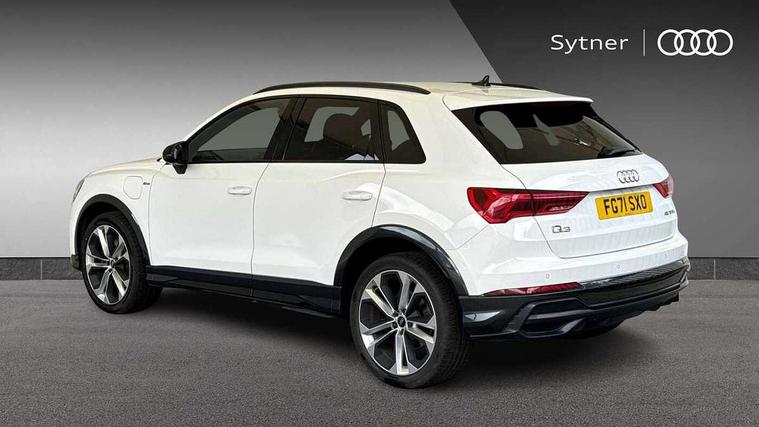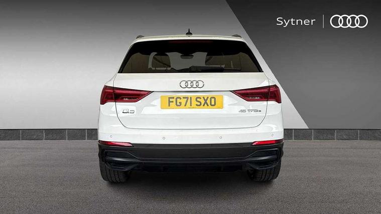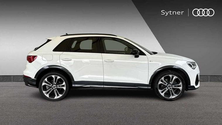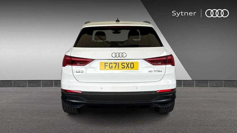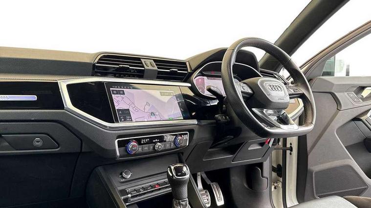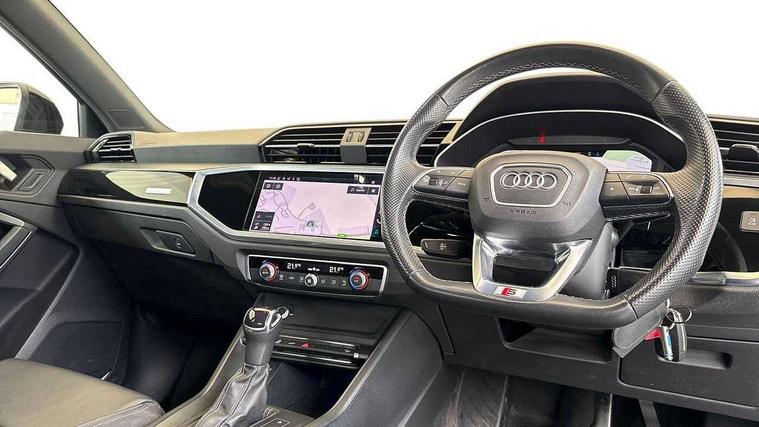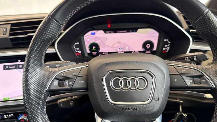 Amazon alexa Integration, Audi connect safety and service (e-call), Audi drive select, Audi lane departure warning, Audi smartphone interface includes wireless Apple carplay/Android Auto, Audi Virtual Cockpit - 10.25" display, Bluetooth interface, Camera based traffic sign recognition, Cruise control + speed limiter, MMI Navigation Plus with high resolution 10.1 inch touchscreen colour display, Power operated tailgate, Progressive steering, Rear parking sensors, Service interval indicator, Start stop system with recuperation, Voice control system with natural language interaction, 3 pin 10 amp domestic charging cable, Type 2 mode 3 32 amp charging cable, Type 2 socket for AC charging, 2 USB-C ports with charge and data functions, 6 passive loudspeakers, DAB digital radio module, Acoustic windscreen, Auto dimming frameless rear view mirror, Black roof rails, Electrically folding, adjustable and heated door mirrors with integrated LED side indicators and kerb view function for passenger side, Front and rear electric windows, Front fog lights, Grille vertical bars in aluminium silver/Matt, High gloss black finish B and C pillars, LED headlights with LED daytime running lights and dynamic rear indicator, LED rear lights, Privacy glass dark tinted rear and rear-side windows (from B-pillar backwards), Rain and light sensors, Rear diffuser strip in matt titanium black, S line bumpers in contrasting Manhattan grey, 12V socket in rear centre console, 3 spoke flat bottomed high multi-function leather sport steering wheel with gearshift paddles, 40:20:40 folding with manual adjustment for 60:40 forwards/backwards position and backrest angle, Adjustable rear seat bench/backrest with centre armrest and cupholder, Black cloth headlining, Dual zone electronic climate control, Front and rear black floor mats with contrast stitching in rock grey, Front and rear headrests, Front and rear roof module including reading lights, Front centre armrest, Glove compartment lighting, Height and reach adjustable steering wheel, Illuminated door sill trims with S logo, ISOFIX child seat mounting for front passenger with airbag deactivation and outer rear seat including top tether attachment point for outer rear seats, Luggage compartment light, Manual front seats with height adjustment, Perforated leather gearknob, Stainless steel luggage compartment sill finisher, Stainless steel pedals, Black styling pack - Q3, Non smoking pack - Q3, 3x3 point rear seatbelts, 6 airbags - Driver, front passenger, curtain and side windows, Audi pre-sense front with pedestrain and cyclist recognition, Electrically operated child locks on rear doors, Electromechanical parking brake, Electronic stabilisation control including ABS, ASR and EDL, Hill descent control, Hill hold assist, Pre sense basic, Seatbelt monitoring, Tyre pressure warning, Warning triangle and first aid kit, Anti theft alarm, Anti theft wheel bolts, Remote central locking, Detail dashboard around MMI touch colour display in glass look, black with surround in aluminium look, Leatherette door armrest, Piano black inlay, Tool kit, Tyre repair kit,