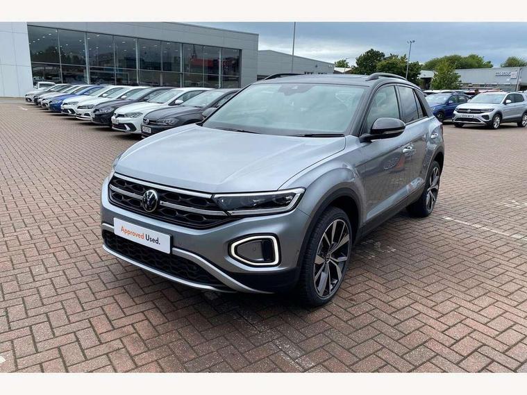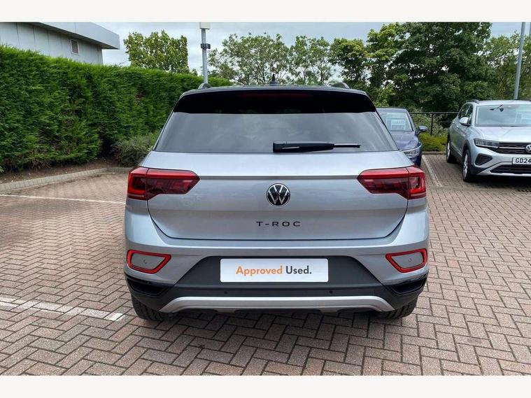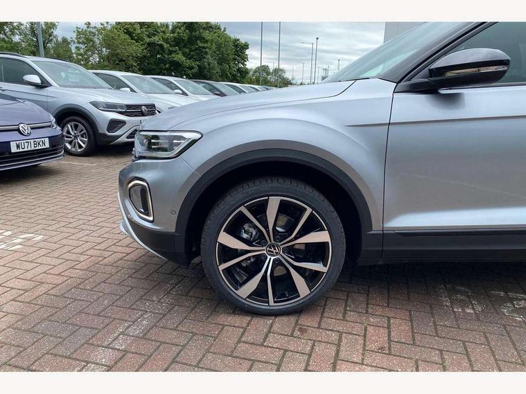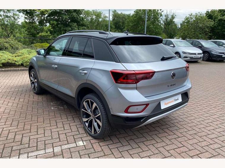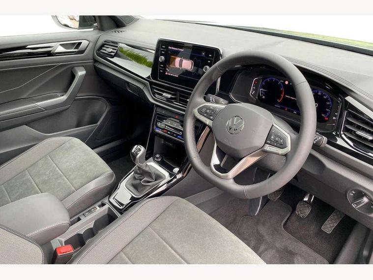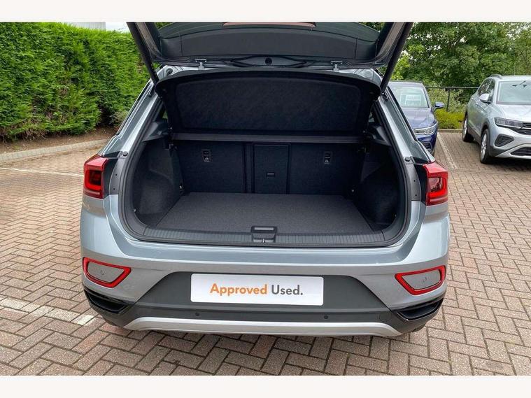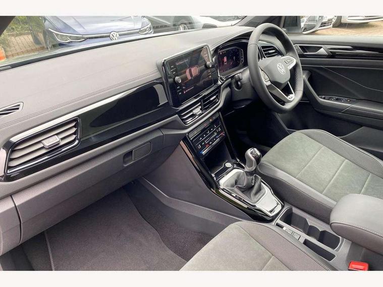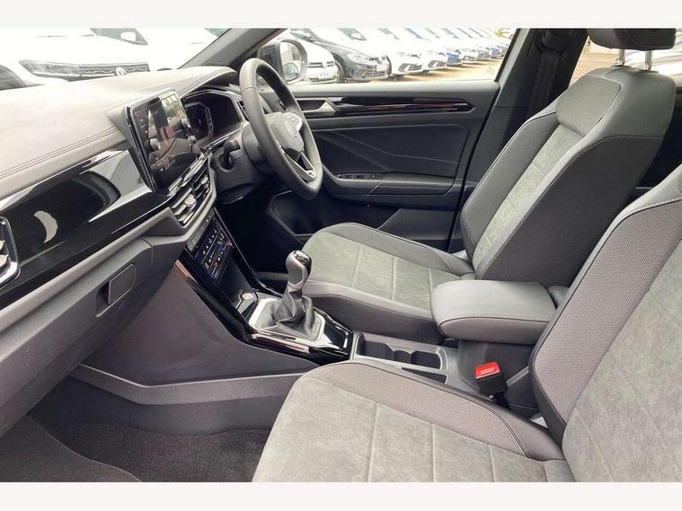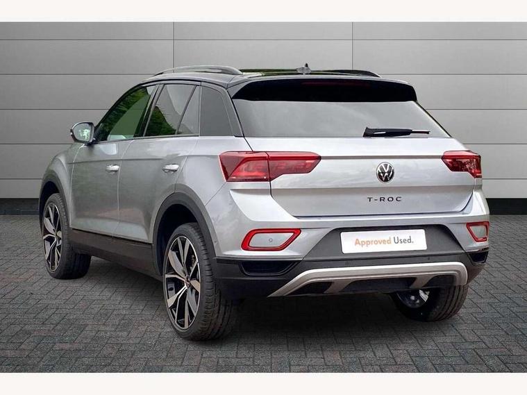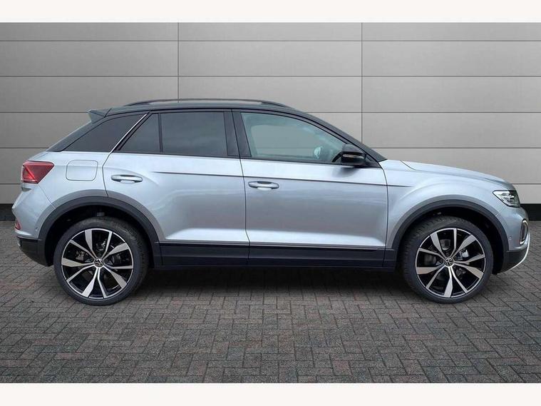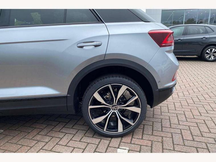 10.25" Digital cockpit pro, Advanced driver attention and drowsiness monitor, Dynamic road sign display, Emergency call service, Lane keeping system Lane Assist, Mobile phone interface, Modified key software - reduce switch off time for key status change to Long no motion, Online services, Park assist including front and rear parking sensors, Power assisted speed sensitive steering, Rear view camera, Service interval indicator, Tailgate/trunk lid release from outside, Think blue trainer driver tips and journey analysis, Warning sound and light for front seatbelts unfastened, Wireless app connect, Battery regeneration during braking, Start/stop function with battery regeneration, DAB Digital radio, Diversity antenna for FM reception, Front and rear 6 speakers, Music playback - MP3, WMA and AAC files, Premium USB cable in choice of either Apple or Android smartphone compatibility, SD card slot, Simultaneous pairing of 2 compatible mobile devices, Title and cover art display, We Connect and We Connect Plus functionality, Adhesive film in carbon look on the C-pillars, Advanced dynamic light assist for LED matrix headlights, Auto dimming interior rear view mirror, Automatic hazard lights activation under emergency braking, Black roof rails, Body colour sports bumpers with silver metallic underbody fascia, Body coloured exterior mirror housings and door handles, Dynamic cornering light, Dynamic headlight range control with self adjusting whilst driving, Electrically adjustable and heated door mirrors, Extended roof spoiler, Exterior ambient lighting, Exterior mirrors aspherical on driver side, convex on front passenger side, External USB type C socket and charging sockets, Front windscreen wiper with intermittent wipe and 4 position delay, Heated rear window, Illuminated front grille, IQ LED matrix headlights, LED 3rd brake light, LED rear number plate lights, LED rear tail lights with dynamic turn signal, LED separate daytime running light, Light mode for poor weather, rain, fog or snow, Power windows with comfort operation and circuit breaker, Privacy glass for rear side windows and rear window, Rain sensor, Rear exhaust tailpipe, Rear fog light on one side and reversing lights on both sides, Rear side wing doors, Rear wash/wipe with intermittent wipe setting, Remote electrically foldable door mirrors, puddle lights and reverse activated passenger's door mirror, Tilting and sliding panoramic sunroof with rear panoramic sunroof, 12V power socket in centre console, 3 rear head restraints, 3 seat bench in 2nd row, 4 load lashing points in luggage compartment, Air care climatronic air conditoning system with active combination filter and 2-zone temperature control, Black roof lining, Chrome plated radiator grille inserts, air vent surrounds and light switch surrounds, Door and side trim panel with leatherette insert, Drawer under drivers seat, Front + rear carpet mats, Front centre armrest, Front comfort sports seats, Front cupholders x 2, Front footwell illumination, Front seat back storage pockets, Glove compartment door with light, Instrument lighting, white adjustable panel illumination, Interior ambient lighting and surround lighting, Interior light delay, Isofix child seat preparation, Leather gearshift handle, LED interior light with switch off delay/dimmer and 2 front/rear LED reading lights, Load-through provision with cup holder when folded down ('Unsplit rear seat bench, split folding backrest, with centre armrest), Luggage compartment lighting, Non-folding front passenger seat backrest, Single front passenger seat, Storage compartment in left and right luggage area, Storage compartment in rear doors, Storage compartments in driver and front passenger doors, Sunvisors with illuminated vanity mirrors, Variable boot floor, height adjustable and removable, Black design pack - T-Roc style design, Driver assistance pack without proactive passenger protection - T-Roc, Easy open package with safelock - T-Roc, 3 point height adj front seatbelts + pretensioners, 3 point seatbelts in outer rear with ECE label, ABS, Child locks on rear doors, City emergency braking and pedestrian monitoring, Driver and front passenger airbag with front passenger airbag deactivation, Driver and front passenger safety-optimised head restraints, Drivers seatbelt reminder, Electronic parking brake, Electronic Stability Control (ESC) inc EDL (Electronic Differential Lock) and ASR (Traction Control), Front and rear passengers curtain airbag system including front side airbags, Predictive pedestrian protection, Rear disc brakes, Two tone horn, Tyre pressure loss indicator, Volkswagen roadside assistance, Black decorative trims, Piano black decorative inserts in dashboard and front door trim panels, 19" Misano black diamond turned alloy wheels with low rolling resistance and anti theft wheel bolts, Tool kit, Trims for alloy wheels, Tyre mobility kit including compressor and sealing foam,