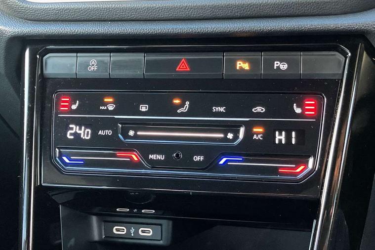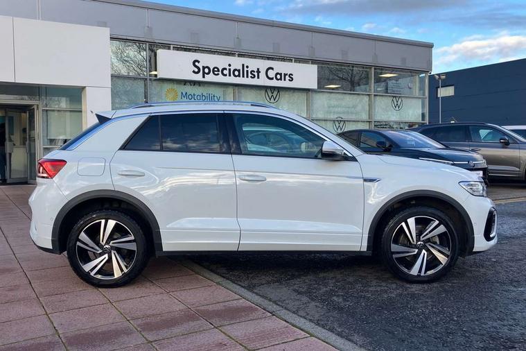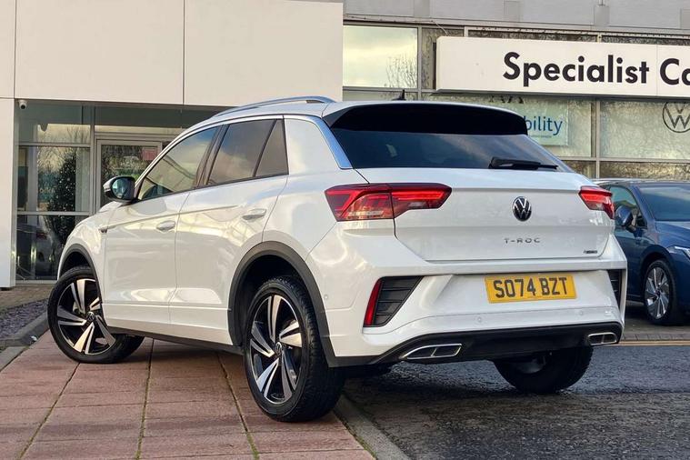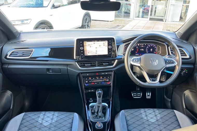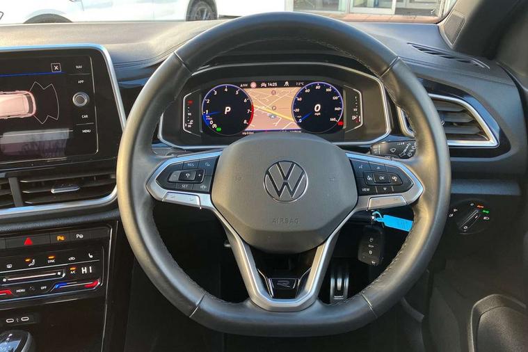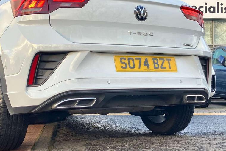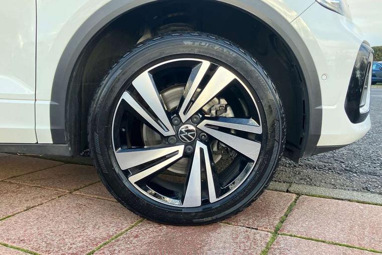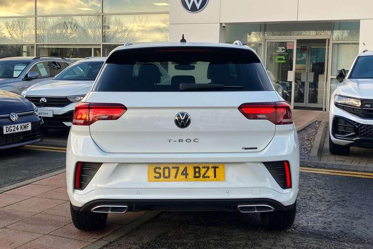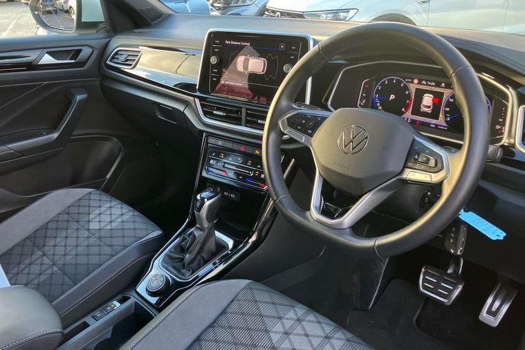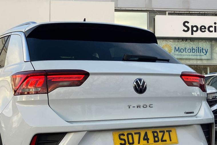 10.25" Digital cockpit pro, Advanced driver attention and drowsiness monitor, Emergency call service, Lane keeping system Lane Assist, Mobile phone interface, Modified key software - reduce switch off time for key status change to Long no motion, Online services, Park assist including front and rear parking sensors, Service interval indicator, Tailgate/trunk lid release from outside, Think blue trainer driver tips and journey analysis, Warning sound and light for front seatbelts unfastened, Wireless app connect, Battery regeneration during braking, Four wheel drive, Start/stop function with battery regeneration, DAB Digital radio, Diversity antenna for FM reception, Front and rear 6 speakers, Music playback - MP3, WMA and AAC files, Premium USB cable in choice of either Apple or Android smartphone compatibility, SD card slot, Simultaneous pairing of 2 compatible mobile devices, Title and cover art display, We Connect and We Connect Plus functionality, Auto dimming interior rear view mirror, Automatic hazard lights activation under emergency braking, Automatic headlight control with LED separate daytime running lights with coming/leaving home function, Body coloured exterior mirror housings and door handles, Electrically adjustable and heated door mirrors, Extended roof spoiler, Exterior mirrors aspherical on driver side, convex on front passenger side, External USB type C socket and charging sockets, Front windscreen wiper with intermittent wipe and 4 position delay, Heated rear window, LED 3rd brake light, LED rear combination lamps, LED rear number plate lights, Power windows with comfort operation and circuit breaker, Privacy glass for rear side windows and rear window, R-Line design body coloured bumpers, Rain sensor, Rear exhaust tailpipe, Rear fog light on one side and reversing lights on both sides, Rear side wing doors, Rear wash/wipe with intermittent wipe setting, Remote electrically foldable door mirrors, puddle lights and reverse activated passenger's door mirror, 12V power socket in centre console, 3 rear head restraints, 3 seat bench in 2nd row, 4 load lashing points in luggage compartment, Air care climatronic air conditoning system with active combination filter and 2-zone temperature control, Black roof lining, Chrome plated decorative trims, Chrome plated radiator grille inserts, air vent surrounds and light switch surrounds, Door and side trim panel with leatherette insert, Front + rear carpet mats, Front centre armrest, Front cupholders x 2, Front footwell illumination, Front reading light, Front scuff plates with R Line logo, Front seat back storage pockets, Glove compartment door with light, Instrument lighting, white adjustable panel illumination, Interior ambient lighting and surround lighting, Interior light delay, Isofix child seat preparation, Leather gearshift handle, Load-through provision with cup holder when folded down ('Unsplit rear seat bench, split folding backrest, with centre armrest), Luggage compartment lighting, Single front passenger seat, Stainless steel pedals, Storage compartment in left and right luggage area, Storage compartment in rear doors, Storage compartments in driver and front passenger doors, Sunvisors with illuminated vanity mirrors, Variable boot floor, height adjustable and removable, Driver assistance pack without proactive passenger protection - T-Roc, 3 point height adj front seatbelts + pretensioners, 3 point seatbelts in outer rear with ECE label, ABS, Child locks on rear doors, City emergency braking and pedestrian monitoring, Driver and front passenger airbag with front passenger airbag deactivation, Driver and front passenger safety-optimised head restraints, Drivers seatbelt reminder, Electronic parking brake, Electronic Stability Control (ESC) inc EDL (Electronic Differential Lock) and ASR (Traction Control), Front and rear passengers curtain airbag system including front side airbags, Hill start assist, Predictive pedestrian protection, Rear disc brakes, Two tone horn, Tyre pressure loss indicator, Volkswagen roadside assistance, Piano black decorative inserts in dashboard and front door trim panels, Trims for alloy wheels,