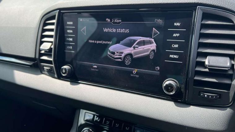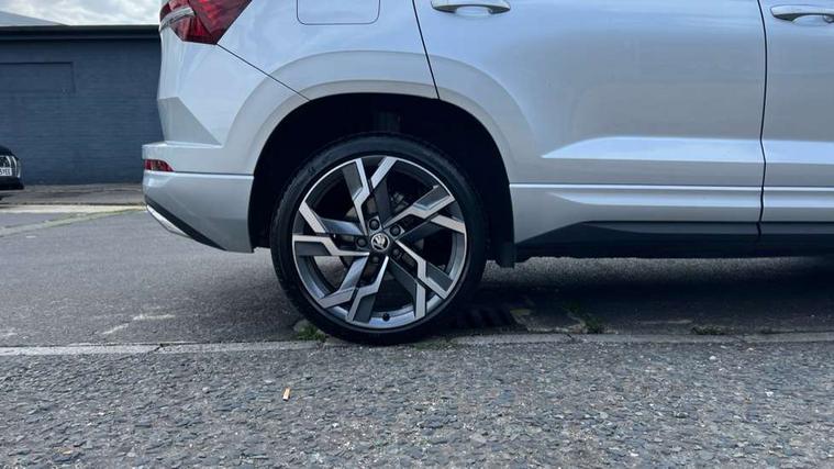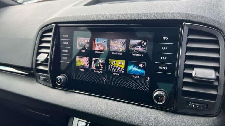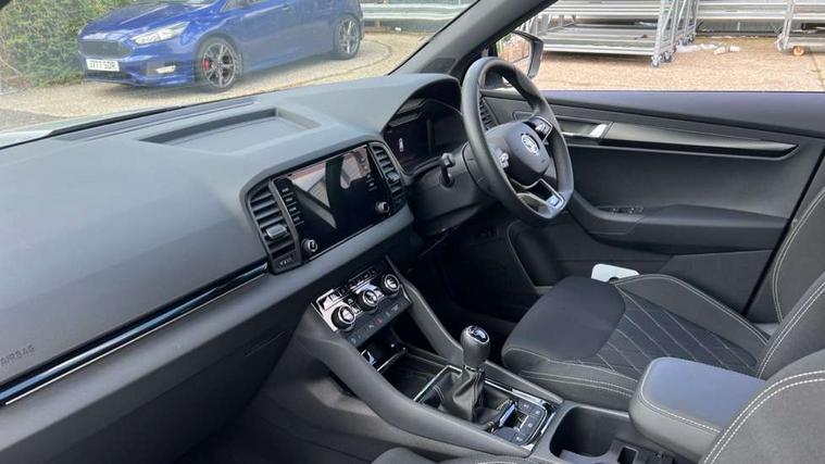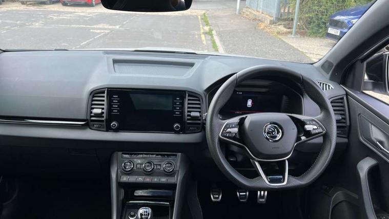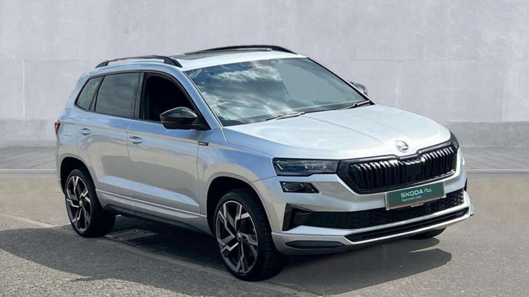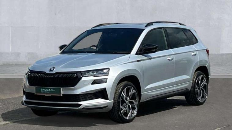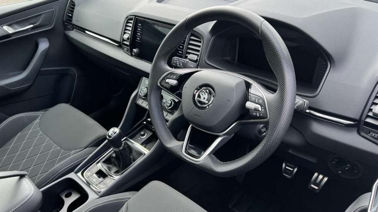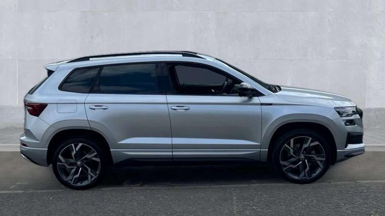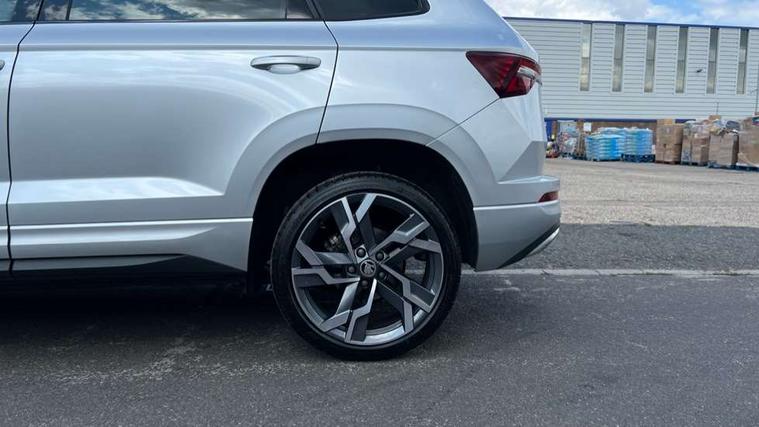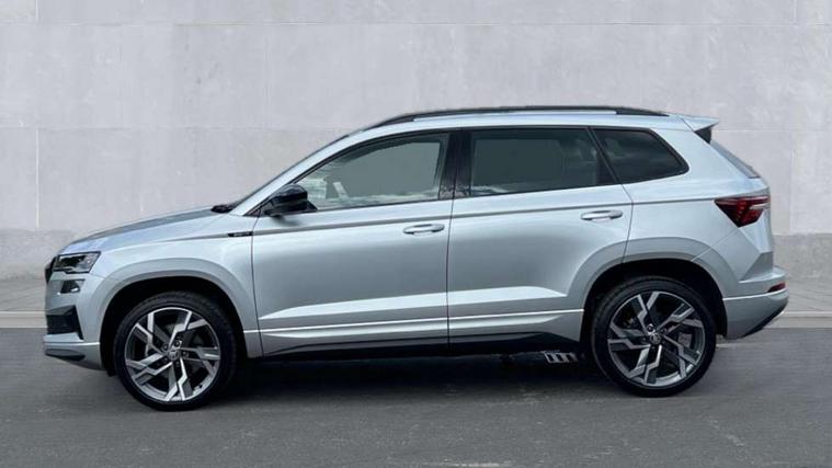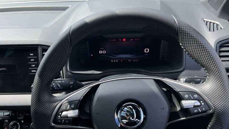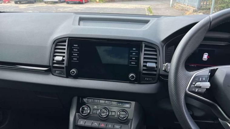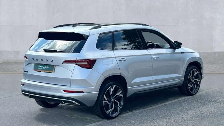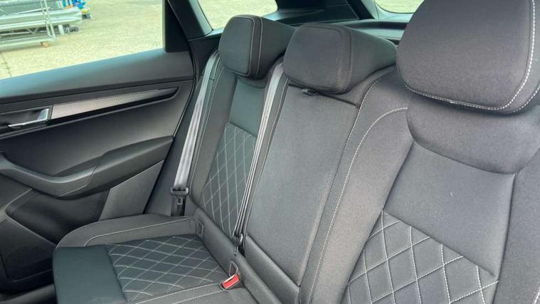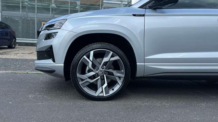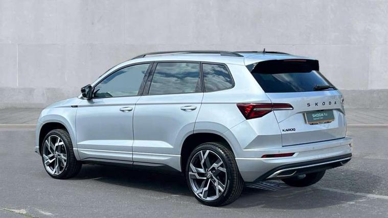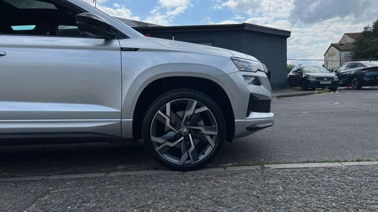 8" Digital display, Advanced driver attention and drowsiness monitor, Emergency services call system, Outside temperature gauge, Sensor for driver assistance systems, Service interval indicator, SmartLink wireless for Apple and wired for Android, Start/stop system with regenerative braking, USB C Port x 2 in front centre console, Virtual Cockpit - 10.25" digital display, Virtual pedal with electrically operated boot door, Wireless smartphone charging, DAB radio with Bluetooth, USB connection, Acoustic glass, Aero front windscreen wipers with intermittent function, Auto dimming rear view mirror with light and rain sensors, Black door mirrors, Black electric window control buttons, Black radiator grille, Black roof rails, Body colour door handles, Electric front and rear windows with child proof lock, Front door steps with SportLine logo, Heated rear windscreen, LED daytime running lights, LED rear lights with high functionality welcome effect and dynamic indicators, Light assistant (coming/leaving home/tunnel light), Panoramic sliding sunroof, Plastic scuff plates in door apertures, Privacy glass, Protective door side sills in body colour, Rear diffuser, Rear side wing doors, Rear spoiler, Rear window wiper with washer system and intermittent control, Safety reflectors on front doors, Skoda lettering on tailgate in black, Sportline badge on front fender, Sportline decorative inserts with badging, Sports front and rear bumpers, Third brake light, 1.5 litre bottle holders in driver and front passenger door panels, 12V socket in boot, 12v socket in front centre armrest with storage compartment and rear air vents, 2 x Tablet holder, 3 rear height adjustable headrests, 3 seat bench in 2nd row, 3 spoke sports leather heated multifunction steering wheel, 4 foldable roof handles with rear coat hooks, Black floor carpet, Black roof headlining, Chrome inner door handles, Foldable hooks in the boot, Front head restraints, Height adjustable front three point seats belts with tensioners, Height/reach adjust steering wheel, Ice scraper, Illuminated glovebox, Illuminated luggage compartment, Isofix child seat preparation for front passenger seat, Isofix child seat preparation outer rear, Manual lumbar support for front seats, Pen holder, Pollen filter, Rear boot cover, Rear reading lights, Rear seats fixed folding and divided 60:40, Rubbish bin door, Safety vest holder, Single front passenger seat, Storage box in upper central dashboard closed, Sunvisors with illuminated vanity mirrors, Textile floor mats, Ticket holder, Titan black interior ceiling, Umbrella under passenger seat, Under passenger seat storage compartment, LED Interior lighting pack with Skoda welcome logo - Karoq, Light Pack - Karoq, Non Smokers pack, Automatic door unlocking in case of crash, Automatic fuel cut off in case of crash, Driver airbag, Electronic parking brake with auto hold function, Emergency rear braking signal, ESC (incl. ABS+MSR+ASR+EDS+HBA+DSR+RBS+MKB), Front side airbags, Head airbags, Hill hold control, Knee airbags, Passenger airbag with switch-off function, Pedestrian monitor, Seatbelt reminder signalisation and pretensioner for all seats, Three point seatbelts rear, Two tone horn, Tyre pressure monitor, Alarm with interior monitoring, back up horn and tilt sensor with safe function, Electronic engine immobiliser, Keyless entry and start/stop, Remote central locking with 2 remote folding keys, Black air vent surround, Black centre console, carbon door decor, Satin black dashboard, Satin black door trim, 19" Sagittarius anthracite alloy wheels, Anti-theft wheel bolts protection, Breakdown and tool kit,