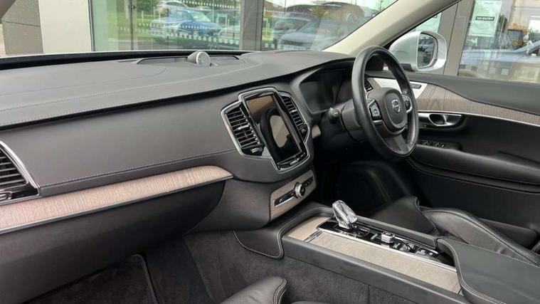 12.3" Active TFT crystal driver's instrument display, 9" centre console portrait touch screen, Adjustable steering wheel force, Bluetooth hands free telephone connection, Drive mode settings, Driver alert control with lane keeping aid, Driver assistance (pilot assist and adaptive cruise control), Driver awareness - Blind spot information system with steer assist, cross traffic alert with autobrake and rear collision warning and mitigation, Front and rear park assist, Handsfree power tailgate opening and closing, Oncoming Lane Mitigation, Remote engine start, Sensus navigation with European mapping and traffic information, Service interval indicator, Smartphone integration with Apple CarPlay and Android auto, Speed limiter, Speed sensitive steering, Trip computer, Voice activated control for key functions, Volvo on call, 8 speed automatic transmission with start/stop + manual change functions, Active four C chassis - four corner adaptive dampers with electronic air suspension, All wheel drive system, DAB Radio (Digital Audio Broadcasting), Steering wheel remote infotainment controls, Adaptive brake lights with high level LED brake lights, Auto dimming interior + exterior mirrors, Automatic headlight levelling system, Automatic LED Headlights + Active high beam incorporating daytime running lights, Body colour bumpers, Chrome Front and Rear Bumper plus Lower Side Mouldings, Chrome window surround, Colour coordinated auto folding and heated power door mirrors, Dual integrated exhaust pipes, Front and rear power windows, Heated washer nozzles, Home safe and approach lighting, Integrated roof rails in silver, Matt silver front grille with chrome detailing, Puddle lights, Rain sensor with automatic windscreen wiper activation, Rear wash/wipe with intermittent wipe setting, Roof antenna, Roof spoiler, Visible VIN plate, 12V socket front tunnel console, rear passenger compartment and cargo area, A-pillar parking ticket holder, Ambient door and instrument panel lighting, B Pillar ventilation, Bright metal luggage threshold, Cargo divider with grocery bag holder, Centre console cupholders and storage, Driver's side lower dashboard storage compartment, Front and rear door pocket and front cupholder illumination, Front footwell and side step illumination, Front headrests, Front seat backrest massage, Front seat cushion extension and power adjustable front seats side support, Heated front seats, Height/reach adjustable steering column, Illuminated front and rear tread plates, Illuminated luggage compartment, Illuminated tailgate, Illuminated vanity mirrors + ticket holder, Illumination lockable glovebox compartment, Integrated sun curtains in rear doors, Load protection net, Luxury floor mats, Multicolour theatre lighting, Orrefors Crystal Gear Lever Knob, Outboard armrest with cupholder and storage for third row passengers, Perforated and ventilated nappa soft leather upholstery, Power driver seat with multi directional lumbar support and memory for seat and exterior mirrors, Power folding 2nd row headrests, Power passenger seat with multi directional lumbar support and memory, Rear footwell and side step illumination, Rear headrests, Semi automatic load cover, Steering wheel audio controls, Three 2nd row individual folding passenger seats with fore/aft adjustment, Two 3rd row individual folding passenger seats, Underfloor cargo storage, Lighting pack - XC90, 7 three point seatbelts, City safety includes pedestrian, cyclist and large animal detection and front collision warning with full auto brake, Drivers knee airbag, Dual stage driver/passenger airbags, First aid kit, Front seats SIPS airbags, Hill descent control, Hill start assist, IC (Inflatable Curtains) - Full Length, Passenger airbag cut-off switch, Power parking brake with auto hold function, Road sign information display, Run off Road Mitigation, Run off Road Protection, Seatbelt reminder and pretensioners for all seats, SIPS (Side Impact Protection System), Slippery road and hazard light alert, Stability and Traction Control with Spin control, Engine Drag Control and Corner Traction Control, Tyre pressure monitoring system, Vehicle deceleration control with Anti-lock Brake System, Electronic Brake Distribution and Emergency Brake Assist, Warning triangle, WHIPS whiplash protection system - front, Anti-theft alarm including immobiliser/volume sensor + level sensor, Care key with user defined top speed, Key integrated remote control central locking + fuel flap with deadlocking system and auto open/close power windows, Keyless drive (includes keyless entry and keyless start) with remote tag, Locking wheel nuts, Private locking for glovebox and tailgate, Grey ash inlays, Tailored instrument panel and door tops, Tempa spare wheel and jack,