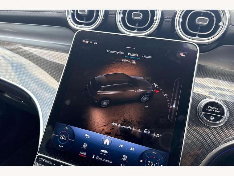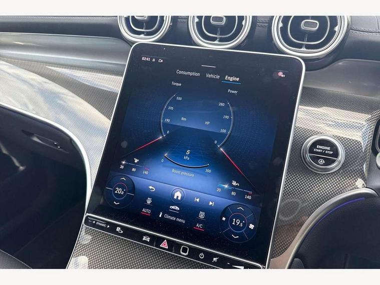 11.9" high resolution multimedia colour display, 12.3" Digital individually configurable instrument display, Acoustic presence indicator, Active lane keeping assist, Attention assist, Blind spot assist, Bluetooth interface for hands free telephone, Collision prevention assist plus, Cruise control with speedtronic variable speed limiter, Dashcam - front camera for video recording, Direct steer speed sensitive steering, DYNAMIC SELECT with a choice of driving modes (ECO, Comfort, Sport, Sport+ and Individual), eCall emergency call system, ECO start/stop function, Fingerprint scanner, Fluorescent jacket for driver, Hard disc navigation, Instrument display in miles with English lettering, MBUX augmented reality for navigation, MBUX navigation premium, MBUX voice control activated by keywords "Hey Mercedes", Mercedes me connect, Outside temperature display, Remote boot release, Remote services, Road sign recognition system, Service indicator (ASSYST), Smartphone integration, Status display for rear seat belts in instrument cluster, Traffic sign assist, Trip computer, Wireless charging, 48V Mild hybrid technology, 4MATIC permanent four wheel drive, 62 litre fuel tank, 9G TRONIC plus automatic transmission, Diesel particulate filter, Sport suspension, DAB digital radio tuner, MBUX extended functions, Mercedes benz sound system, Pre installation for Mercedes Benz Link, Adaptive brake lights, Adaptive high beam assist plus, Aluminium look running boards with rubber studs, Aluminium roof rails, AMG bodystyling front apron, rear apron and side skirts, AMG Line exterior, Auto headlights, Body colour bumpers, Body colour door mirrors, Digital light LED headlights, Electrically adjustable door mirrors, Front and rear electric windows, Headlight washers, Heat insulating dark tinted glass, Heated rear window, High level LED brake light, Integrated LED daytime running lights, LED indicator lights, LED rear fog lights, LED tail lamp, Motor way mode function and locator lighting, Noise acoustic glass, Radiator grille with Mercedes Benz pattern and integreated Mercedes star and louvre in dark grey matt with chrome inlay and black frame, Rain sensor windscreen wipers, Range adjustable headlights, Rear side wing doors, Rear wiper, Transparent Bonnet, Two chrome plated tailpipe trim elements, Variable front intermittent wipers, Welcome and follow-me home light functionality, Wider wheel arch for AMG wheels, 3 seat bench in 2nd row, 40:20:40 split folding rear seats, Ambient lighting premium, AMG line interior, Artico man-made leather upholstery, Audio and onboard settings control on multifunction steering wheel, Automatic child seat recognition sensor, Black fabric roof lining, Black floor mats with AMG lettering, Double cup holder in centre console, Easy-pack removable load compartment cover, Electrically height/reach adjustable steering column, Front centre armrest with stowage compartment, Front head restraints, Galvanised steering wheel gearshift paddles, Heated front seats, Illuminated door sill panels with Mercedes Benz lettering, Illuminated glove compartment, Instrument panel and beltlines in ARTICO manmade leather in nappa look, Multifunction sports steering wheel in nappa leather, Rear centre headrest, Rear head restraints, Rear top tether child seat ISOFIX attachment, Single front passenger seat, Sports pedals with stainless steel surfaces and rubber studs, Sports seats, Sun visors, THERMATIC 2 zone automatic climate control, Anti theft protection package - GLC, Boot comfort package - GLC, Exterior chrome package - GLC, Interior chrome package - GLC, Interior lighting pack - GLC, Keyless-Go comfort package - GLC, Memory pack - GLC, Mirror pack - GLC, Parking package with 360 degree camera - GLC, Seat comfort package - GLC, Stowage space package - GLC, USB Plus Pack - GLC, 3 rear 3 point seatbelts, Active braking assist, Anti-lock braking system (ABS), ASR traction control, Automatic front passenger airbag deactivation, Black seat belts, Brake calipers with Mercedes-Benz lettering + perforated brake discs, Braking system with larger brake discs on the front axle, Child proof door locks, Dual-stage airbags - driver and front passenger, driver knee bag and window bags for driver, front passenger and rear passengers, Electronic parking brake, Electronic stability programme (ESP) with curve dynamic assist and cross wind assist, Front and rear seatbelt reminder, Front passenger seat occupancy sensor, Front seatbelt pretensioners, Hill start assist, Tyre pressure monitoring system, Warning triangle and first aid kit, Automatic door locking, Guard 360 degree vehicle protection plus, Interior protection/immobiliser, Remote central locking, Centre console in metal structure finish, Metal structure trim, 20" AMG 5 spoke aerodynamically optimised light alloy wheels in painted black with high sheen finish, Summer tyres, TIREFIT with tyre inflation compressor,