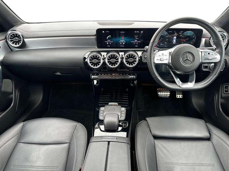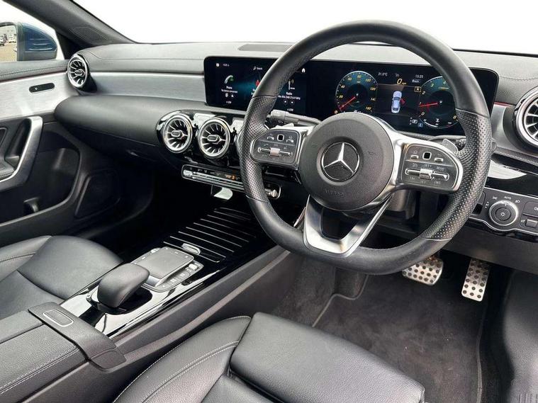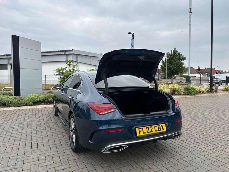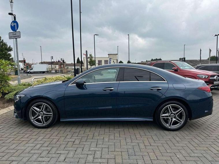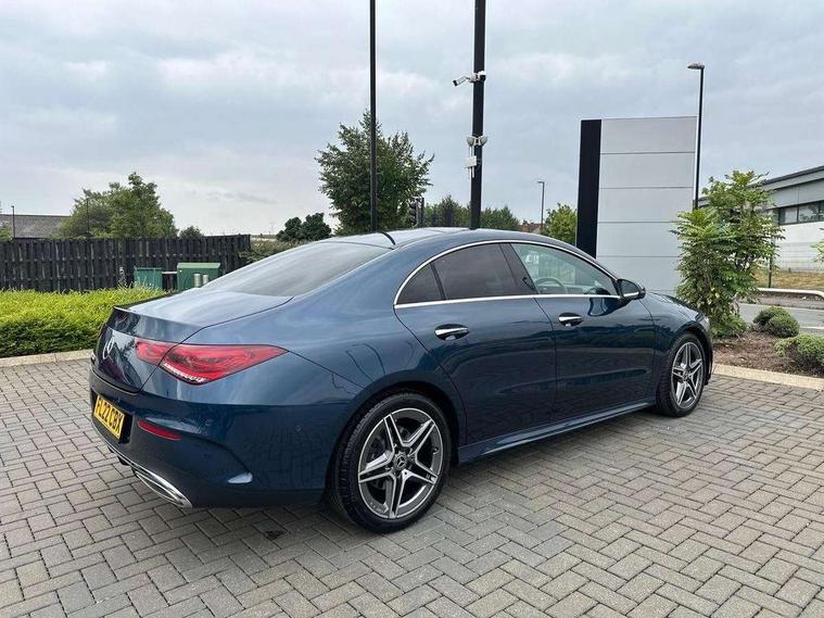 10.25 inch Instrument display with digital cockpit, 10.25 inch touchscreen central media display, Attention assist - Monitors steering behaviour and long journey fatigue, Bluetooth connection, Car wash mode, DYNAMIC SELECT with a choice of driving modes (ECO, Comfort, Sport and Individual), ECO start/stop function, Fluid level warning indicator for fuel, oil, coolant and washer fluid, Hard-disk navigation, Hey Mercedes Voice activation, Lamp failure indicator, Mercedes me connect including emergency call system, accident recovery, breakdown management and maintenance, Mercedes me remote services, Outside temperature gauge, Owners manual and service booklet in English, Pre-installation of private car share, Preinstallation for Mercedes Benz link, Radio aerial integrated into front and rear windshields, Service indicator (ASSYST), Smartphone integration with Apple CarPlay and Android auto, Traffic sign assist, Trip computer in multifunction display with current consumption indicator, 7G-DCT 7 speed automatic transmission, Lowered comfort suspension, Rear axle multi-link, DAB digital radio tuner, MBUX multimedia system with DAB digital radio and touchpad including satellite navigation, Mid-range sound system, USB (type C) ports (2) in stowage compartment and 1 in front of centre console, Adaptive brake lights, AMG body styling with AMG front apron and rear apron and visible exhaust tailpipe in chrome trim elements, AMG bodystyling side skirts, Auto headlights, Body colour bumpers, Body colour door handles, Chrome beltline strips, Chrome weather strip, Diamond radiator grille pins in chrome with silver painted louvres and chrome insert, Electric panoramic sliding sunroof, Electric windows, Electrically adjustable and heated door mirrors with integrated LED indicators, Exhaust system with 2 Visible tailpipe trim elements and rear apron with trim in chrome, Headlamp assist automatic headlamp activation, Heated glass rear windscreen + timer control, High level LED third brake light, Integrated LED daytime running lights, Interior mirror with black reading lamps and frameless, LED tail lamp, Multibeam LED headlamps with adaptive highbeam assist plus, Privacy glass with dark tinting on rear side windows and rear window, Rain sensing windscreen wipers with two sensitivity settings, Rear boot, Rear fog lamp, Rear side wing doors, Window line trim strip in chrome, 3 seat bench in 2nd row, 3 spoke flattened bottom nappa leather multifunction steering wheel with perforated leather in grip area, 40:20:40 split folding rear seats with backrest, Air conditioning - Two zone thermotronic luxury automatic climate control with display, Air vents with surround in silver chrome, Automatic child seat recognition sensor, Black roof lining, Brushed stainless steel sports pedals with rubber studs, Floor mats with stitched AMG lettering, Front centre armrest with stowage, Galvanished gear shift paddles on steering wheel, Heated front seats, Illuminated front door sills with changeable cover, Illuminated glove compartment stowage, Interior lighting - 64 colour Ambient lighting, Luggage net on driver/front passenger seat backrest, Manually height and reach adjustable steering column, Rear armrest with two integral cup holders for drinks, Rear head restraints, Single front passenger seat, Sport seats with fixed head restraints, Stowage compartment in centre console with retractable cover, Sunvisors with illuminated vanity mirrors, Touchpad on center console, Twin front cupholders, Two outer rear seat isofix and top tether child seat fixing points, Keyless go pack - CLA, Light and sight pack - CLA, Mirror pack - CLA, Parking package - CLA, Seat comfort pack - CLA, Active bonnet pedestrain safety measure which detects an impact and raises bonnet by 65mm, Adaptive brake assist with hold function and hill start assist, Anti-lock braking system (ABS), Black seat belts, Bonnet with power domes, Brake pad wear warning indicator, Childproof locks manually operated for rear doors and electrically operated for rear power windows, Crash responsive emergency lighting, Driver and front passenger head and sidebags, Driver and front passenger windowbags, Drivers knee airbag, Dual stage driver and front passenger airbags, Electric parking brake, Electronic stability programme with acceleration skid control, ESP curve dynamic assist, Front and rear seatbelt reminder, Front passenger seat occupancy sensor, Three point rear seat belts, Tyre pressure monitoring system, Warning triangle and first aid kit, Remote central locking and crash sensor with emergency opening function, Urban guard vehicle protection system with immobiliser and interior protection, Light aluminium with longitudinal grain interior trim, 18" 5 twin spoke design alloy wheels painted in titanium grey with high sheen finish, Summer tyres, Tirefit tyre sealant kit,