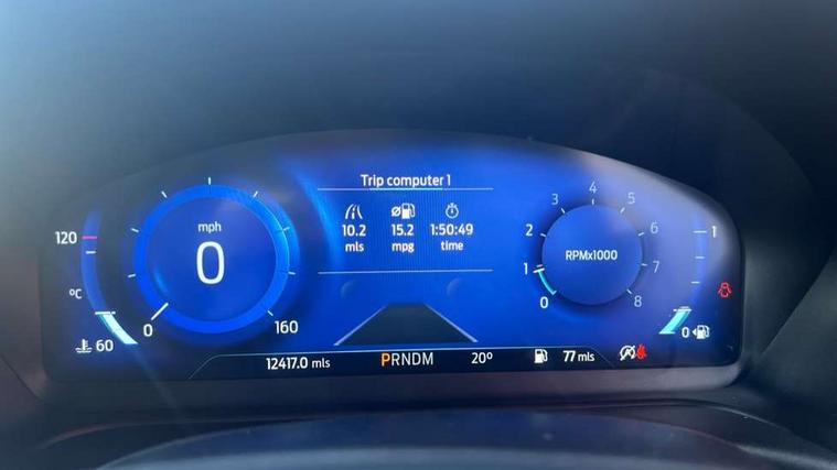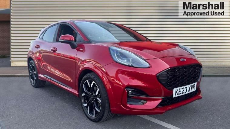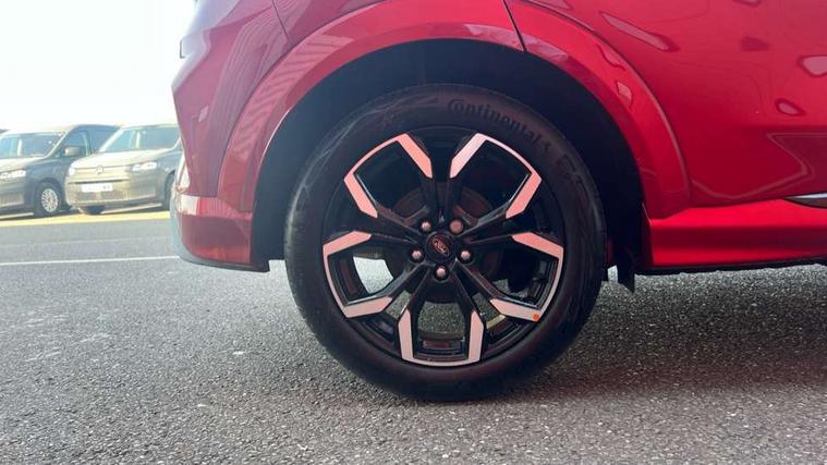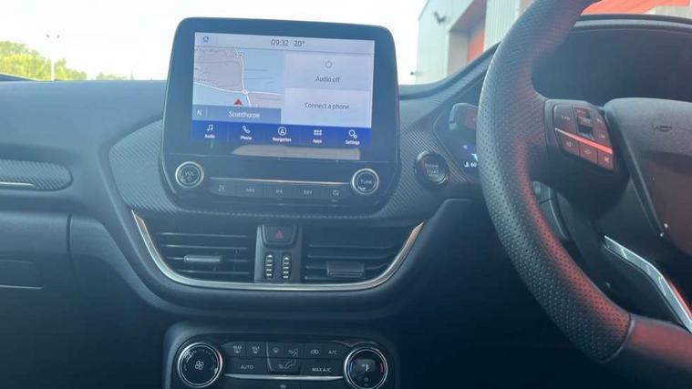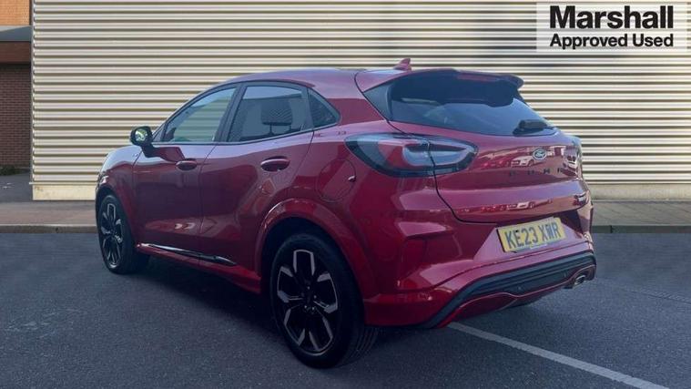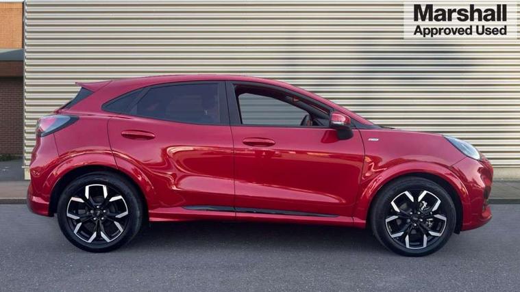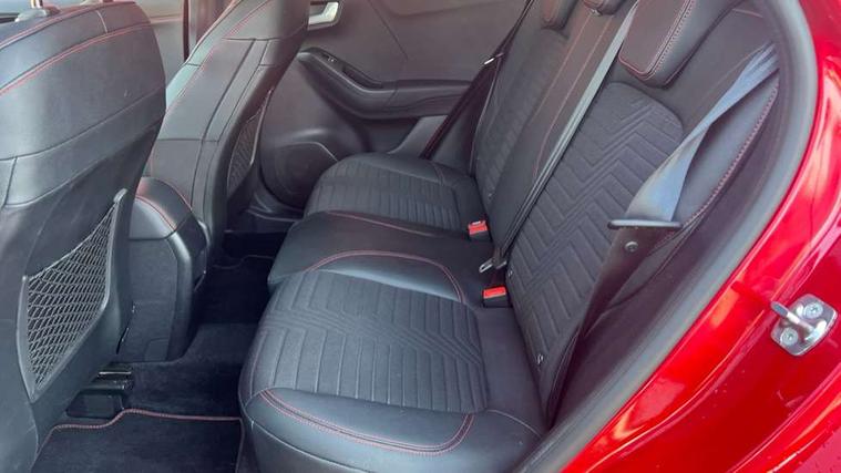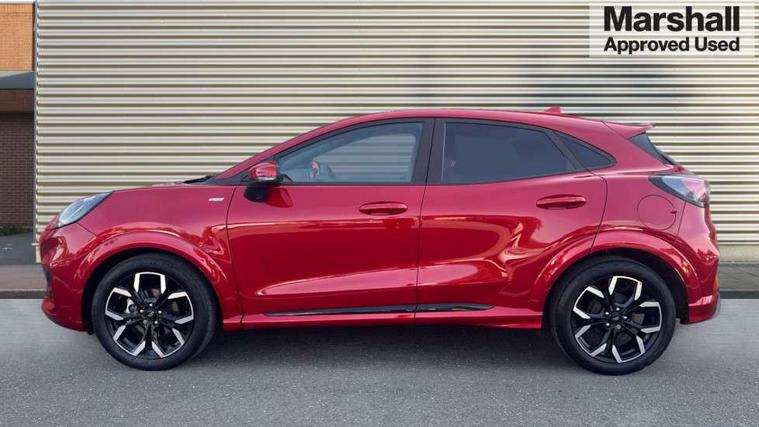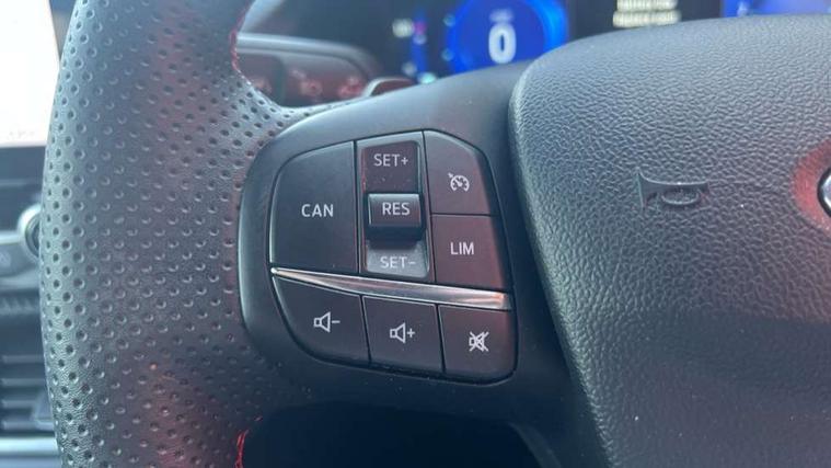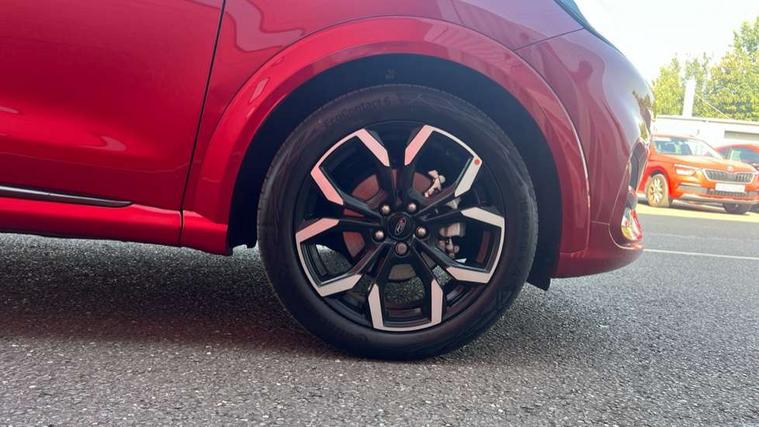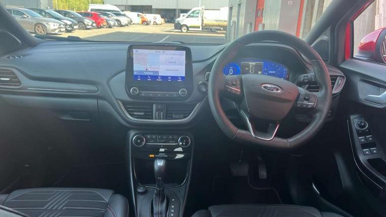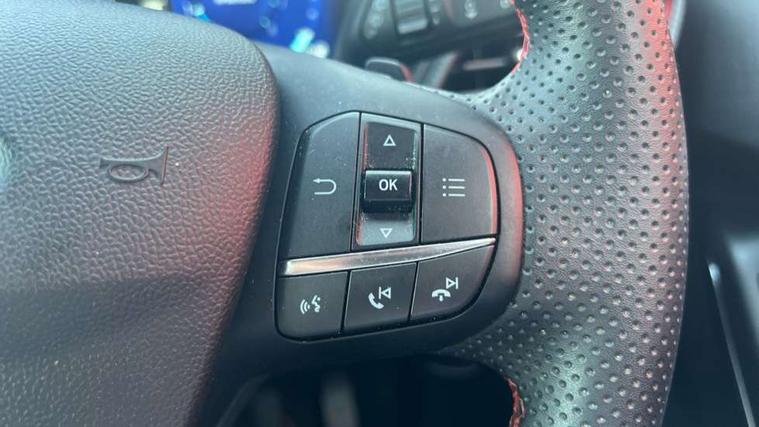 Driver impairment monitor, Emergency call service, Ford easy fuel, Full digital 12.3" instrument cluster, Lane keeping aid with lane departure warning, Power assist steering, Power start button, Rear parking sensor, Selectable drive modes(Normal, sport, Eco, trail, slippery), Speed sign recognition, Sport suspension, Automatic headlights with auto high beam, Automatic rain sensing wipers, Front fog lamps, LED daytime running lights, LED rear lamps, Power foldable heated door mirrors with puddle lamps, Privacy glass to side rear windows and tailgate glass, Quickclear heated windscreen, Rear side wing doors, Rear wiper, ST-Line body styling kit with unique grille and large body colour rear spoiler, Third brake light, 3 seat bench in 2nd row, Centre console with armrest and stowage, Ford megabox extended bootspace, Front and rear head restraints, Front floor mats, Manual 4 way driver seat adjust with lumbar adjustment, Manual 4 way passenger seat with lumbar seat adjustment, Sensico partial premium upholstery, Single front passenger seat, ST-Line flat bottomed sensico leather steering wheel with leather handbrake and aluminium gear knob, Wireless charging pad with electronic air temperature control (EATC), B&O Premium Audio system + Ford SYNC 3 navigation pack - Puma, 3 rear seatbelts, Child safety lock, Electronic stability control (ESC) and hill start assist, Pedestrian/cyclist detection & post-collision braking, Pre collision assist system, Tyre pressure monitoring system (TPMS), Thatcham alarm, Carbon look interior deco spears,