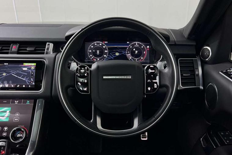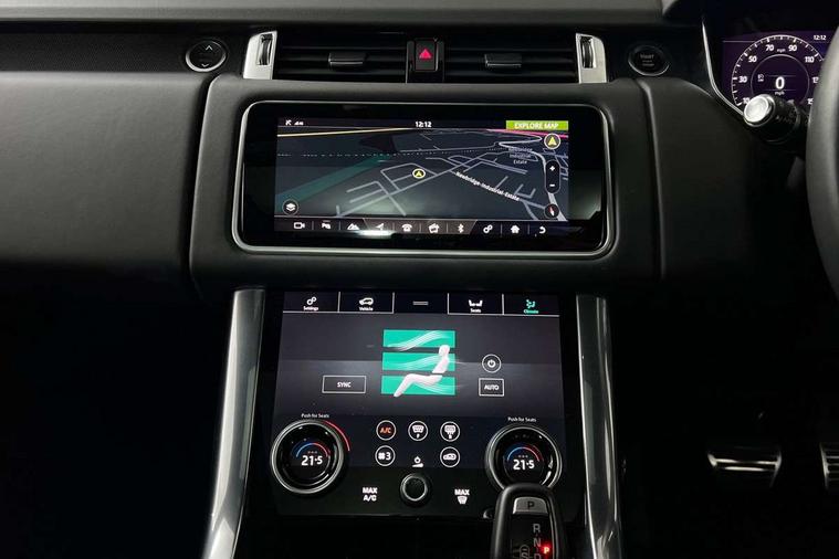 All Terrain Info Centre, Android Auto, Apple car play, Bluetooth connectivity, Electric power assisted steering (EPAS), Incontrol apps in vehicle touchscreen, Interactive Driver display instrument cluster, Mist sensor, Navigation pro system with 10" touch screen, app interface and media storage, Pro services and wifi hotspot, Push button start, Remote premium - Upgraded Incontrol remote app including remote climate control (engine dependent), remote lock + Unlock and remote beep + flash, TFT Virtual Instrument Panel, Touch pro duo system, Trip computer, Adaptive dynamics, All terrain progress control, Electronic active differential with brake torque vectoring, Electronic air suspension with dynamic response (active roll control), Gradient release control (GRC), Terrain Response 2 with dynamic program, Twin speed transfer box, Bluetooth audio streaming, DAB Radio (Digital Audio Broadcasting), Incontrol protect - SOS emergency call with automatic collision detection, optimised assistance call and Incontrol remote app essential, USB/aux input socket, Acoustic front and toughened rear side glass, Acoustic laminated front windows, Adaptive brake lights, Auto dimming interior rear view mirror, Automatic headlights, Body coloured side sills and bumpers corners, Centre high mounted stop light, Electric windows with one touch open/close and anti trap, Electrical towing preparation, Engine cover, Follow me home lighting, Front and rear recovery eyes, Front fog lights, Headlight power wash, Heated rear window, Heated windscreen includes heated washer jets, Illuminated metal treadplates with brand name script, LED rear lamps, Privacy glass (Tinted glass rear of B pillar), Rain sensing windscreen wipers, Rear fog lights, Rear side wing doors, Rear wash/wipe, Remote window closing, Side repeater indicators in mirror, Sport Badge in black, Standard bonnet, Trailer stability assist, Twin bright tailpipes, 2 way active front head restraints, 2 way rear head restraints, 3 seat bench in 2nd row, Auto air recirculation, Bright metal foot pedals, Centre console with armrest, Climate control memory, Customer configurable single point entry, Driver's footrest, Extended leather upgrade includes door top rolls and leather instrument panel mid section, Front and rear cupholders, Front door storage space, Front map lights, Front seat back map pockets, Front stowage pocket, Front/rear passenger grab handles, Heated steering wheel, Isofix child seat preparation, Leather steering wheel with Atlas inserts, Loadspace light, Loadspace mounting provisions, Lockable glovebox, Multifunction steering wheel, Perforated Windsor leather upholstery, Pollen filter, Power socket, Reach/rake electric adjustable steering column + entry/exit tilt away, Rear centre armrest, Rear ISOFIX, Roller blind loadspace cover, Satin chrome gearshift paddles, Single front passenger seat, Sports pedals, Three 12V accessory power outlets, Black Exterior pack - Range Rover Sport Dynamic, Smartphone pack - Range Rover Sport, 3 point seatbelts on all seats, Anti-lock braking system (ABS), Brake pre-fill technology, Cornering brake control (CBC), Curtain airbags, Customer configurable autolock, DSC - Dynamic Stability Control, Dual stage driver/passenger airbags, EBD - Electronic brakeforce distribution, Electric parking brake, Electronic traction control, Emergency braking includes city, urban AEB and pedestrian, Front seatbelt pretensioners, Gradient acceleration control, Grey anodised brake calipers, Height adjustable front seatbelts, Hill descent control, Hill launch assist, Low traction launch, Passenger seat occupant detector with front airbags, Power operated child locks, Roll stability control, Seatbelt warning, TPMS (Tyre pressure monitoring system), Immobiliser, Intrusion sensor, Keyless entry, Locking wheel nuts, Perimetric and volumetric anti theft alarm, Remote locking, Grand black veneer,