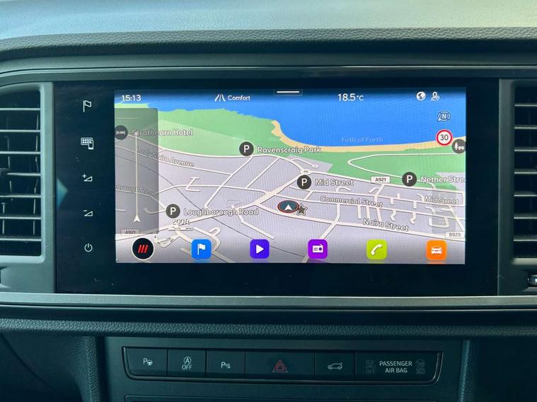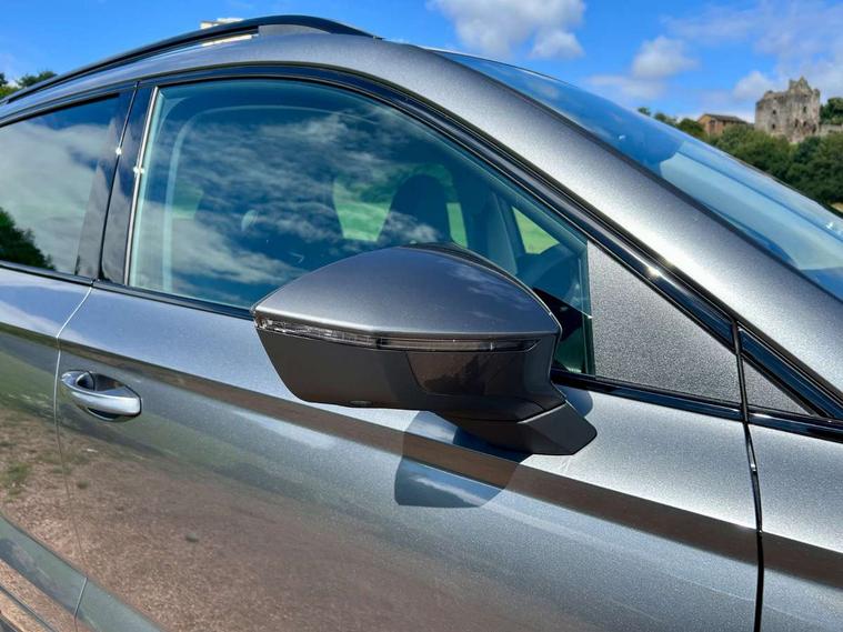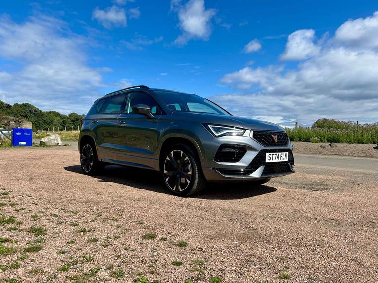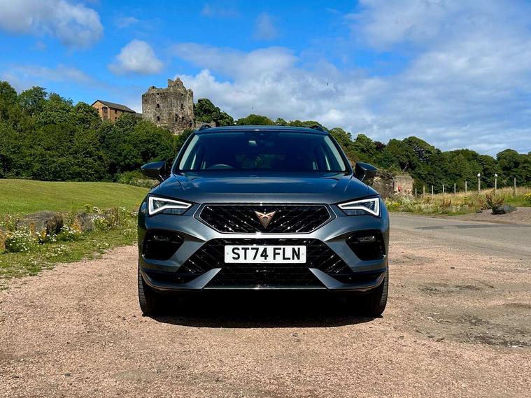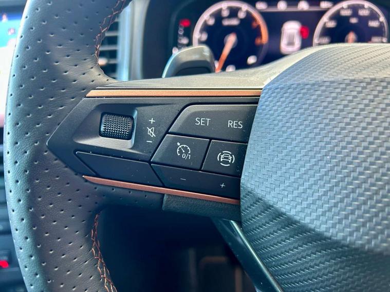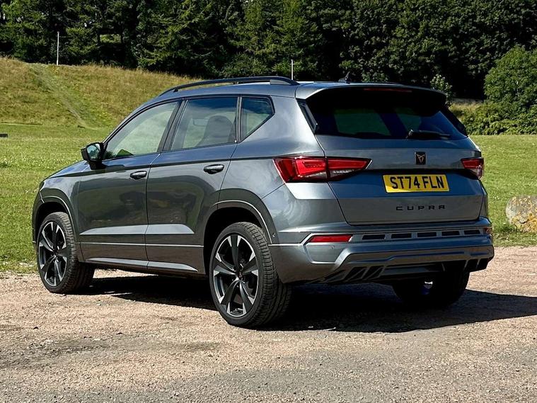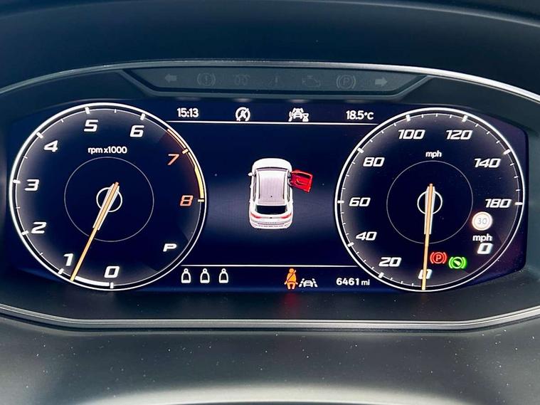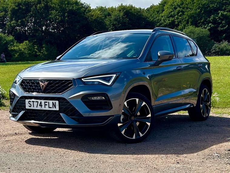 Cruise control system with speed limiter, Digital cockpit, Driving profile selection and conventional shock absorber, E-call, Electric tailgate with virtual pedal, Outside temperature gauge, Progressive power assisted steering, Rear view camera, Self parking functionality (includes front and rear parking sensors), Trip computer, wired and wireless full link smartphone integration, Wireless phone charger, Front and rear shock absorption, chassis with increased ride height, Steering wheel mounted audio/phone controls, Body colour bumpers with dark aluminium diffusor, Body coloured wheel arch surrounds, Dark tinted rear windows, Daytime running lights, Door mirrors with welcome CUPRA light silhouette, Dynamic headlight range control with self adjusting whilst driving, Electric adjustable/heated/folding door mirrors, Front and rear electric windows, Front grille frame in chrome, Full LED headlamps with lens and LED front fog lamps with cornering function, Gloss black door mirrors, Gloss black roof rails, Gloss black side mouldings, Gloss black side window trim, Illuminated aluminium front door sill, LED rear tail lights with dynamic indicators, Rear fog lights, Rear side wing doors, Rear spoiler, Rear wash/wipe, Specific CUPRA design front bumper, Standard rear exhaust tailpipes, Third brake light, 12v socket in front, 3 seat bench in 2nd row, 60/40 split folding rear seat, Aluminium pedals, Cupra steering wheel emblem, Dual zone climate control, Electric driver seat with memory function, Front and rear head restraints, Front centre armrest, Front seat back storage pockets, Grey roof lining, Heated front seats, Heated steering wheel, Height adjustable driver and passenger seat with lumbar adjustment, ISOFIX points in outer rear seats with top tether anchorage points, Leather sport bucket seats, Leather steering wheel and gear knob, Multicoloured ambient lighting with LED interior illumination, Pedal cluster, Rear armrest and easy back seat release mechanism from boot, Single front passenger seat, Sports steering wheel, Steering wheel mounted gearshift paddles, Storage compartment in roof console for sunglass, Storage compartment under driver's seat, Convenience pack - Ateca, Interior lighting pack - Ateca, Navigation system plus pack with DAB - Ateca, Safety and driving pack - Ateca, 3x3 point rear seatbelts, ABS, Traction control system (TCS), Electronic stability control (ESC) and Electronic differential lock system (XDS), Airbags - Driver and front passenger airbag with deactivation, front side, two curtain and driver's knee airbags, Black brake callipers with CUPRA logo, Electric parking brake with auto hold function, Front and rear seatbelt reminder, Front assist with autonomous emergency braking, Hill hold control, Manual rear child locks, Single tone horn, Tiredness recognition system, Tyre pressure monitoring system, Alarm, Keyless entry, Locking wheel bolts, 19" Sport machined alloy wheels 36/3 in black/silver,