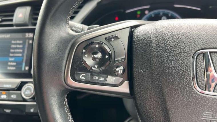 7" touch screen, Adaptive cruise control, Adaptive motion for electric power steering, Apple car play/Android Auto, BLIS (Blind Spot Information System) with dual power heated blind spot mirrors, Blue dashboard illumination, Bluetooth hands free telephone connection, Easy fuel capless refuelling system, Economy mode, Electric power steering wheel with variable gear ratio steering, Emergency stop signalling system, Forward collision warning, Front and rear parking sensors, Honda CONNECT with GARMN Navigation + 7" touchscreen, AM/FM, internet radio, aha app integration and internet browsing, Idle stop, Intelligent speed limiter, Lane departure warning system, Lane keep assist, Low speed following, Multi-information display, Rear parking camera, Road departure mitigation, Smartphone wireless charging plate, Traffic sign recognition, Adaptive damping system, Vehicle stability assist, 'Shark fin' mobile antenna, 11 speakers, 2x USB and HDMI, 465w Power audio system, Auxiliary socket for external MP3 player, Digital Audio Broadcast (DAB) Tuner, Premium audio system, Steering wheel mounted audio controls, Auto dimming rear view mirror, Automatic coming/leaving home lighting function, Automatic headlights with dusk sensor, Automatic rain sensing wipers, Black grille, Body colour door handles, Body colour door mirrors, Body coloured bumpers, Chrome window surround, Electric adjustable heated door mirrors, Electric front/rear windows/one touch operation, Electrically folding door mirrors, Fuel filler cap, Headlight washers, High beam assist, LED daytime running lights, LED front fog lights, LED Headlights, LED rear lights, Panorama glass roof, Power foldback door mirrors, Privacy glass, Rear spoiler, Rear wiper, Single exhaust tailpipe, 4 Cargo net hook, 60/40 split folding rear seat, Alloy pedals, Ambient light in roof, Blue meter illumination, Centre console storage and sliding armrest, Driver and front passenger seat electric lumbar adjustment, Driver's seat height adjustment, Driver/passenger front seatback pockets, Dual climate control air conditioning system, Front accessory power socket, Front map lights, Front/rear courtesy lights, Gear shift indicator, Glovebox light, Heated front seats, Heated rear seats, Isofix points, Isofix system on outer rear seats, Leather gear knob, Leather steering wheel, Leather upholstery, Luggage floor box, Paddle shift controls, Rear accessory power socket, Rear air vents, Rear armrest with cupholder, Shift indicator lighting (SIL), Sunvisors with illuminated vanity mirrors, Three height adjustable rear head restraints, Tilt/telescopic adjustable steering wheel, Tonneau cover, Trunk light, 5 three point seatbelts, ABS+EBD+Brake assist, Airbags - driver and front passenger, Anti-whiplash front headrests, Collision mitigation braking system, Deflation detection system, Driver SRS airbag (single stage inflation), Electronic parking brake with auto hold, Front and rear curtain airbags, Front and rear seat belts with emergency locking retractor (ELR), Front seatbelt pretensioners, Front side airbags, Hill start assist, Low speed safety system, Passenger airbag deactivate switch, Tyre pressure warning, Immobiliser, Mirrors and windows key fob, Security alarm, Selectable door unlock, Smart entry + Smart start, Superlocking, Ultrasonic security sensor, Black instrument panel, 17" Grey alloy wheels, Tyre repair kit,