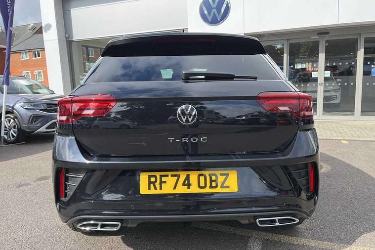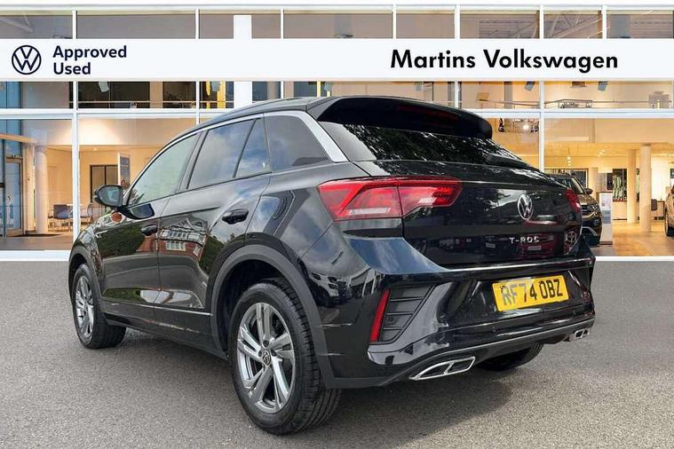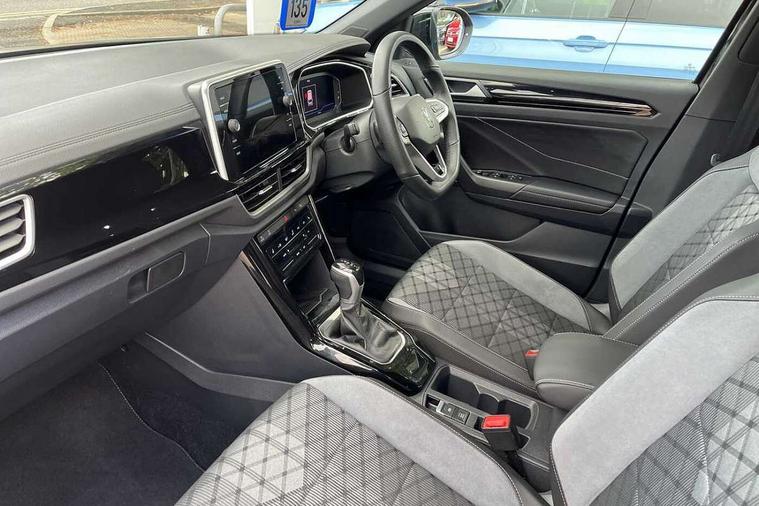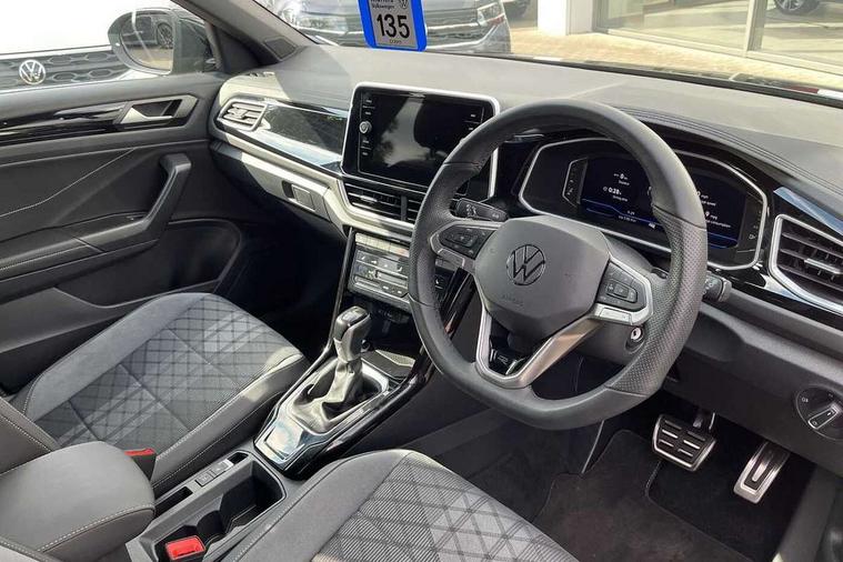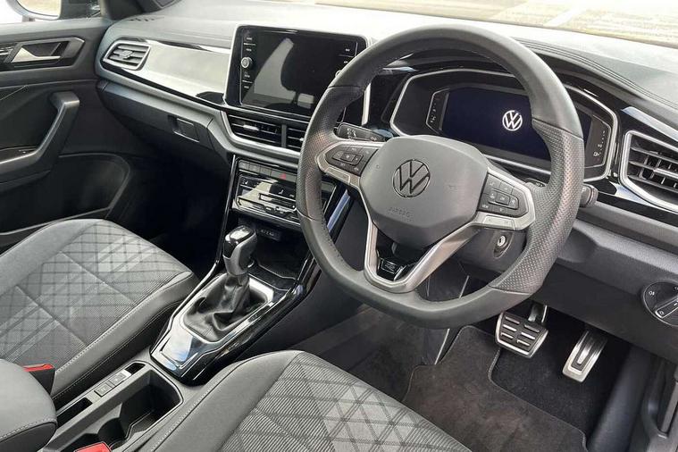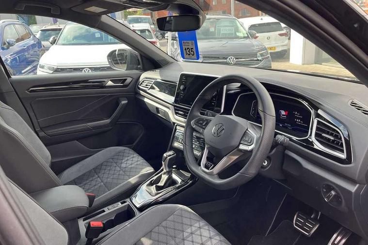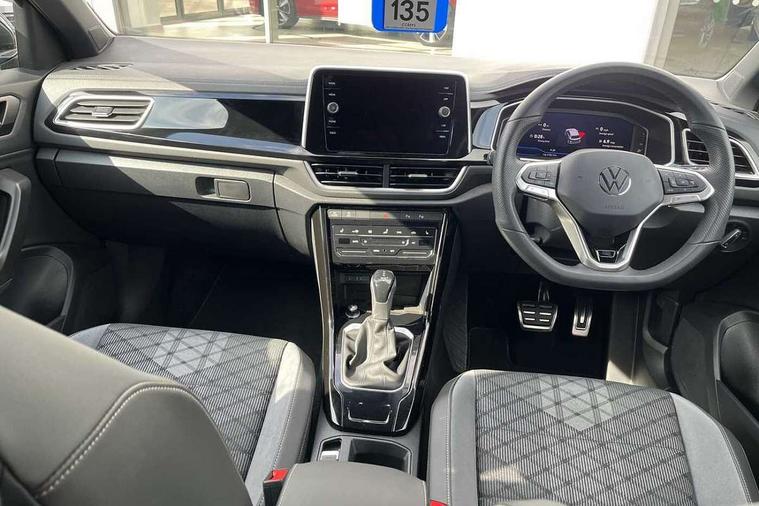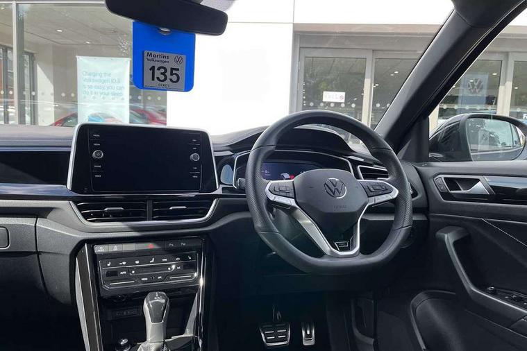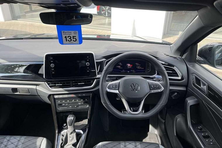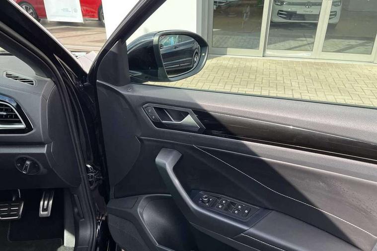 10.25" Digital cockpit pro, Advanced driver attention and drowsiness monitor, Emergency call service, Lane keeping system Lane Assist, Mobile phone interface, Modified key software - reduce switch off time for key status change to Long no motion, Online services, Park assist including front and rear parking sensors, Service interval indicator, Tailgate/trunk lid release from outside, Think blue trainer driver tips and journey analysis, Warning sound and light for front seatbelts unfastened, Wireless app connect, Battery regeneration during braking, Start/stop function with battery regeneration, DAB Digital radio, Diversity antenna for FM reception, Front and rear 6 speakers, Music playback - MP3, WMA and AAC files, Premium USB cable in choice of either Apple or Android smartphone compatibility, SD card slot, Simultaneous pairing of 2 compatible mobile devices, Title and cover art display, We Connect and We Connect Plus functionality, Auto dimming interior rear view mirror, Automatic hazard lights activation under emergency braking, Automatic headlight control with LED separate daytime running lights with coming/leaving home function, Body coloured exterior mirror housings and door handles, Electrically adjustable and heated door mirrors, Extended roof spoiler, Exterior mirrors aspherical on driver side, convex on front passenger side, External USB type C socket and charging sockets, Front windscreen wiper with intermittent wipe and 4 position delay, Heated rear window, LED 3rd brake light, LED rear combination lamps, LED rear number plate lights, Power windows with comfort operation and circuit breaker, Privacy glass for rear side windows and rear window, R-Line design body coloured bumpers, Rain sensor, Rear exhaust tailpipe, Rear fog light on one side and reversing lights on both sides, Rear side wing doors, Rear wash/wipe with intermittent wipe setting, Remote electrically foldable door mirrors, puddle lights and reverse activated passenger's door mirror, 12V power socket in centre console, 3 rear head restraints, 3 seat bench in 2nd row, 4 load lashing points in luggage compartment, Air care climatronic air conditoning system with active combination filter and 2-zone temperature control, Black roof lining, Chrome plated decorative trims, Chrome plated radiator grille inserts, air vent surrounds and light switch surrounds, Door and side trim panel with leatherette insert, Front + rear carpet mats, Front centre armrest, Front cupholders x 2, Front footwell illumination, Front reading light, Front scuff plates with R Line logo, Front seat back storage pockets, Glove compartment door with light, Instrument lighting, white adjustable panel illumination, Interior ambient lighting and surround lighting, Interior light delay, Isofix child seat preparation, Leather gearshift handle, Load-through provision with cup holder when folded down ('Unsplit rear seat bench, split folding backrest, with centre armrest), Luggage compartment lighting, Single front passenger seat, Stainless steel pedals, Storage compartment in left and right luggage area, Storage compartment in rear doors, Storage compartments in driver and front passenger doors, Sunvisors with illuminated vanity mirrors, Variable boot floor, height adjustable and removable, Driver assistance pack without proactive passenger protection - T-Roc, 3 point height adj front seatbelts + pretensioners, 3 point seatbelts in outer rear with ECE label, ABS, Child locks on rear doors, City emergency braking and pedestrian monitoring, Driver and front passenger airbag with front passenger airbag deactivation, Driver and front passenger safety-optimised head restraints, Drivers seatbelt reminder, Electronic parking brake, Electronic Stability Control (ESC) inc EDL (Electronic Differential Lock) and ASR (Traction Control), Front and rear passengers curtain airbag system including front side airbags, Hill start assist, Predictive pedestrian protection, Rear disc brakes, Two tone horn, Tyre pressure loss indicator, Volkswagen roadside assistance, Piano black decorative inserts in dashboard and front door trim panels, Trims for alloy wheels,