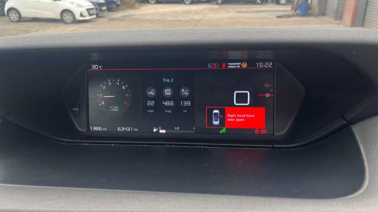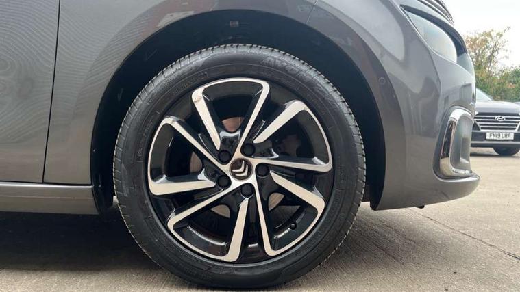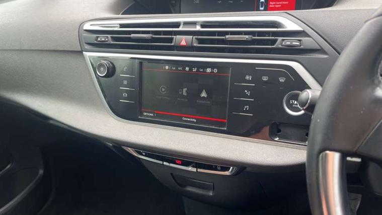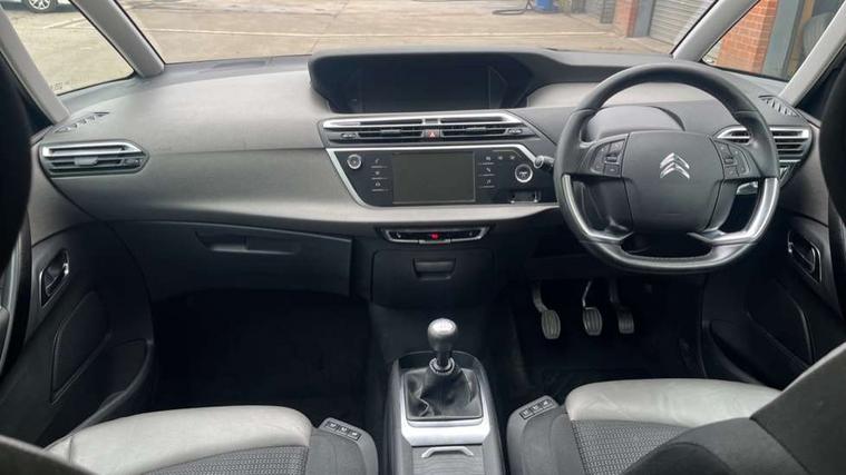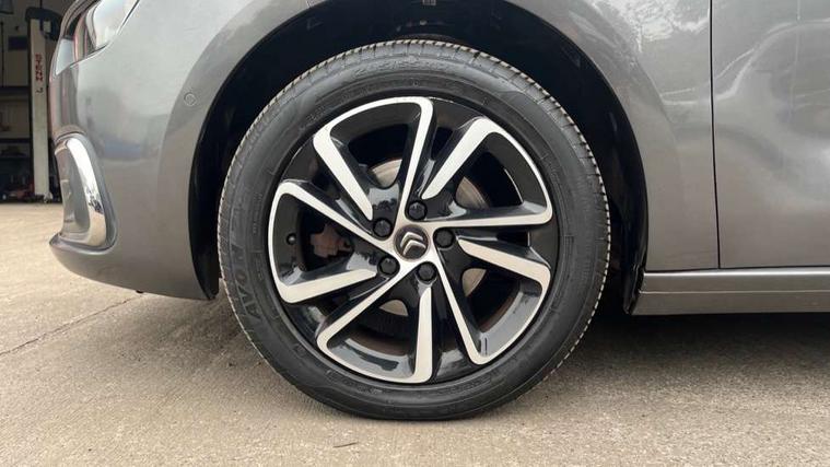 12" HD panoramic screen display, 7" touch screen, Bluetooth with USB and AUX input, Citroen connect Nav with connect box, Coffee Break Alert, Flat tyre indicator, Front parking sensor, Gear selection indicator, Mirror screen with mirror link and car play, Rear parking sensor, Remote fuel cap release, Reversing camera, Service indicator, Trip computer, Variable PAS, 6 speakers, DAB Digital radio, Steering wheel mounted controls, 'Guide me home' headlamps, 3D effect LED rear lights, Auto-dipping door mirrors in reverse gear, Automatic activation of hazard warning lights, Automatic lights and wipers, Body colour bumpers, Body colour door mirrors, Body colour electric folding/heated door mirrors, Chrome lower front bumper insert, Chrome side signature, Dark tinted rear side windows, Dark tinted rear windscreen, Electric front/rear windows with one touch/auto up/down, Foot operated motorised tailgate, Gloss black door handles with chrome insert, Kerbside illumination, LED daytime running lights, Panoramic glass sunroof with dark tinted glass/electric sunblind, Panoramic windscreen, Rear wiper, 12V accessory sockets - front and rear, 12V socket in luggage compartment, 4 Lashing eyes in boot, Aircraft type trays in front seat backrests, Boot light, Child observation mirror, Cup holders, Driver/passenger sunvisors and vanity mirrors, Dual zone automatic air conditioning, Front and rear courtesy reading lights, Front and rear luxury velour carpet mats, Front door pockets with bottle holders, Front headrests, Front seat back storage pockets, Front storage box, Height adjustable armrests on front seats, Height/reach adjust steering wheel, Height/tilt adjustable driver's seat, Illuminated and ventilated glove box, Illuminated centre console storage, Interior lights activated when doors unlocked, Interior mood lighting, Multifunction leather steering wheel, Rear air vents, Rear parcel shelf, Rear top tether child seat ISOFIX attachment, Rechargeable torch, Retractable sunblinds in 2nd row, Scented air freshener, Storage under driver's seat, Three foldable/retractable rear head restraints [row 2], Three individual sliding/fold flat rear seats [row 2], Under floor storage compartment [row 2], 5 three point inertia reel seatbelts, ABS + EBD + EBA, Active seatbelt safety system, Adaptive driver and front passenger airbags, Electronic parking brake, ESP, Front and rear (row 2) curtain airbags, Front lateral airbags, Front seatbelt pretensioners with force limiters, Front seatbelt unfastened audible+visual warnings, Hill start assist, Passenger airbag deactivate switch, Traction control, Two tone horn, Tyre pressure monitor, Automatic boot locking, Automatic door locking, Keyless entry and start, Perimetric and volumetric anti theft alarm, Remote central locking + deadlocks, Transponder immobiliser, Aluminium air vent surrounds, Aluminium dash trim, 17'' Mamba alloy wheels, Space saver spare wheel,