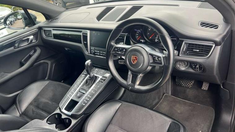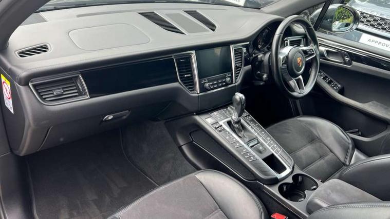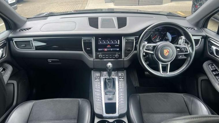 Brake pad wear sensors front and rear, External temperature gauge, Front/rear park distance control, Instrument cluster with high-resolution 4.8-inch TFT colour display, Mobile telephone preparation, Off-road button, On board computer, PCM navigation module, Porsche communications management, Porsche Connect Plus, Power tailgate, Service interval indicator, Sports button in centre console, 75 litre fuel tank, Porsche stability management (PSM), Connect Plus with Apple CarPlay, wireless internet access, Carfinder, Remote Vehicle Status and Remote Services, DAB Digital radio, USB interface in rear, 2 speed front wipers + intermittent wipe, Adaptive brake lights, Automatic headlights, Black side window trim, Colour coded bumpers, Electric front and rear windows + anti trap + one touch, Electric/heated/folding door mirrors, Headlamp cleaning system, Heat insulating laminated glass, Heated rear window with auto timer, Heated washer jets, Intermittent rear wash/wipe, LED daytime running lights, LED fog lights, Painted side air intakes, Rain sensor, Tinted LED tail lights, Towbar preparation, Trailer Stability Programme, Welcome home function, 3 zone climate control, 4 12v Sockets, 4 way adjustable front head restraints, 40:20:40 split folding rear bench seat, Active carbon filter, Air quality sensor, Automatic air recirculate, Clothes hooks on front seat backrests, Folding rear centre armrest, Front and rear cupholders x 2, Front armrest, Front reading lights, Ignition Lock illumination, Illuminated air conditioned glovebox, Illuminated centre console storage, Illumination of luggage compartment, Isofix system on outer rear seats, Pollen filter, Rear headrests, Rear reading lights, Retractable Loadspace Cover, Retractable luggage net, Steering wheel gearshift paddles, Storage bins on all doors, Storage compartments in cargo area side walls, Sport design pack with side skirts - Macan, 3 point automatic seatbelts, 3 point rear seatbelts, ABS+ABD, ASR, Curtain airbags, Electronic parking brake, Front seat belts warning, Front seatbelt pretensioners + load limiters, Front side airbags, Full size driver and passenger airbags, Height adjustable front seatbelts, Hill hold control, Motor Slip Regulation (MSR) - Engine Drag Torque Control, Passenger airbag deactivation system, PTM (Porsche Traction Management), Red painted brake calipers, Two tone horn, Tyre pressure monitoring system, Alarm system, Electronic transponder immobiliser, Remote central locking, Trim strip in silver, Wheel centres with full colour Porsche crest,