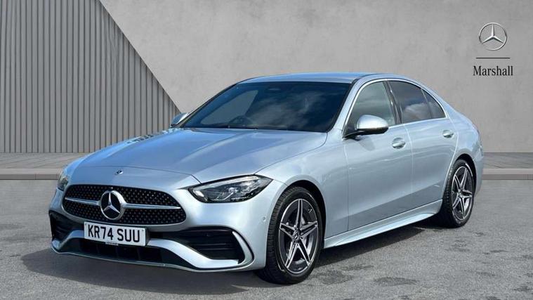 11.9" high resolution multimedia colour display, 12.3" digital instrument cluster display, Active lane keeping assist, Active parking assist with PARKTRONIC, Attention assist, Blind spot assist, Cruise control with speedtronic variable speed limiter, DYNAMIC SELECT with a choice of driving modes (Comfort, ECO, Sport, Sport+, Individual), E-call, Extended MBUX functions, Finger print sensor, Fluorescent jacket for driver, Hard disc navigation, MBUX navigation premium, Mercedes me remote services, Outside temperature gauge, Service indicator (ASSYST), Smartphone integration, Sports direct steer speed sensitive steering, Status display for rear seat belts in instrument cluster, Traffic sign assist, Wireless charging system for mobile devices, 9G TRONIC 9 speed automatic transmission, Petrol Particulate Filter, Sport suspension, DAB Digital radio, MBUX multimedia system, Adaptive brake lights, Adaptive high beam assist, Ambient lighting with projection of brand logo, AMG body styling front apron, rear apron and side skirts, AMG Line exterior, Body coloured bumpers, Body coloured door mirrors, Electric windows with one touch opening/closing and obstruction sensors, Electrically adjustable and heated door mirrors, Heat insulating dark tinted glass, LED daytime running lights, LED high performance headlamps, LED Indicators, LED tail lights, LED third brake light, Radiator diamond grille with integrated Mercedes Benz star and louvre silver with chrome pins, Rain sensor with automatic windscreen wiper activation, Rear boot, Rear side wing doors, Two visible exhaust pipes integrated into rear bumper, 3 seat bench in 2nd row, 40:20:40 split folding rear bench seat, Ambient lighting premium, AMG floor mats, AMG line interior, Artico man-made leather upholstery, Auto Mercedes-Benz child seat recognition sensor, Black roof liner, Double cupholder in centre console, Electrically height/reach adjustable steering column, Folding rear seat backrest, Front and rear head restraints, Gearshift paddles on steering wheel, Heated front seats, Illuminated door sills with Mercedes Benz lettering, Illuminated glove compartment stowage, Multifunction sports steering wheel in nappa leather, Rear top tether child seat ISOFIX attachment, Single front passenger seat, Sports seats, Sunvisors with illuminated vanity mirrors, THERMATIC 2 zone automatic climate control, Interior light package - C Class, Memory package - C Class, Mirror package - C Class, Parking package with reversing camera - C Class, Stowage space pack - C Class, USB package plus - C Class, 3 rear 3 point seatbelts, Active bonnet pedestrian safety measure which detects an impact and raises bonnet, Active brake assist, Adaptive brake system with HOLD function and brake drying in the wet, Anti-lock braking system (ABS), Black seat belts, Brake calipers with Mercedes-Benz lettering + perforated front brake discs, Child proof door locks, Drivers knee airbag, Drivers pelvis airbag, Dual stage driver/passenger airbags, Electric parking brake, Electronic Stability Programme (ESP), Front centre airbag between driver and front passenger seats, Front side airbags, Tyre pressure monitoring system, Warning triangle and first aid kit, Window airbags for driver, front passenger and rear passenger, Antitheft alarm system, Interior monitoring system and Increased antitheft protection, Central locking with interior switch, automatic locking and crash sensor with emergency opening function, Chrome surround electric key, Keyless Go, Urban guard vehicle protection plus, Dashboard, instrument panel and beltlines in ARTICO man made leather in nappa look, Metal structure trim element with centre console in metal structure finish, 18" AMG 5 spoke design aerodynamically optimised alloy wheels painted in tantalite grey with high sheen finish, TIREFIT with tyre inflation compressor,
