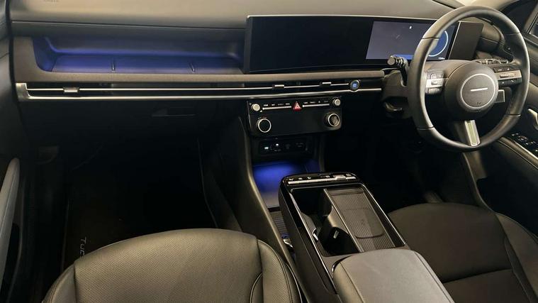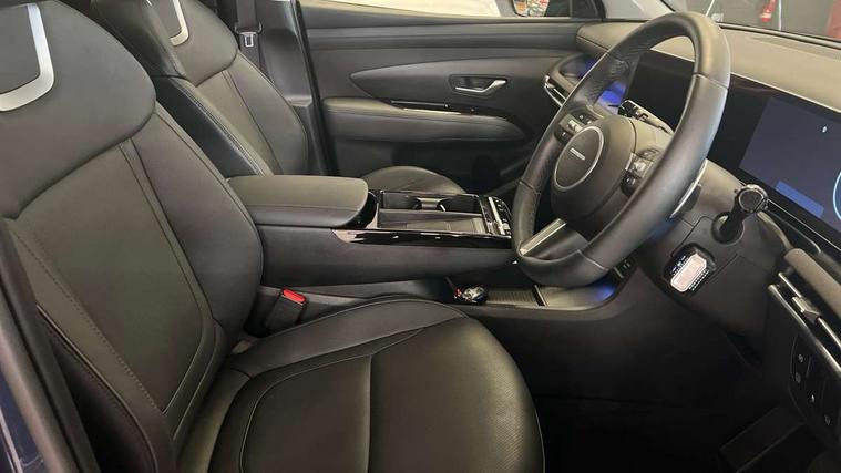 12.3" LCD display with driver's supervision instrument cluster, 12.3" widescreen navigation with bluelink and mapcare, Blind spot view monitor, Bluetooth system, Cruise control - smart adaptive speed control with stop and go function, Digital clock, Drive mode selector, Driver attention warning, E-call, Emergency stop signalling system, Forward Collision Avoidance Assist (FCA) - Car, Pedestrian and Cycle, Forward Collision Avoidance Assist Junction Turning (FCAJX), Front and rear parking sensors, Front, rear and side parking distance warning, Highway Driving Assist (HDA), Hyundai road side assistance, Intelligent speed limit assist, Lane follow assist, Lane keep assist, Over the air updates(OTA), Parking collision avoidance assist (PCA), PAS, Rear camera and guidance parking system, Rev counter, Smart power tailgate, Surround view monitor, Tailgate open warning light, Trip computer, Trip odometer, Voice recognition, Water temperature gauge, Windscreen washer fluid sensor and warning indicator, Wireless Apple CarPlay/Android Auto, Wireless phone charging pad, 2 front and 2 rear USB-C ports, DAB Digital radio, Krell premium audio system with 8 speakers and subwoofer, Steering wheel mounted audio/phone controls, Adjustable intermittent front windscreen wipers with aero wiper blade, Auto dimming rear view mirror, Automatic defog system, Automatic headlights with dusk sensor, Automatic windscreen wipers with rain sensor, Black wheel arches, Body colour bumpers, Body colour door mirrors with integrated indicators, Body colour exterior door handles, Electric tilt/slide panoramic sunroof, Electrically adjustable, heated and power folding door mirrors, Follow me home headlights, Front and rear electric windows with anti-trap mechanism and one touch control, Front fog lights, LED 3rd brake light, LED daytime running lights, LED rear lights, Matrix LED headlights, Positioning Lights - LED, Privacy glass - Rear windows and tailgate, Rear side wing doors, Rear wash/wipe with intermittent wipe setting, Roof rails, Tinted glass with windscreen shade band, Trailer stability assist, 12V power outlets in front console and luggage compartment, 3 seat bench in 2nd row, 40/20/40 split folding rear seat, 64 colours interior ambient lighting, Adjustable head restraints (Up and down), Cupholders in rear armrest, Door courtesy lights, Driver and passenger sunvisors with illuminated LED vanity mirrors, Driver's seat electric adjustments, Driver's seat memory, Front and rear door pockets, Front armrest with storage box, Front centre console and door bottle holders, Front passenger's seat electric adjustments, Heated front seats, Heated rear seats, Heated steering wheel, Height/reach adjustable steering column, Illuminated/air conditioned glove compartment, ISOFIX child seat anchorage points attached on outer rear seats, Leather upholstery, Leather wrapped steering wheel and gear knob, Luggage compartment lighting, Luggage cover, Luggage hooks, Luggage net, Map and reading lights, Rear seat remote folding function, Rear side window sunblind, Reclining rear seats, Retractable load cover, Single front passenger seat, Sunglasses holder, Three zone climate control, Touch sensitive climate controls with temperature dials, TUCSON branded metal door scuff plate, Underfloor boot compartment, Ventilated front seats, Trailer wiring package - Tucson, 3x3 point rear seatbelts, Active bonnet, Airbag - Front, front side, curtain and centre front airbags, Anti-lock brake system (ABS), Brake assist function, Childproof rear door locks, Curtain airbag roll over sensor, Downhill brake control, Electric parking brake, Electronic stability control, Front and rear seatbelt reminder, Front passenger airbag deactivation switch, Front seatbelt pretensioners, Hill start assist control (HAC), Multi-Collision braking, Outer rear seatbelt height adjustment, Seatbelt height adjustment for front seats, Traction control, Tyre pressure monitoring system with individual tyre pressure display - TPMS, Vehicle stability management, Deadlocks, Immobiliser, Locking wheel nuts, Remote control central locking, Smart key with keyless entry and engine start/stop button, Speed sensitive auto door locking, Thatcham category 1 alarm, 19" Alloy wheels, Tyre repair kit,