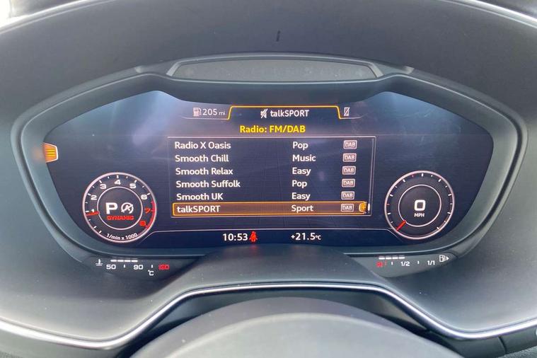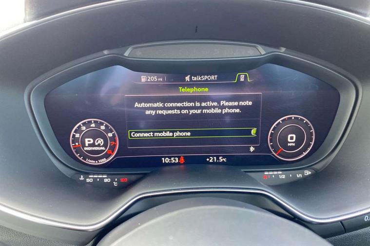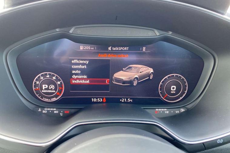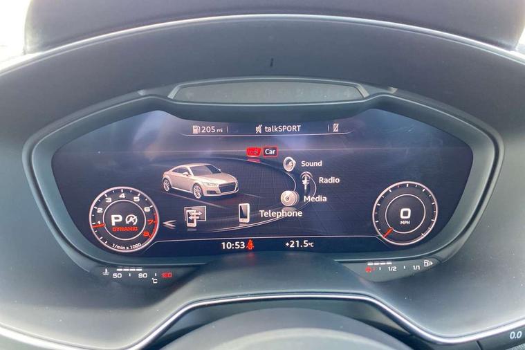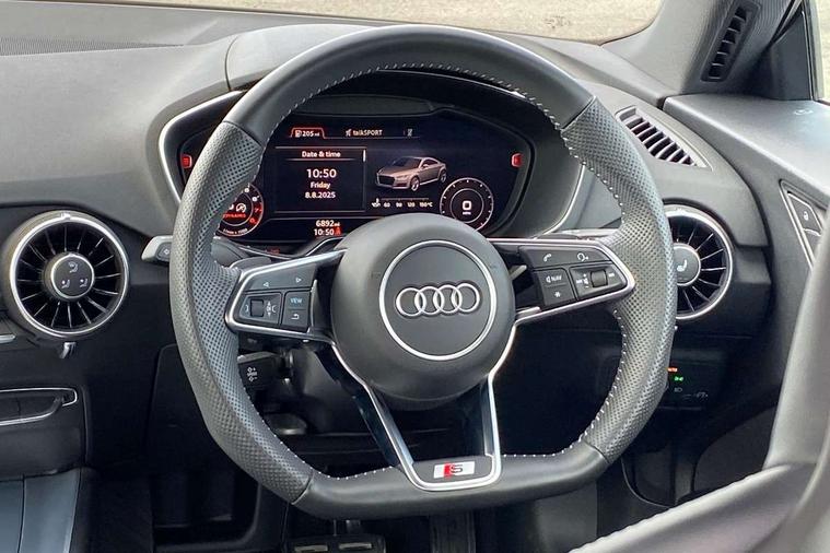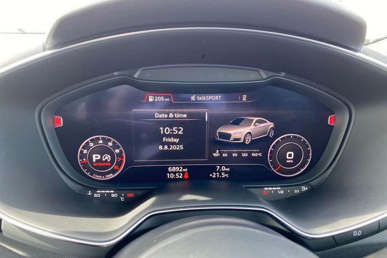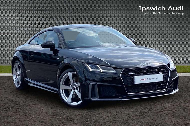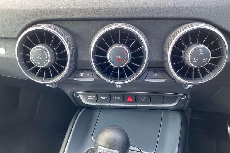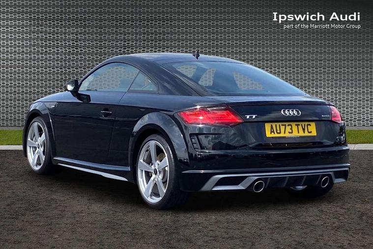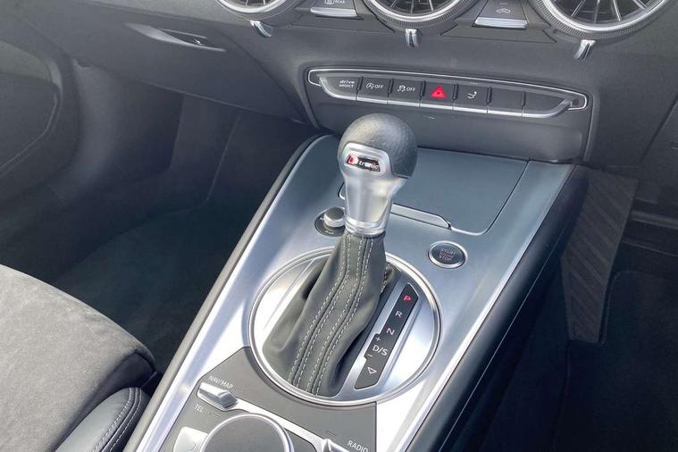 Audi drive select with 4 Pre configured modes, Audi smartphone interface, Cruise control + speed limiter, Emergency call service, MMI touch panel, Mobile phone preparation with bluetooth interface, Progressive power assisted steering, Service interval indicator, Start/Stop system with energy recuperation, TP memo, S line sports suspension, AM/FM radio, Bluetooth audio streaming, DAB Digital radio, MMI Radio with CD player and SD/XC card slot, Auto dimming rear view mirror, Auto headlight range control, Black door mirrors, Body colour bumpers, Electric folding door mirrors, Electric front windows, Electrically adjustable and heated door mirrors with integrated LED side indicators, Front fog lights, Green tinted heat insulating glass, High gloss black radiator grille, LED 3rd brake light, LED daytime running lights, LED headlights with LED rear lights + dynamic rear indicators, Light and rain sensors, Rear boot, Retractable rear spoiler, S line badges on front wings, Sunband for windscreen, 12V socket, 2 rear seats, 3 spoke flat bottomed high multi-function leather sport steering wheel with gearshift paddles, 4 way electric lumbar support for driver and front passenger, Black headlining, Contrasting silver stitching in steering wheel, Door sill trims with S line logo, Extended aluminium look with stainless steel pedals, Front centre armrest, Front passenger seat, Front super sports seats, Heated front seats, Height/reach adjust steering wheel, Integrated head restraints, ISOFIX child seat mounting for front passenger seat with airbag deactivation, Manual adjustment of seat height, fore/aft position, seat angle, seat depth and backrest angle, Perforated leather gearknob in black, Rear head restraints, Rear top tether child seat ISOFIX attachment, S Line badge on steering wheel, Split folding rear seat, Tool kit, Non smoking pack - TT/TT RS, S Line design styling pack - TT, 3 point front seat belts, ABS, ASR traction control, Curtain airbags, Driver and front passenger airbag with front passenger airbag deactivation, EDL traction control, Electromechanical parking brake, ESP, First aid kit, Front side airbags, Head airbags, Hill hold assist, Seatbelt warning, Tyre pressure loss indicator, Warning triangle, Anti theft alarm, Anti theft wheel bolts, Immobiliser, Keyless Go, Remote central locking, Matt brushed aluminium inlays, Tyre repair kit,