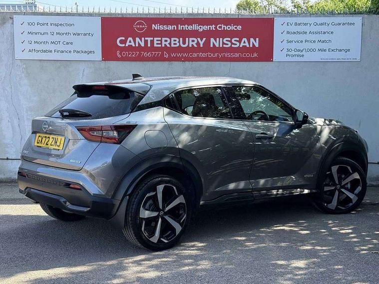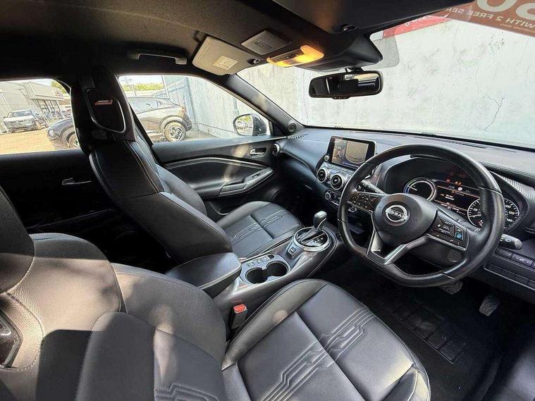 7" full colour TFT screen combimeter, Apple CarPlay and Google Android auto, Drive modes select (Eco, normal and sport), e-Pedal step, Emergency and breakdown call, EV mode selector, Front parking sensor, Intelligent lane intervention, Lane departure warning system, Nissan connect 8" touch screen entertainment system, Nissan connect nav with TomTom traffic, Nissan connect services and Wifi connection, Outside temperature sensor, Power Steering, Rear parking sensor, Traffic sign recognition, Trip computer, Voice recognition, Gasoline particulate filter, 10 Bose speakers 6 speakers and 2 headrest speakers for driver/passenger seats, Bluetooth system, USB, Aux-in and 12V socket, Bose personal sound stage control, DAB Digital radio, Rear console USB port, 3rd brake light, Auto dimming interior rear view mirror, Auto headlights, Automatic hazard signal with emergency stop signal, Body colour bumpers, Body colour door handles, Electrically adjustable door mirrors with integrated indicators, Follow me home headlights, Front and rear electric window with one touch driver window, Heated and auto folding door mirrors, High beam assist, LED daytime running lights, LED front fog lights, LED headlamps, LED rear fog lamp, LED rear lamps, Rain sensor windscreen wipers, Rear privacy glass, Rear side wing doors, Rear spoiler, Rear wiper, Thermaclear heated windscreen, Three blink turn signal, 3 height adjustable rear headrests, 3 seat bench in 2nd row, 60/40 split folding rear seat, Automatic climate control, Card holder on driver sunvisor, Door ambient lighting, Driver and passenger sliding and reclining seats, Driver seat back pocket, Driver side rear coat hanger, Driver/passenger sunvisors and vanity mirrors, Front and rear cabin lighting, Front armrest, Front door pockets with bottle holders, Front head restraints, Front passenger isofix child seat anchorage point, Front/rear passenger grab handles, Gear console ambient circle lighting, Grey synthetic leather kneepad, Heated front seats, Height adjustable driver's seat, Height adjustable passenger seat, Internal chrome door handles, Leather gearshift knob, Leather steering wheel, Luggage board, Luggage space lighting, Monoform sporty seats, Multifunction steering wheel, Passenger seat back pocket, Rear door bottle holders, Single front passenger seat, Steering wheel mounted gearshift paddles, Synthetic leather upholstery, Telescopic steering wheel adjustment, Two cupholders in front centre console, Two rear isofix child seat anchorage points with top tether, Welcome light and console tray ambient lighting, ProPilot pack - Juke, ABS with EBD and brake assist, Active ride control, Active Trace Control, Driver and passenger airbags, Driver and passenger side airbags, Electric handbrake with auto hold function, Electronic Stability Programme (ESP), Front and rear curtain airbags, Height adjustable seatbelts, Hill start assist, Intelligent emergency braking with pedestrian and cyclist recognition, Rear door child safety locks, Seatbelt reminder for driver/front passenger and rear seats, Single tone horn, Three 3 point rear seatbelts, Traction control, Tyre pressure monitoring system, VDC Dynamic Vehicle Control, Ventilated rear brake discs, Alarm, Immobiliser, Intelligent key and start push button with walk away lock and approach unlock functions, Remote central locking,