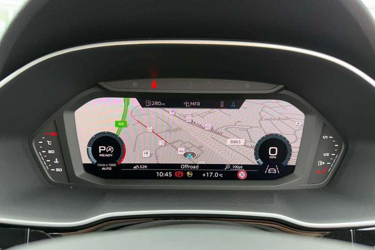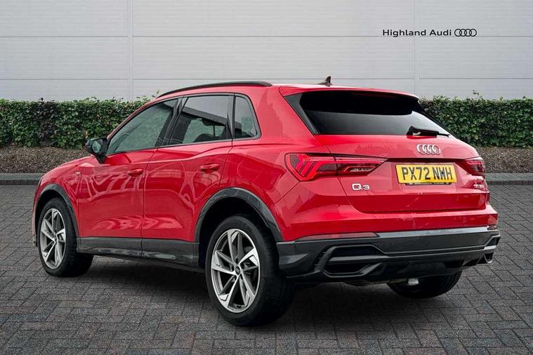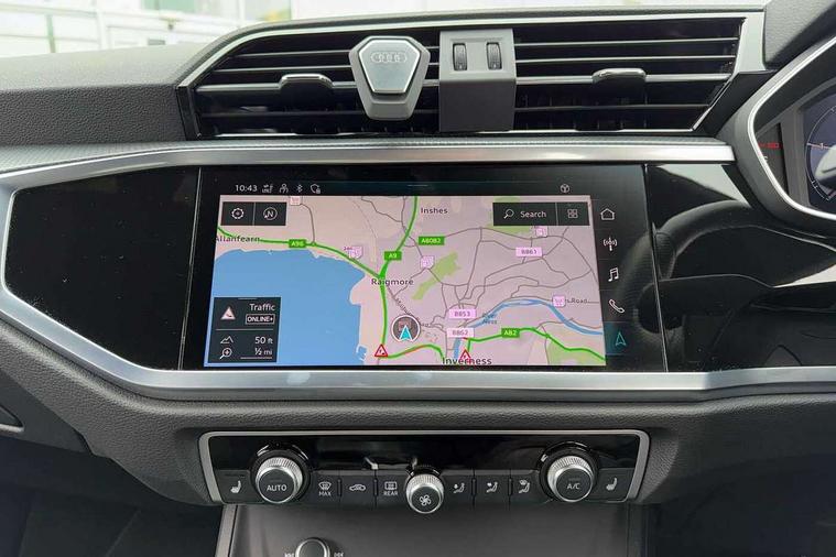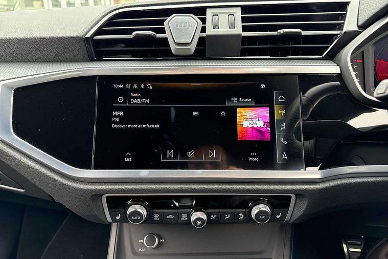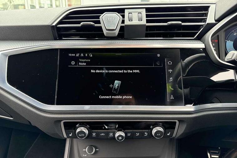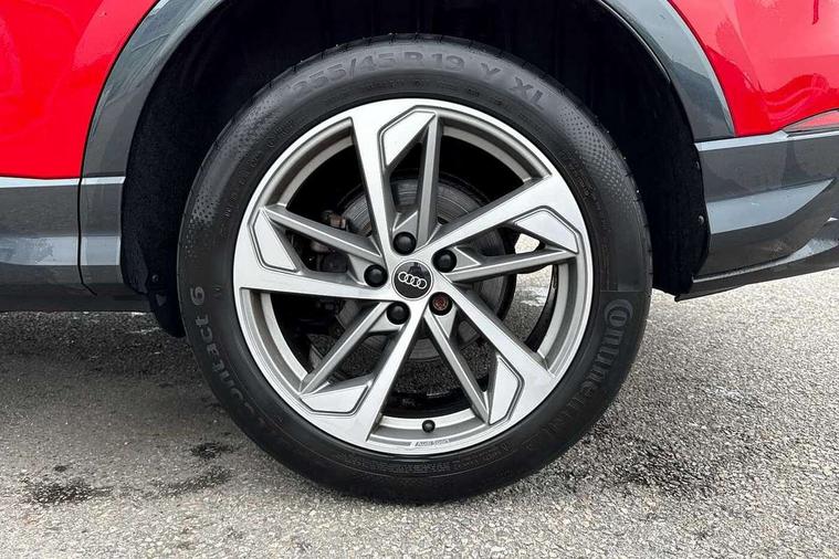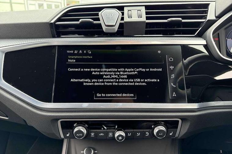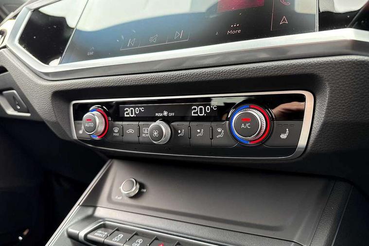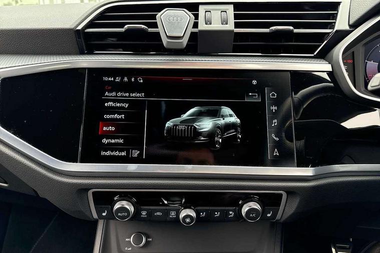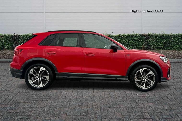 Amazon alexa Integration, Audi drive select, Audi lane departure warning, Audi smartphone interface includes wireless Apple carplay/Android Auto, Audi Virtual Cockpit - 10.25" display, Bluetooth interface, Camera based traffic sign recognition, Legal emergency call, MMI Navigation Plus with high resolution 10.1 inch touchscreen colour display, Power operated tailgate, Progressive steering, Service interval indicator, Start stop system with recuperation, Voice control system with natural language interaction, Diesel particulate filter, Sports suspension, 2 USB-C ports with charge and data functions, 6 passive loudspeakers, DAB digital radio module, Acoustic windscreen, Auto dimming frameless rear view mirror, Black roof rails, Electrically folding, adjustable and heated door mirrors with integrated LED side indicators and kerb view function for passenger side, Front and rear electric windows, Front fog lights, Grille vertical bars in aluminium silver/Matt, High gloss black finish B and C pillars, LED headlights with LED daytime running lights, LED rear lights, LED third brake light, Privacy glass dark tinted rear and rear-side windows (from B-pillar backwards), Rain and light sensors, Rear diffuser grille in grained matt black, Rear diffuser strip in matt titanium black, Rear side wing doors, Rear wiper, S line bumpers in contrasting Manhattan grey, Variable front intermittent wipers, 12V socket in rear centre console, 3 seat bench in 2nd row, 40:20:40 folding with manual adjustment for 60:40 forwards/backwards position and backrest angle, Adjustable rear seat bench/backrest with centre armrest and cupholder, Black cloth headlining, Dual zone electronic climate control, Front and rear black floor mats with contrast stitching in rock grey, Front and rear headrests, Front and rear roof module including reading lights, Front centre armrest, Glove compartment lighting, Height and reach adjustable steering wheel, Illuminated door sill trims with S logo, ISOFIX child seat mounting for front passenger with airbag deactivation and outer rear seat including top tether attachment point for outer rear seats, Luggage compartment light, Manual front seats with height adjustment, Perforated leather gearknob, Single front passenger seat, Stainless steel luggage compartment sill finisher, Stainless steel pedals, Black styling pack - Q3, Non smoking pack - Q3, 3x3 point rear seatbelts, 6 airbags - Driver, front passenger, curtain and side windows, Audi pre-sense front with pedestrain and cyclist recognition, Electromechanical parking brake, Electronic stabilisation control including ABS, ASR and EDL, Front seatbelt reminder, Hill descent control, Hill hold assist, Manual child lock in rear doors, Pre sense basic, Seatbelt monitoring, Tyre pressure warning, Warning triangle and first aid kit, Anti theft alarm, Anti theft wheel bolts, Immobiliser, Remote central locking, Detail dashboard around MMI touch colour display in glass look, black with surround in aluminium look, Leatherette door armrest, Piano black inlay,