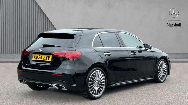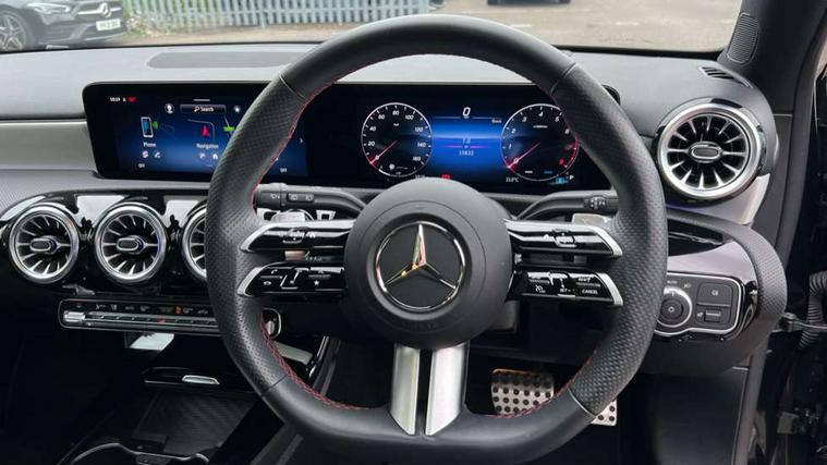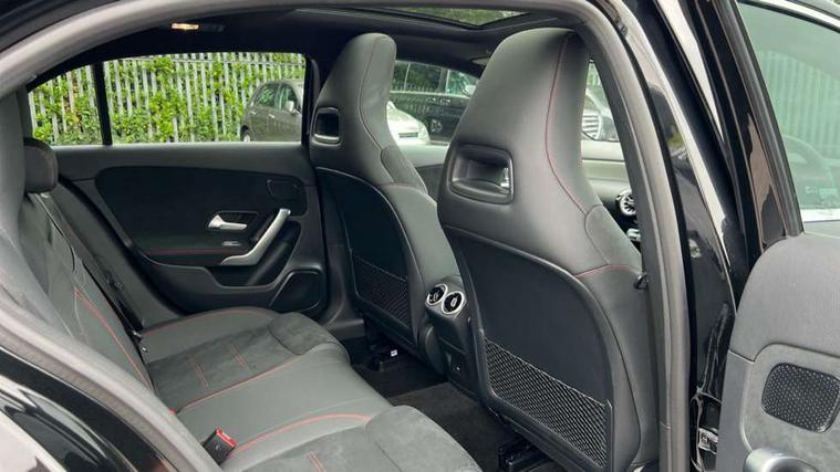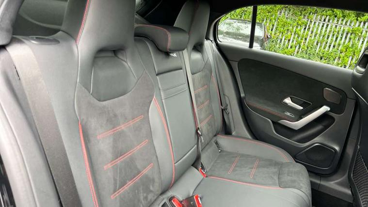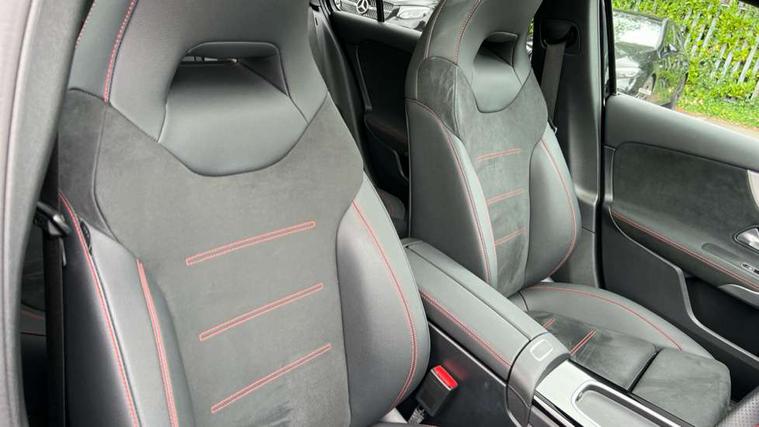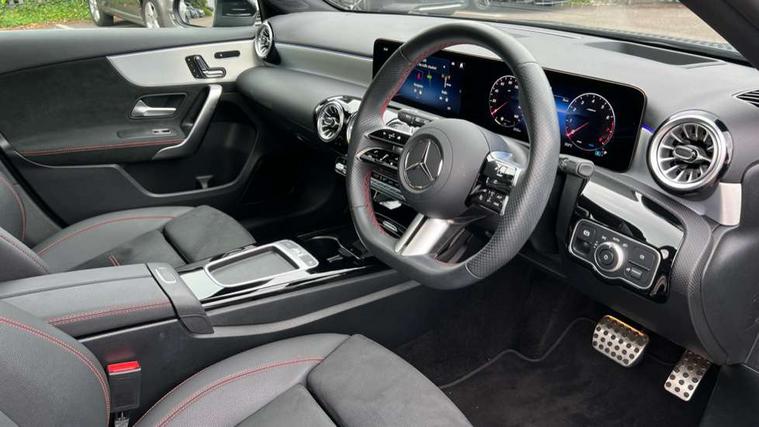 10.25 inch touchscreen central media display, 10.25" Digital instrument cluster display screen, Attention assist, Brake pad wear indicator warning light, Car wash mode, Direct steering, Direction indicators with lane change function, Dual bluetooth interfaces, DYNAMIC SELECT with a choice of driving modes (ECO, Comfort, Sport and Individual), Easy pack tailgate hands-free access, ECO start/stop function, Engine start/stop button, Fluid level warning indicator for fuel, oil, coolant and washer fluid, Fluorescent jacket for driver, Hard-disk navigation, Head up Display, Hey Mercedes Voice activation, Lamp failure indicator, MBUX Interior assistant, Mercedes me connect including emergency call system, accident recovery, breakdown and maintenance management, Mercedes me remote services, Outside temperature gauge, Owners manual in English, Pre-installation of private car share, Preinstallation for Mercedes Benz link, Remote boot closing, Service indicator (ASSYST), Smartphone integration with Apple CarPlay and Android auto, Speed sensitive power steering, Tailgate, Traffic sign assist, Trip computer in multifunction display with current consumption indicator, Wireless charging, Lowered comfort suspension, DAB Digital radio, MBUX multimedia system, Mercedes Benz advanced sound system (225 W) with 10 speakers, 1 central speaker, speakers on doors, a tweeter on door, one sub woofer + boost amplifier, 4 Electric Front and Rear windows, Adaptive brake lights, AMG body styling - AMG front apron with front splitter and AMG rear apron and visible exhaust tailpipe trim elements, Body colour bumpers, Body colour door handles with chrome inserts, Body colour side skirt, Body coloured door mirrors, Chrome beltline strips, Diamond radiator grille with pins in fine star pattern, Electric adjustable and heated door mirrors with integrated LED side indicators, Exhaust system with 2 visible tailpipe trim elements and rear apron, Headlamp assist automatic headlamp activation, Heat insulating dark tinted rear and rear side windows, Heated glass rear windscreen + timer control, LED daytime running lights, LED High level third brake light, LED tail lamp, Multibeam LED headlamps with adaptive highbeam assist and cornering function, Panoramic sliding sunroof, Privacy glass, Radio aerial, Rain sensing windscreen wipers with two sensitivity settings, Rear fog lights, Rear side wing doors, Rear windscreen wiper, Surround lighting with logo projection, Window line trim strip in chrome, 3 seat bench in 2nd row, 3 Spoke flat bottom leather multi function steering wheel with perforated leather in grip area, 40:20:40 split folding rear seats, Air conditioning - Two zone thermotronic luxury automatic climate control with display, AMG floor mats, Automatic child seat recognition sensor, Black air vents with surround in silver chrome, Black roof lining, Brushed stainless steel sports pedals with rubber studs, Electrically adjustable front memory seats including lumbar support and backrest inclination, Front centre armrest with stowage, Front seat backs luggage nets, Galvanished gear shift paddles on steering wheel, Heated front seats, Height/reach adjustable steering column, Illuminated Mercedes Benz lettering front door sills with changeable cover, Interior lighting - 64 colour Ambient lighting, Interior mirror with reading lamps in black and frameless, Rear armrest with 2 cupholders, Seat occupancy sensor for front passenger seat, Single front passenger seat, Sports seats with integrated headrests, Stowage compartment in centre console with retractable cover, Sunvisors with illuminated vanity mirrors, Twin front cupholders, Light and sight pack - A Class, Mirror package - A Class, Parking pack with 360 degree camera - A Class, Seat comfort pack - A Class, USB pack plus - A Class, 3 rear 3 point seatbelts, ABS with Brake Assist, Active bonnet, Adaptive brake assist with hold function and hill start assist, Black seatbelts, Bonnet with power domes, Childproof locks manually operated for rear doors and electrically operated for rear power windows, Crash responsive emergency lighting, Driver and passenger head and side airbags, Drivers knee airbag, Dual stage driver/passenger airbags, Electronic parking brake, ESP curve dynamic assist, ESP with ASR, Exit warning, Front and rear seatbelt reminder, ISOFIX and top tether child seat fixing points in two outer rear seats, Tyre pressure monitoring system, Warning triangle and first aid kit, Window airbags, Alarm system/interior protection/immobiliser, Guard 360 degree vehicle protection, Keyless entry lock/unlock, Keyless Go, Remote central locking and crash sensor with emergency opening function, Light longitudinal grain aluminium trim, 19" AMG multi-spoke light alloy wheels, aerodynamically optimised, painted in titanium grey with high sheen finish, Summer tyres, Tirefit sealant kit,