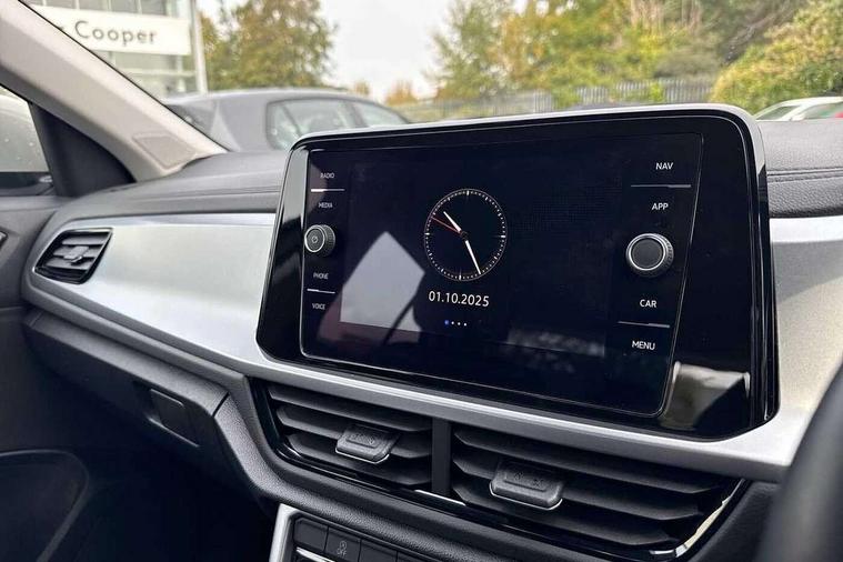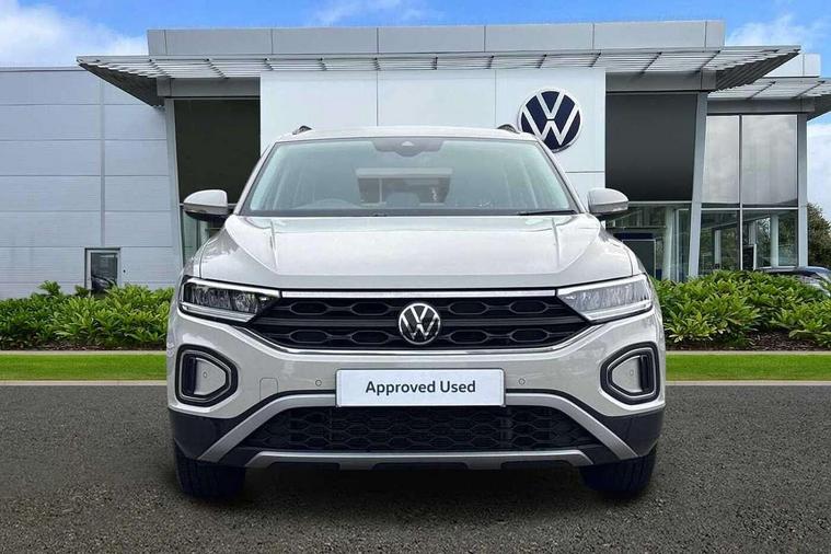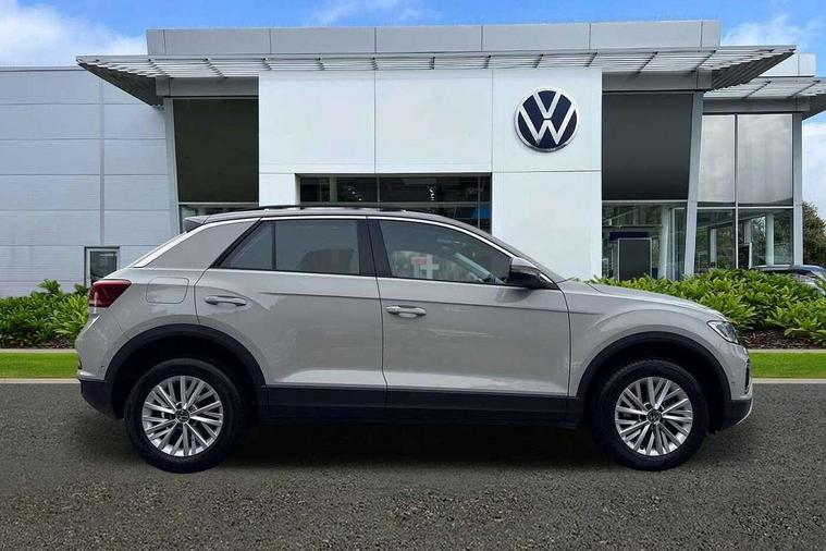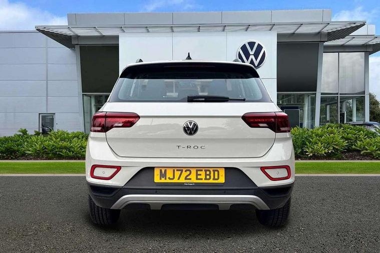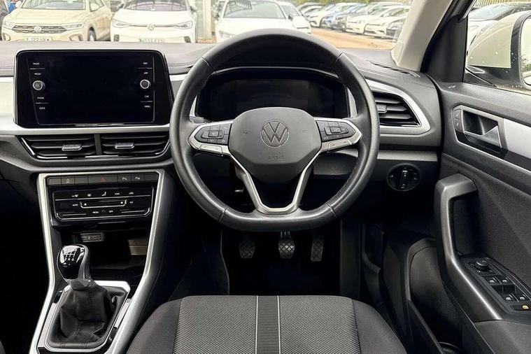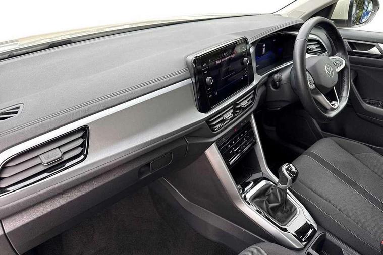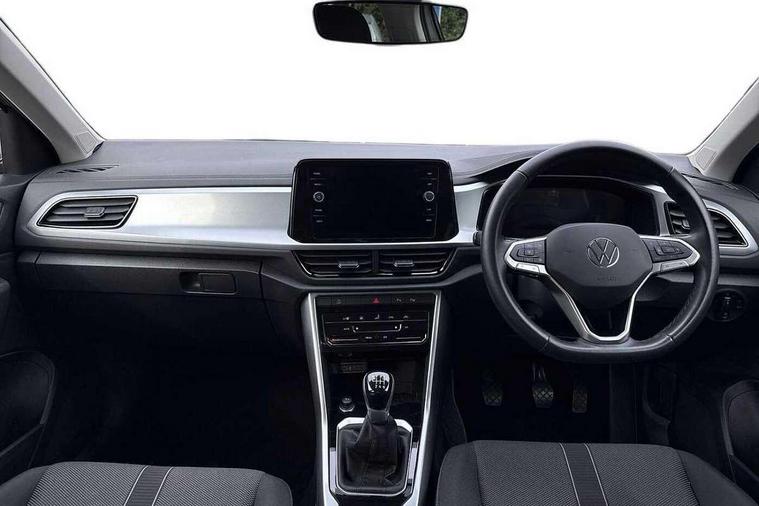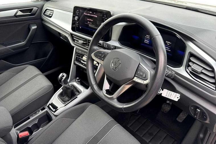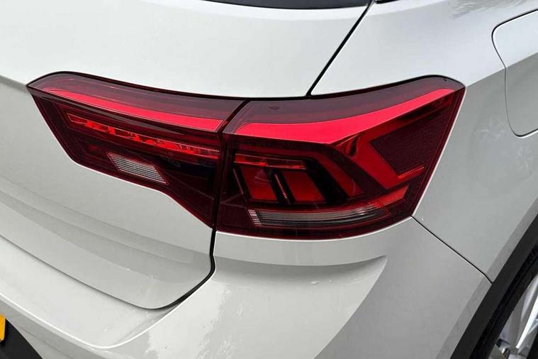 Bluetooth mobile phone interface, Driver alert system with fatigue detection, Driver tips and journey analysis, Emergency call service, Lane keeping system Lane Assist, Modified key software - reduce switch off time for key status change to Long no motion, Online services, Park assist including front and rear parking sensors, Power assisted speed sensitive steering, Service interval indicator, Tailgate/trunk lid release from outside, Think blue trainer driver tips and journey analysis, Warning sound and light for front seatbelts unfastened, Wireless app connect, Battery regeneration during braking, Front shock absorption, Rear shock absorption chassis with increased ride height, Start/stop function with battery regeneration, DAB Digital radio, Diversity antenna for FM reception, Front and rear 6 speakers, Music playback - MP3, WMA and AAC files, Premium USB cable in choice of either Apple or Android smartphone compatibility, SD card slot, Simultaneous pairing of 2 compatible mobile devices, Title and cover art display, We Connect and We Connect Plus functionality, 3rd brake light, Auto dimming interior rear view mirror, Automatic hazard lights activation under emergency braking, Automatic headlight control with LED separate daytime running lights with coming/leaving home function, Black roof rails, Body coloured bumpers and radiator grille with chrome trim and front fog lamps with chrome bezel, Body coloured exterior mirror housings and door handles, Extended roof spoiler, Exterior mirrors aspherical on driver side, convex on front passenger side, External USB type C socket and charging sockets, Front windscreen wiper with intermittent wipe and 4 position delay, Heated rear window, LED Headlights, LED rear combination lamps, LED rear number plate lights, LED tail lamp rear comination lamps, Power windows with comfort operation and circuit breaker, Rain sensor, Rear exhaust tailpipe, Rear fog light on one side and reversing lights on both sides, Rear side wing doors, Rear wash/wipe with intermittent wipe setting, Remote electrically foldable door mirrors, puddle lights and reverse activated passenger's door mirror, 12V power socket in centre console, 3 rear head restraints, 3 seat bench in 2nd row, 4 load lashing points in luggage compartment, Air care climatronic air conditoning system with active combination filter and 2-zone temperature control, Ambient lighting with mirror logo projection, Cloth upholstery, Door and side trim panel in cloth, Drawer under drivers seat, Driver/front passenger seat height adjustment, Front centre armrest, Front comfort sports seats, Front cupholders x 2, Front reading light, Instrument lighting, white adjustable panel illumination, Interior light delay, Isofix child seat preparation, Leather gearshift handle, Load-through provision with cup holder when folded down ('Unsplit rear seat bench, split folding backrest, with centre armrest), Luggage compartment lighting, Lumbar support for driver's and front passengers seat, Non-folding front passenger seat backrest, Single front passenger seat, Storage compartment in left and right luggage area, Storage compartment in rear doors, Storage compartments in driver and front passenger doors, Sunvisors with illuminated vanity mirrors, Variable boot floor, height adjustable and removable, Driver assistance pack without proactive passenger protection - T-Roc, 3 point height adj front seatbelts + pretensioners, 3 point seatbelts in outer rear with ECE label, ABS, Child locks on rear doors, Driver and front passenger airbag with front passenger airbag deactivation, Driver and front passenger safety-optimised head restraints, Drivers seatbelt reminder, Electronic parking brake, Electronic Stability Control (ESC) inc EDL (Electronic Differential Lock) and ASR (Traction Control), Front and rear passengers curtain airbag system including front side airbags, Front assist with city emergency braking and pedestrian monitoring, Front disc brakes, Front seat side impact airbags, Hill start assist, Predictive pedestrian protection, Rear disc brakes, Single tone horn, Tyre pressure loss indicator, Volkswagen roadside assistance, Alarm with interior protection, Anti-theft alarm system with interior monitoring, backup horn, and towing protection, Remote central locking with SAFELOCK, radio remote control with 2 remote control folding keys, Pewter matt decorative inserts for intrument panel, centre console and door panels at the front, Trims for alloy wheels,