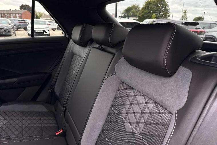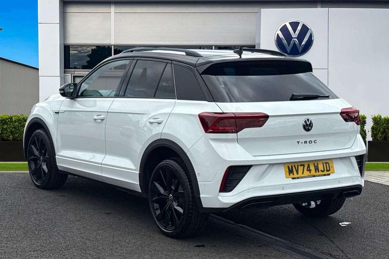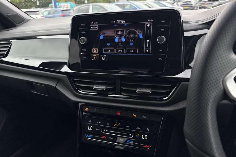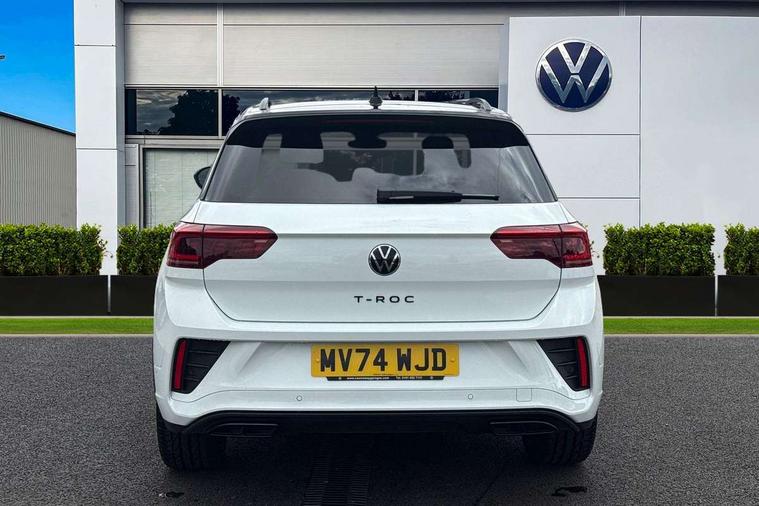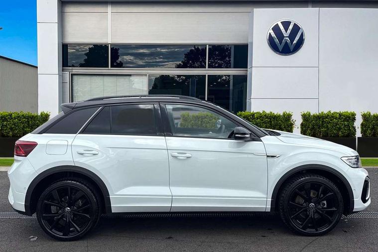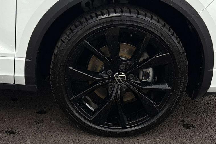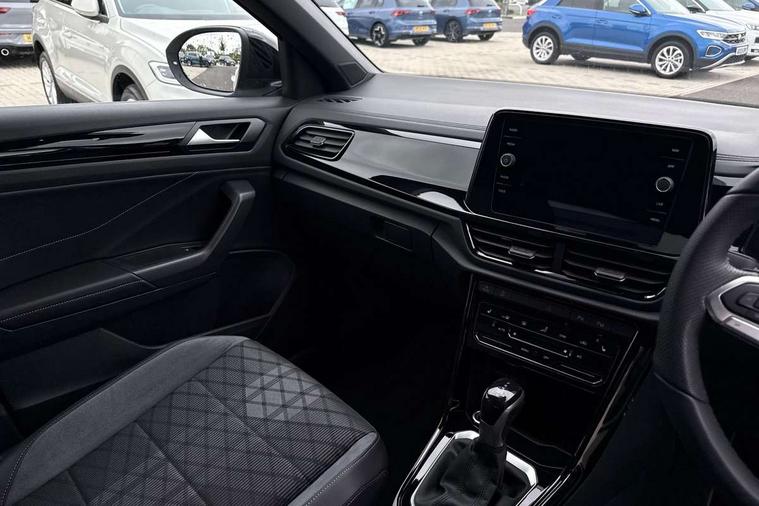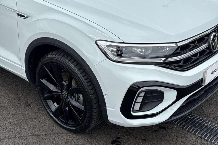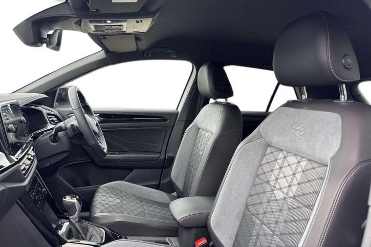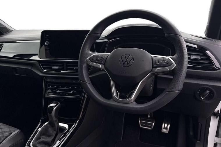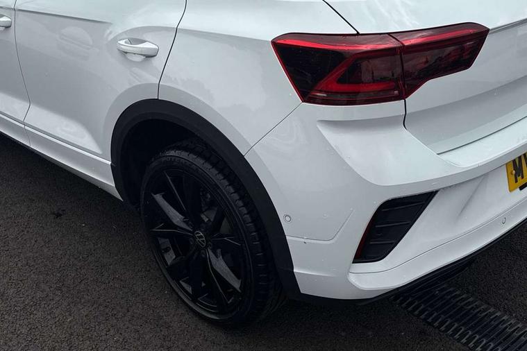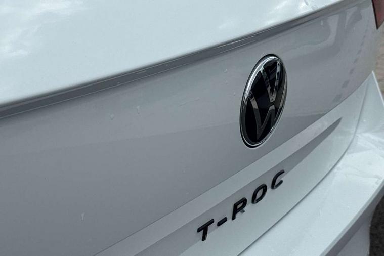 10.25" Digital cockpit pro, Advanced driver attention and drowsiness monitor, Emergency call service, Lane keeping system Lane Assist, Mobile phone interface, Modified key software - reduce switch off time for key status change to Long no motion, Online services, Park assist including front and rear parking sensors, Power assisted speed sensitive steering, Service interval indicator, Tailgate/trunk lid release from outside, Think blue trainer driver tips and journey analysis, Warning sound and light for front seatbelts unfastened, Wireless app connect, Battery regeneration during braking, Rear shock absorption chassis with increased ride height, Start/stop function with battery regeneration, DAB Digital radio, Diversity antenna for FM reception, Front and rear 6 speakers, Music playback - MP3, WMA and AAC files, Premium USB cable in choice of either Apple or Android smartphone compatibility, SD card slot, Simultaneous pairing of 2 compatible mobile devices, Title and cover art display, We Connect and We Connect Plus functionality, Auto dimming interior rear view mirror, Automatic hazard lights activation under emergency braking, Automatic headlight control with LED separate daytime running lights with coming/leaving home function, Dynamic cornering light, Electrically adjustable and heated door mirrors, Extended roof spoiler, Exterior mirrors aspherical on driver side, convex on front passenger side, External USB type C socket and charging sockets, Front windscreen wiper with intermittent wipe and 4 position delay, Heated rear window, Illuminated front grille, IQ LED matrix headlights, LED 3rd brake light, LED rear number plate lights, LED rear tail lights with dynamic turn signal, Light mode for poor weather, rain, fog or snow, Power windows with comfort operation and circuit breaker, R-Line design body coloured bumpers, Rain sensor, Rear exhaust tailpipe, Rear fog light on one side and reversing lights on both sides, Rear side wing doors, Rear wash/wipe with intermittent wipe setting, Remote electrically foldable door mirrors, puddle lights and reverse activated passenger's door mirror, 12V power socket in centre console, 3 rear head restraints, 3 seat bench in 2nd row, 4 load lashing points in luggage compartment, Air care climatronic air conditoning system with active combination filter and 2-zone temperature control, Artvelours cloth upholstery, Black roof lining, Chrome plated radiator grille inserts, air vent surrounds and light switch surrounds, Door and side trim panel with leatherette insert, Drawer under drivers seat, Driver seat height adjust, Driver's seat lumbar support, Front + rear carpet mats, Front centre armrest, Front comfort sports seats, Front cupholders x 2, Front footwell illumination, Front reading light, Front scuff plates with R Line logo, Front seat back storage pockets, Glove compartment door with light, Instrument lighting, white adjustable panel illumination, Interior ambient lighting and surround lighting, Interior light delay, Isofix child seat preparation, Leather gearshift handle, Leather wrapped multifunction steering wheel with paddle shift, Load-through provision with cup holder when folded down ('Unsplit rear seat bench, split folding backrest, with centre armrest), Luggage compartment lighting, Non-folding front passenger seat backrest, Passenger seat height adjuster, Passenger seat lumbar support, Single front passenger seat, Stainless steel pedals, Storage compartment in left and right luggage area, Storage compartment in rear doors, Storage compartments in driver and front passenger doors, Sunvisors with illuminated vanity mirrors, Variable boot floor, height adjustable and removable, Winter pack without heated windscreen washer jets - T-Roc, 3 point height adj front seatbelts + pretensioners, 3 point seatbelts in outer rear with ECE label, ABS, Child locks on rear doors, City emergency braking and pedestrian monitoring, Driver and front passenger airbag with front passenger airbag deactivation, Driver and front passenger safety-optimised head restraints, Drivers seatbelt reminder, Electronic parking brake, Electronic Stability Control (ESC) inc EDL (Electronic Differential Lock) and ASR (Traction Control), Front and rear passengers curtain airbag system including front side airbags, Front disc brakes, Hill start assist, Predictive pedestrian protection, Rear disc brakes, Two tone horn, Tyre pressure loss indicator, Volkswagen roadside assistance, Tool kit, Trims for alloy wheels, Tyre mobility kit including compressor and sealing foam,