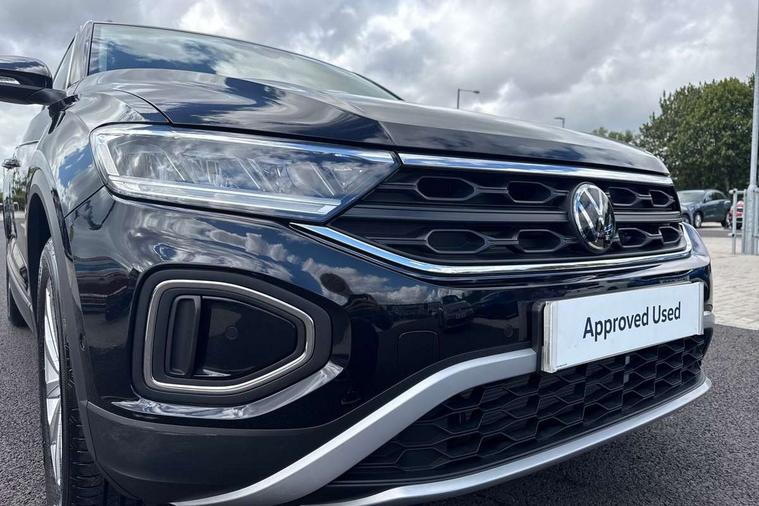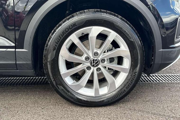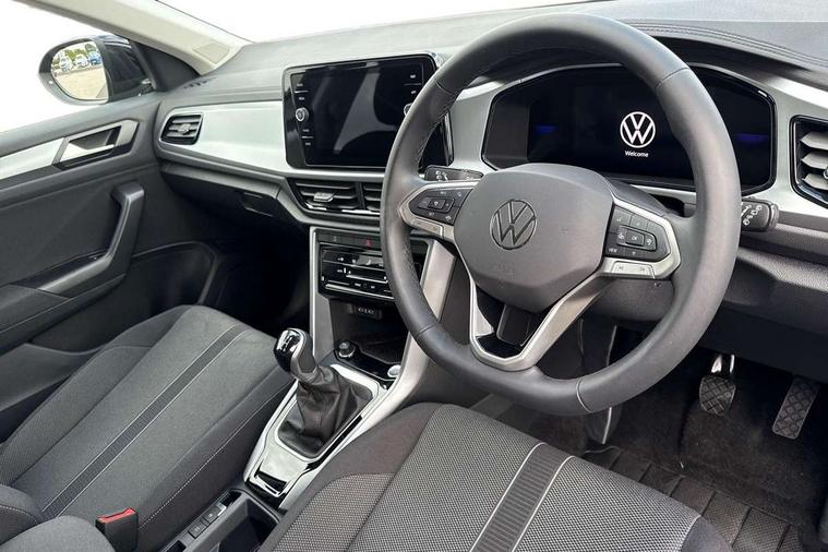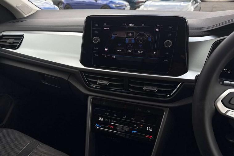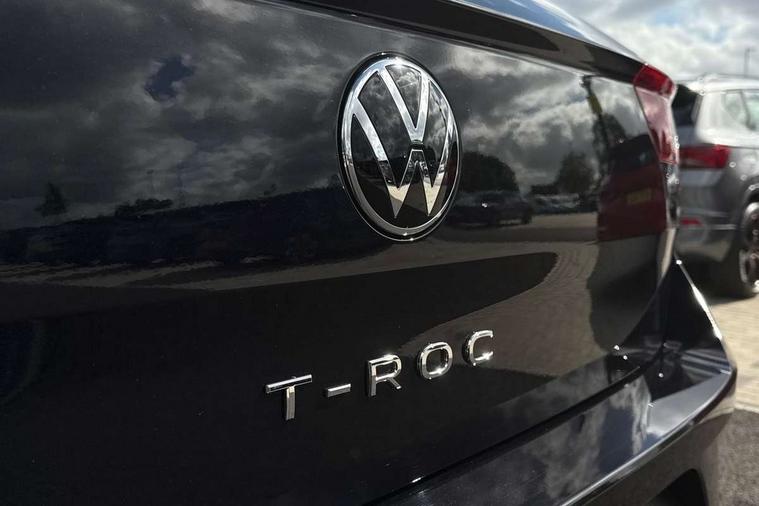 Advanced driver attention and drowsiness monitor, Dynamic road sign display, Emergency call service, Lane keeping system Lane Assist, Mobile phone interface, Modified key software - reduce switch off time for key status change to Long no motion, Online services, Park assist including front and rear parking sensors, Power assisted speed sensitive steering, Rear view camera, Service interval indicator, Tailgate/trunk lid release from outside, Think blue trainer driver tips and journey analysis, Warning sound and light for front seatbelts unfastened, Wireless app connect, Battery regeneration during braking, Front shock absorption, Rear shock absorption chassis with increased ride height, Start/stop function with battery regeneration, DAB Digital radio, Diversity antenna for FM reception, Front and rear 6 speakers, Music playback - MP3, WMA and AAC files, Premium USB cable in choice of either Apple or Android smartphone compatibility, SD card slot, Simultaneous pairing of 2 compatible mobile devices, Title and cover art display, We Connect and We Connect Plus functionality, Auto dimming interior rear view mirror, Automatic hazard lights activation under emergency braking, Automatic headlight control with LED separate daytime running lights with coming/leaving home function, Black roof rails, Body coloured bumpers and radiator grille with chrome trim and front fog lamps with chrome bezel, Body coloured exterior mirror housings and door handles, Electrically adjustable and heated door mirrors, Extended roof spoiler, Exterior mirrors aspherical on driver side, convex on front passenger side, External USB type C socket and charging sockets, Front windscreen wiper with intermittent wipe and 4 position delay, Heated rear window, LED 3rd brake light, LED rear combination lamps, LED rear number plate lights, Power windows with comfort operation and circuit breaker, Privacy glass for rear side windows and rear window, Rain sensor, Rear exhaust tailpipe, Rear fog light on one side and reversing lights on both sides, Rear side wing doors, Rear wash/wipe with intermittent wipe setting, Remote electrically foldable door mirrors, puddle lights and reverse activated passenger's door mirror, 12V power socket in centre console, 3 rear head restraints, 3 seat bench in 2nd row, 4 load lashing points in luggage compartment, Air care climatronic air conditoning system with active combination filter and 2-zone temperature control, Black stitching for floor mats, Ceramique roof liner, Cloth upholstery, Door and side trim panel in cloth, Drawer under drivers seat, Driver/front passenger seat height adjustment, Front centre armrest, Front comfort sports seats, Front cupholders x 2, Front reading light, Front seat back storage pockets, Glove compartment door with light, Instrument lighting, white adjustable panel illumination, Interior ambient lighting and surround lighting, Interior light delay, Isofix child seat preparation, Leather gearshift handle, Load-through provision with cup holder when folded down ('Unsplit rear seat bench, split folding backrest, with centre armrest), Luggage compartment lighting, Lumbar support for driver's and front passengers seat, Non-folding front passenger seat backrest, Single front passenger seat, Storage compartment in left and right luggage area, Storage compartment in rear doors, Storage compartments in driver and front passenger doors, Sunvisors with illuminated vanity mirrors, Variable boot floor, height adjustable and removable, Driver assistance pack without proactive passenger protection - T-Roc Life/Match, 3 point height adj front seatbelts + pretensioners, 3 point seatbelts in outer rear with ECE label, ABS, Child locks on rear doors, City emergency braking and pedestrian monitoring, Driver and front passenger airbag with front passenger airbag deactivation, Driver and front passenger safety-optimised head restraints, Drivers seatbelt reminder, Electronic parking brake, Electronic Stability Control (ESC) inc EDL (Electronic Differential Lock) and ASR (Traction Control), Front and rear passengers curtain airbag system including front side airbags, Front disc brakes, Hill start assist, Predictive pedestrian protection, Rear disc brakes, Two tone horn, Tyre pressure loss indicator, Volkswagen roadside assistance, Alarm with interior protection, Keyless locking and starting system keyless access with safelock, Pewter matt decorative inserts for intrument panel, centre console and door panels at the front, Trims for alloy wheels,