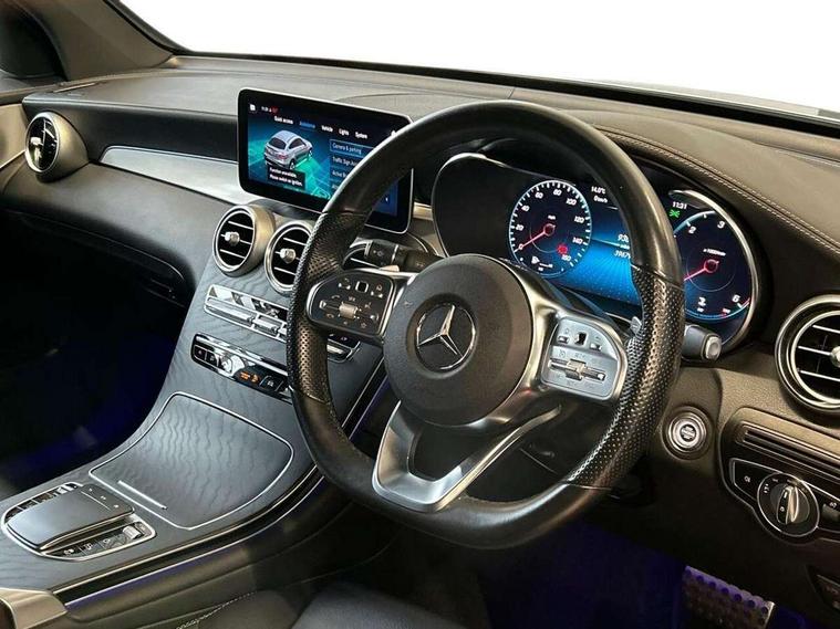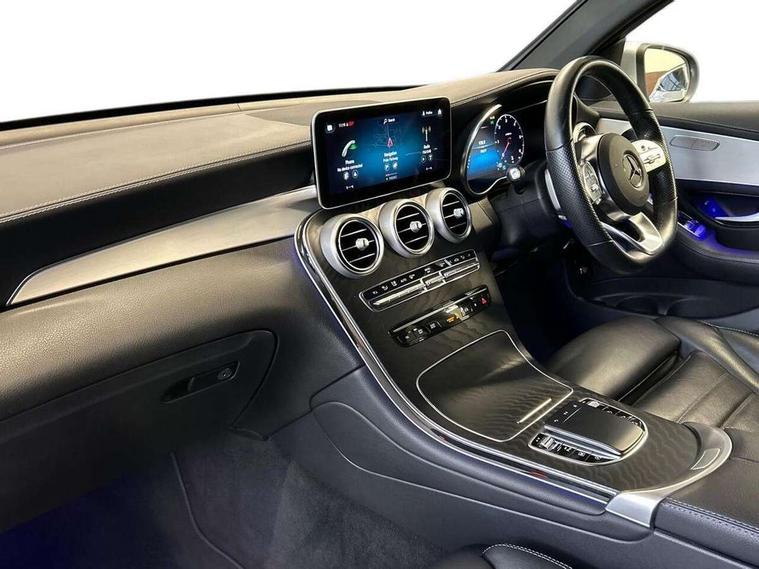 Active parking assist with parktronic system, Attention assist, Bluetooth interface for hands free telephone, Collision prevention assist plus, Cruise control with speedtronic variable speed limiter, Direct steer speed sensitive steering, DYNAMIC SELECT with a choice of driving modes (ECO, Comfort, Sport, Sport+ and Individual), Easy pack automatic powered tailgate, eCall emergency call system, ECO start/stop function, Hard disk navigation, Hey Mercedes Voice activation, Instrument cluster with12.3-inch digital instrument cluster display. High resolution instrument cluster screen with choice of three display styles, MBUX Interior assistant, Mercedes connect me with remote online services, Multi function trip computer, Outside temperature display, rear seatbelt status indicator, Remote boot release, Reversing camera, Service indicator (ASSYST), Smartphone integration with Apple CarPlay and Android auto, Traffic sign assist, 4MATIC permanent four wheel drive, 66 litre fuel tank, 9G TRONIC plus automatic transmission with steering column gear selector, DIRECT SELECT steering wheel gearshift paddles, Diesel particulate filter, Sports suspension tuned for improved handling and driving dynamics, Advanced sound system, MBUX multimedia system with DAB digital radio and touchpad, Media display 10.25-inch touchscreen display, Pre installation for Mercedes Benz Link, USB ports x 2 in centre console, Adaptive brake lights, Adaptive high beam assist, AMG bodystyling - AMG front apron with sporty air intakes and chrome trim element, AMG diffuser-look rear apron with insert in black, Body colour door mirrors, Body coloured bumpers, Electric windows one touch open/close, Electrically adjustable and heated door mirrors, Front, side and rear exterior chrome trim, Headlamp assist automatic headlamp activation, High level LED brake light, LED high performance headlamps with integrated LED daytime running lights, LED tail lamp, Motor way mode function and locator lighting, Privacy glass with dark glass from B pillar backwards, Radiator diamond grille, Rain sensor windscreen wipers, Range adjustable headlights, Rear side wing doors, Rear wiper, Roof spoiler, Running boards, Tinted glass all round with single layer safety glass, Tinted rear windows, Two chrome plated tailpipe trim elements, Variable front intermittent wipers, 2 way rear head restraints, 3 seat bench in 2nd row, 3-spoke multifunction sport AMG steering wheel in black nappa leather with flattened bottom section, chrome insert and perforated leather in grip area, 40:20:40 split folding rear seats, Ambient lighting, AMG floor mats with edging and embroidered AMG lettering, AMG sports seats, Artico man-made leather upper dashboard with contrast topstitching, Automatic child seat recognition sensor, Black roof lining, Dividing net - rear, Double cup holder in centre console, Easy-pack removable load compartment cover, Front armrest with storage box, Front door sills with Mercedes Benz lettering, Front head restraints, Front passenger seat, Front seats with electric adjust (backrest, height and seat cushion inclination) with 4 way electric lumbar support and manual cushion depth adjust, Heated front seats, Height/reach adjustable steering column, Illuminated and lockable glove compartment, Illuminated door sills, Leather upholstery, Rear top tether child seat ISOFIX attachment, Sports pedals with stainless steel surfaces and rubber studs, Steering wheel with touch control buttons, THERMOTRONIC 3 zone automatic climate control, Interior lighting pack - GLC, Mirror pack - GLC, Storage pack - GLC, 3 rear 3 point seatbelts, Active bonnet, Adaptive brake system with HOLD function and brake drying in the wet, ASR, Black seat belts, Brake calipers with Mercedes-Benz lettering + perforated brake discs, Child proof door locks, Dual-stage airbags - driver and front passenger, driver knee bag and window bags for driver, front passenger and rear passengers, Electronic parking brake, Electronic stability programme (ESP) with curve dynamic assist and cross wind assist, Front and rear seatbelt reminder, Front passenger seat occupancy sensor, Hill hold function, Tyre pressure monitoring system, Warning triangle and first aid kit, Alarm system/interior protection/immobiliser, Automatic door locking, KEYLESS-GO starting function, Remote central locking, Open pore black ash wood trim, 20" AMG multi spoke design alloy wheels painted in titanium grey with high sheen finish, Summer tyres, Tirefit tyre sealant kit,
