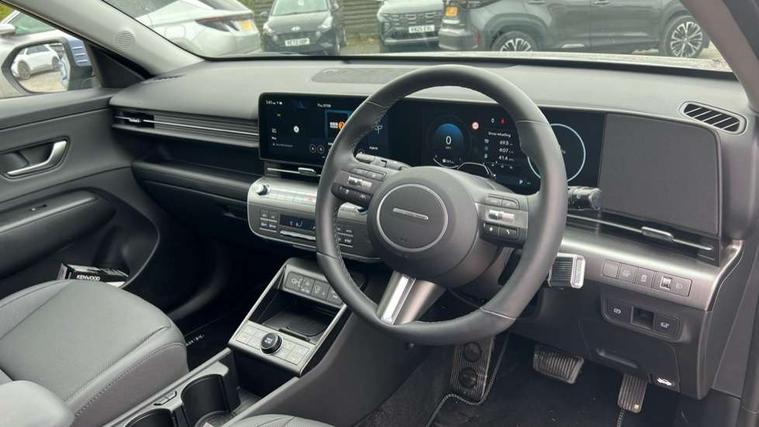 12.25" digital instrument cluster, 12.3" touchscreen centre console display satellite navigation with bluelink, live services and mapcare, Blind spot collision avoidance assist, Blind spot view monitor, Bluetooth connectivity with voice recognition, Driver status monitor (DSM), Driver supervision instrument cluster with 12.3" LCD display, eCall emergency call system, Feature on demand - Enabled, Forward collision avoidance assist (FCA 1.5) - Car, pededstrian, cycle and junction turning, Front parking sensor, HDA - Highway Drive Assist Level 1.5, Height adjustable power tailgate, Intelligent speed limit assist, Lane follow assist, Lane keep assist, Leading vehicle departure alert (LVDA), Parking Collision Avoidance Assist-Reverse (PCA-R), Parking distance warning - side, Parking system with rear camera and guidance system, PAS, Rear cross traffic collision avoidance (RCCA), Rear parking sensor, Rear view camera with dynamic guidelines, Roadside assistance, Safe exit warning (SEW), Smart cruise control with stop and go functionality, Surround view monitor, Wireless phone charging pad, Wireless Smartphone Integration includes Apple CarPlay and Android auto, 2 front USB C and 2 rear USB C charging points, Bose Premium Audio system with 7 premium speakers + subwoofer, DAB Digital radio, Steering wheel audio, phone and cruise controls, Auto dimming rear view mirror, Automatic headlights with dusk sensor, Automatic windscreen wipers with rain sensor, Black painted wheel arch inserts, Body colour exterior door handles, Body coloured door mirrors, Door mirror LED indicator lights, Electric front windows with anti-trap mechanism and one touch control, Electric rear windows, Electric sunroof, Electrically adjustable and heated door mirrors, Horizon centre LED DRL, LED projector headlights, LED taillights, LED upper and lower rear lights, Power folding door mirrors, Privacy glass - Rear windows and tailgate, Rain sensor, Rear roof spoiler with integrated LED brake light, Rear side wing doors, Rear skid plate - silver, Rear wiper, Roof rails, Solar glass with front door glass and windscreen, Tinted glass in front and rear doors, Windscreen auto defog function, 12V power outlet in front console, 2 zone climate control, 3 seat bench in 2nd row, 40/20/40 split folding rear seat, Adjustable head restraints, Ambient lighting, Driver and passenger front seat pockets, Driver's seat electric adjustments, Driver's seat lumbar support, Driver/passenger sunvisors and illuminated vanity mirrors, Floor mats, Front passenger's seat electric adjustments, Heated front seats, Heated rear seats, Heated steering wheel, Height/reach adjustable steering column, Leather steering wheel, Leather upholstery, LED centre interior light, LED front interior light, Luggage compartment LED lighting, Luggage net, Luggage shelf, Metal paint effect interior door handles, Rear centre armrest with cupholders, Shift by wire SBW, Single front passenger seat, Ventilated front seats, Vertical adjustment rear head restraints, Trailer wiring package - Kona, Airbag - front, front side, curtain and centre front airbag, Anti-lock brake system (ABS), Childproof rear door locks, Downhill brake control, Electric parking brake, Electronic stability control, Fixed 3 point for second row centre passenger seatbelt, Hill start assist control (HAC), Rear seat alert, Tyre pressure monitoring system, Alarm/immobiliser, Rear occupant alert, Remote central locking, Smart key with keyless entry and start/stop button, Five year annual vehicle health checks, 18" Alloy wheels, Temporary mobility kit (TMK),