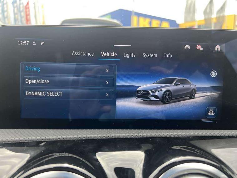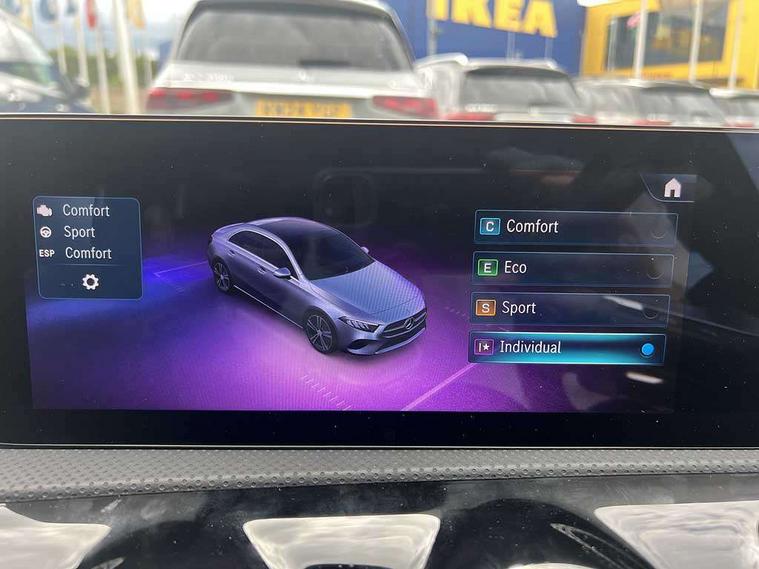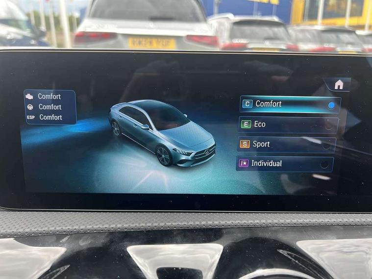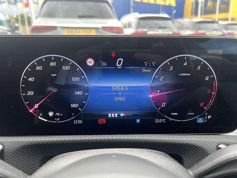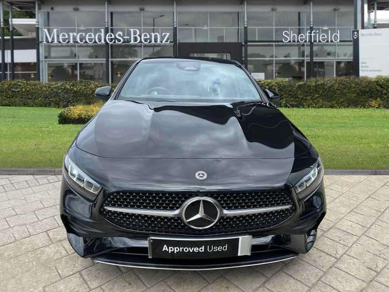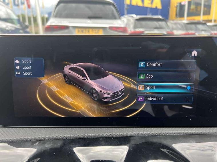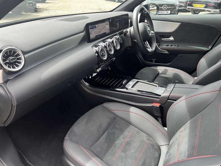 10.25 inch touchscreen central media display, 10.25" Digital instrument cluster display screen, Attention assist, Blind spot assist, Brake pad wear indicator warning light, Car wash mode, Cruise control + speed limiter, Direct steering, Direction indicators with lane change function, Dual bluetooth interfaces, DYNAMIC SELECT with a choice of driving modes (ECO, Comfort, Sport and Individual), ECO start/stop function, Engine start/stop button, Fingerprint scanner, Fluid level warning indicator for fuel, oil, coolant and washer fluid, Fluorescent jacket for driver, Hard-disk navigation, Hey Mercedes Voice activation, Lamp failure indicator, Lane keeping system, Mercedes me connect including emergency call system, accident recovery, breakdown and maintenance management, Mercedes me remote services, Outside temperature gauge, Owners manual in English, Pre-installation of private car share, Preinstallation for Mercedes Benz link, Remote boot closing, Service indicator (ASSYST), Smartphone integration with Apple CarPlay and Android auto, Speed limit assist, Speed sensitive power steering, Trip computer in multifunction display with current consumption indicator, Wireless charging, Lowered comfort suspension, DAB Digital radio, MBUX multimedia system, Mercedes Benz sound system (100 W) with 6 speakers, 4 Electric Front and Rear windows, Adaptive brake lights, AMG body styling - AMG front apron with front splitter and AMG rear apron and visible exhaust tailpipe trim elements, Body colour bumpers, Body colour door handles with chrome inserts, Body colour side skirt, Body coloured door mirrors, Chrome beltline strips, Diamond radiator grille with pins in fine star pattern, Electric adjustable and heated door mirrors with integrated LED side indicators, Exhaust system with 2 visible tailpipe trim elements and rear apron, Headlamp assist automatic headlamp activation, Heat insulating dark tinted rear and rear side windows, Heated glass rear windscreen + timer control, LED High Performance headlamps including integral LED daytime running lamps and adaptive highbeam assist, LED tail lamp, Privacy glass, Radio aerial, Rain sensing windscreen wipers with two sensitivity settings, Rear boot, Rear fog lights, Rear side wing doors, Third brake light featuring LED technology, Window line trim strip in chrome, 3 seat bench in 2nd row, 3 Spoke flat bottom leather multi function steering wheel with perforated leather in grip area, 4 way lumbar support, 40:20:40 split folding rear seats, Air conditioning - One zone thermatic automatic climate control with automatically controlled air distribution, AMG floor mats, Automatic child seat recognition sensor, Black air vents with surround in silver chrome, Black roof lining, Brushed stainless steel sports pedals with rubber studs, Front centre armrest with stowage, Front door sills with Mercedes Benz lettering, Front seat backs luggage nets, Galvanished gear shift paddles on steering wheel, Heated front seats, Height/reach adjustable steering column, Interior lighting - 64 colour Ambient lighting, Interior mirror with reading lamps in black and frameless, Rear armrest with 2 cupholders, Seat occupancy sensor for front passenger seat, Single front passenger seat, Sports seats with adjustable head restraints, Stowage compartment in centre console with retractable cover, Sunvisors with illuminated vanity mirrors, Twin front cupholders, Keyless go comfort pack - A Class, Light and sight package - A Class, Mirror package - A Class, Parking pack with 180 degree view - A Class, Seat comfort pack - A Class, USB pack plus - A Class, 3 rear 3 point seatbelts, ABS with Brake Assist, Active bonnet, Active brake assist includes forward collision warning system with autonomous braking, Adaptive brake assist with hold function and hill start assist, Black seatbelts, Bonnet with power domes, Childproof locks manually operated for rear doors and electrically operated for rear power windows, Crash responsive emergency lighting, Driver and passenger head and side airbags, Drivers knee airbag, Dual stage driver/passenger airbags, Electronic parking brake, ESP curve dynamic assist, ESP with ASR, Front and rear seatbelt reminder, ISOFIX and top tether child seat fixing points in two outer rear seats, Tyre pressure monitoring system, Warning triangle and first aid kit, Window airbags, Alarm system/interior protection/immobiliser, Guard 360 degree vehicle protection, Remote central locking and crash sensor with emergency opening function, Light longitudinal grain aluminium trim, 18" AMG 5 twin spoke light alloy wheels, aerodynamically optimised, painted in black with high sheen finish, Summer tyres, Tirefit sealant kit,