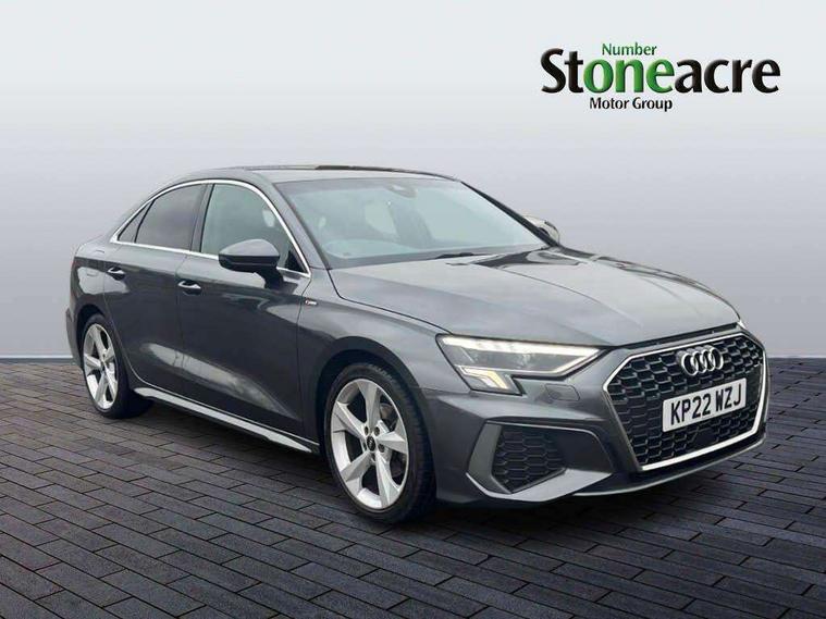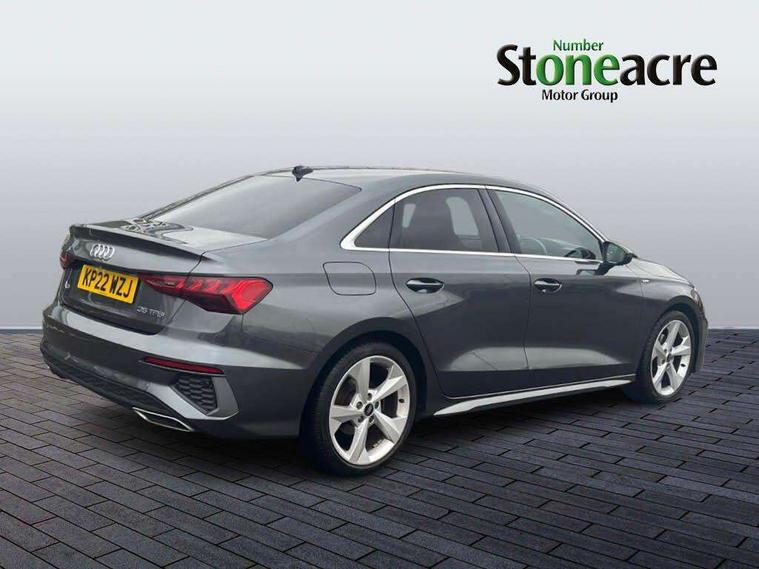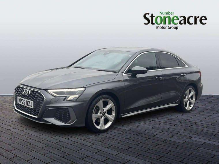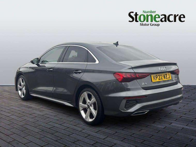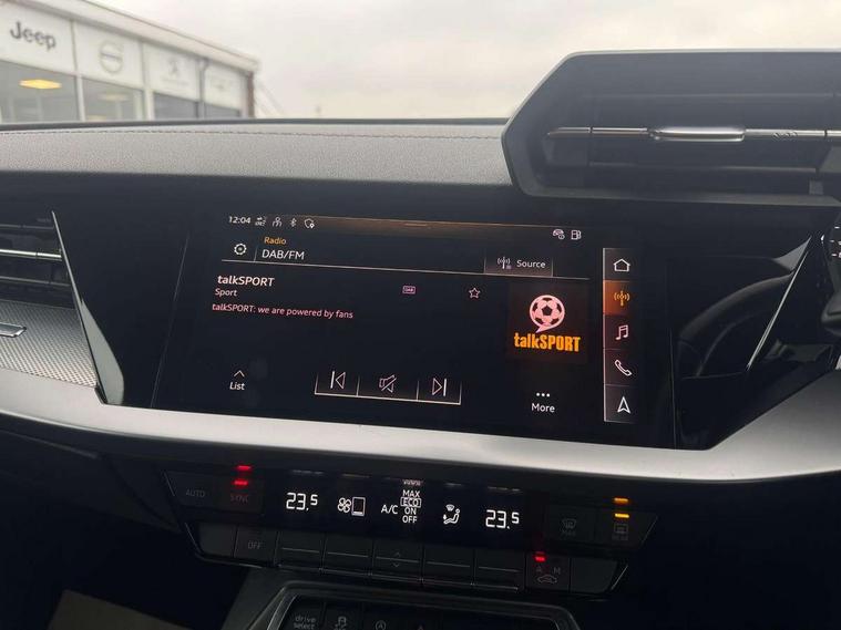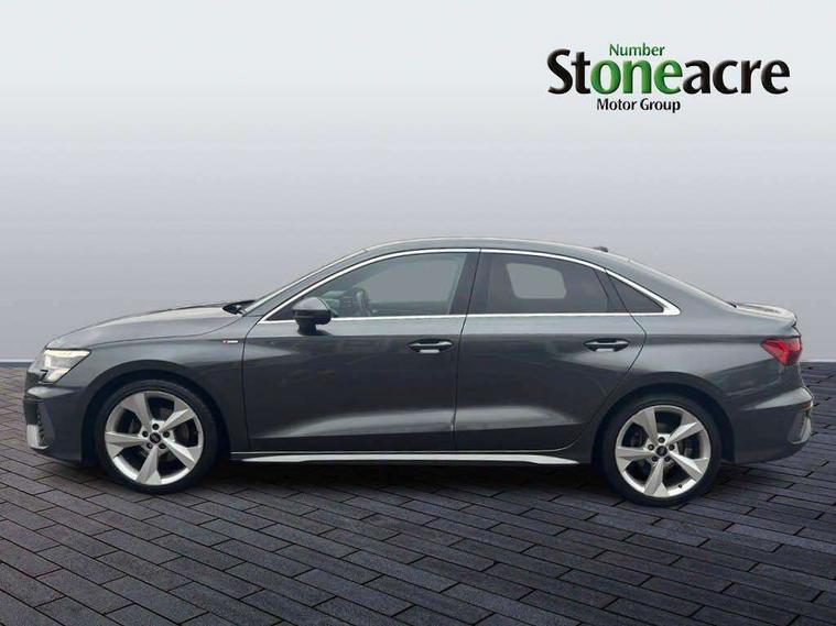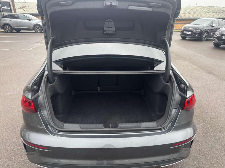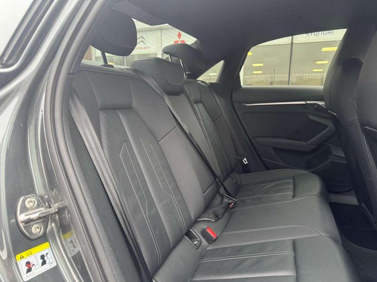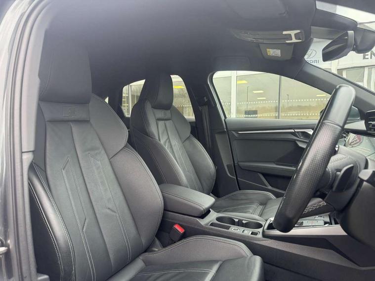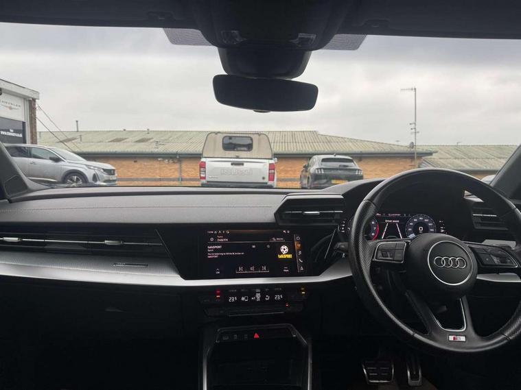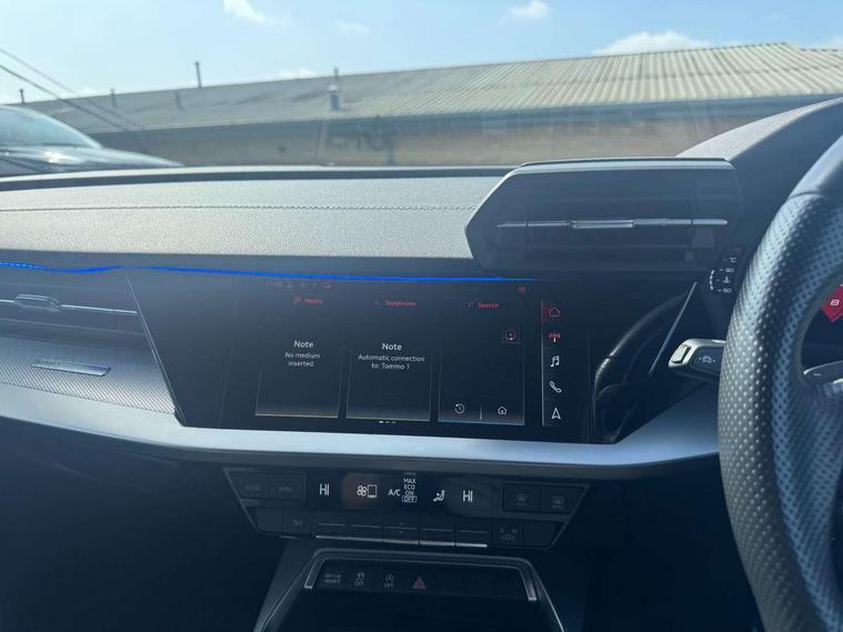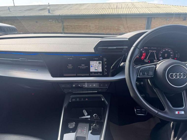 Audi connect emergency call and service, Audi drive select (Auto, Comfort, Dynamic, Efficiency and Individual), Audi smartphone interface, Audi Virtual Cockpit - 10.25" digital and colour instrument cluster, Automatic start/stop system with recuperation, Bluetooth interface, Collision avoidance assistant, Electromechanical power speed sensitive steering, Lane departure warning system, MMI Navigation Plus with high resolution 10.1" colour touch screen display, Service indicator, Voice control system with natural language interaction, 2x USB Type C ports (for charging and data transfer), 6 passive loudspeakers, CD player, DAB Digital radio, 3rd brake light, Acoustic glass windscreen, Aluminium window trim, Auto dimming frameless rear view mirror, Electrically adjustable/heated/folding/dimming door mirrors with kerb view includes integrated LED indications + kerb view function for passenger side, Front electric windows, Illuminated door sills with aluminium inserts at the front with S logo, LED daytime running lights, LED headlights with LED rear lights and dynamic rear indicators, Light and rain sensors, Model and engine designation badges at rear, Privacy glass - dark tinted rear window, rear door and side windows, Rear boot, Rear electric windows, Rear side wing doors, S line bumpers, S roof spoiler, 12V socket and storage compartment in front centre console, 3 seat bench in 2nd row, 40/20/40 split folding rear seat bench with cupholder, Black cloth headlining, Dual zone electronic climate control, Front and rear centre armrest in leather, Front and rear headrests, Front/rear floor mats, Height and reach adjustable steering wheel, Illuminated vanity mirror, Interior lighting - glove compartment light and right hand side, Luggage compartment floor covering, Manual boot compartment lid, Manually adjustable front sport seats, Seat side bolsters, Single front passenger seat, Stainless steel pedals and front footrest in black, Twin leather upholstery with front sports seats S embossed logo, Aluminium interior elements pack - A3 Saloon, S line styling pack - A3 Saloon, 3x3 point rear seat belts, Driver and front passenger airbag with passenger airbag deactivation, Electronic Stabilisation Control (ESC) including ABS, ASR and EDL, First aid kit with warning triangle and 2 safety vests, Front side airbags with head airbags and interaction airbag, Hill hold assist, Pre-sense front with pedestrian and cyclist detection, Seatbelt monitoring, Tyre pressure loss indicator, Anti theft alarm, Anti-theft wheel bolts, Immobiliser, Manual child locks, Remote control central locking, Aluminium air vent surrounds, Aluminium trim elements, Dark spectrum aluminium inlays, accent surfaces in the dashboard and centre console in platinum grey silk effect paint finish,