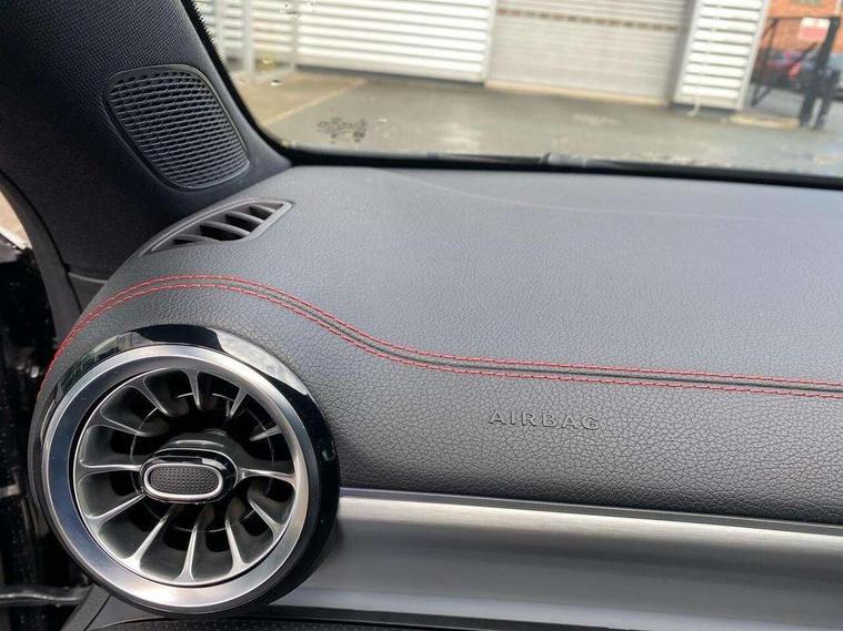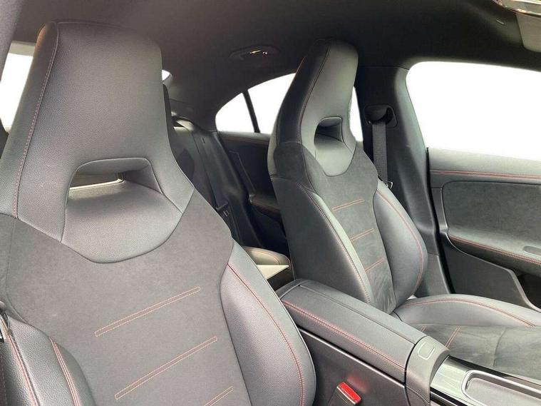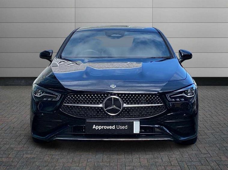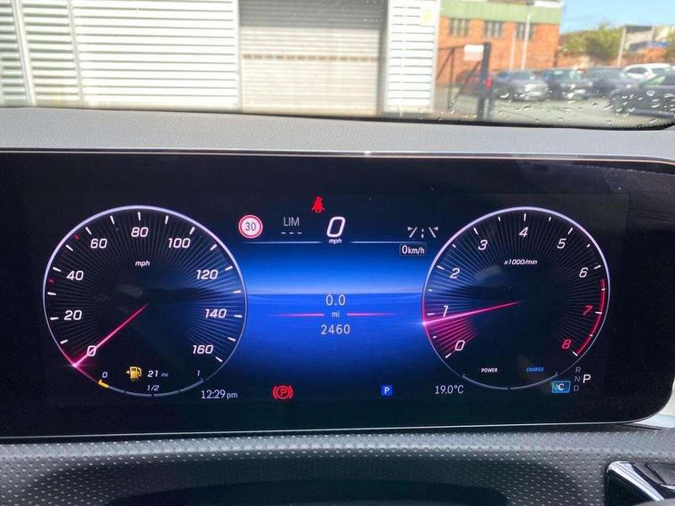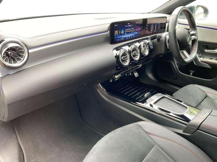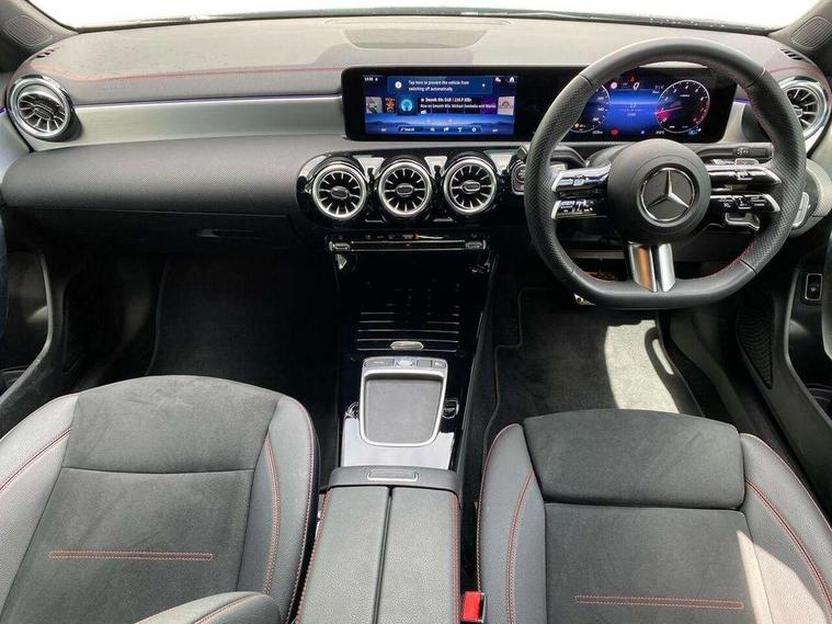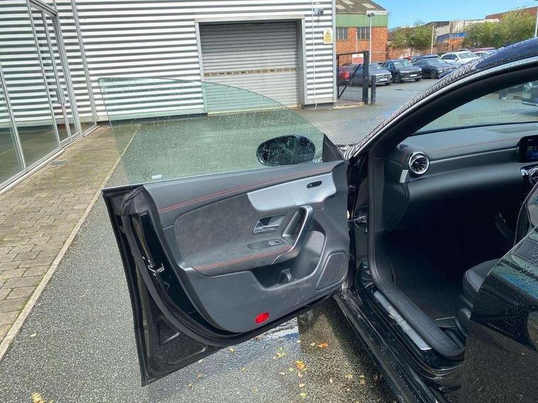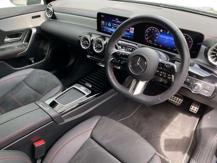 10.25 inch Instrument display with digital cockpit, 10.25 inch touchscreen central media display, Active lane keeping assist, Attention assist - Monitors steering behaviour and long journey fatigue, Bluetooth connection, Car wash mode, Cruise control with limiter, Direct steer system, DYNAMIC SELECT with a choice of driving modes (ECO, Comfort, Sport and Individual), ECO start/stop function, Fluid level warning indicator for fuel, oil, coolant and washer fluid, Hard-disk navigation, Hey Mercedes Voice activation, Lamp failure indicator, Mercedes me connect including emergency call system, accident recovery, breakdown and maintenance management, Mercedes me remote services, Outside temperature gauge, Owners manual in English, Pre-installation of private car share, Radio aerial integrated into front and rear windshields, Service indicator (ASSYST), Smartphone integration with Apple CarPlay and Android auto, Speed limit assist, Trip computer in multifunction display with current consumption indicator, Wireless charging in the front centre console, Comfort suspension with ride height lowering, Rear axle multi-link, DAB digital radio tuner, MBUX multimedia system, Mercedes Benz sound system (100 W) with 6 speakers, Pre installation for Mercedes Benz Link, Adaptive brake lights, AMG body styling with AMG front apron and rear apron and visible exhaust tailpipe in chrome trim elements, Body colour door handles, Chrome beltline strips, Electric windows, Electrically adjustable and heated door mirrors with integrated LED indicators, Exhaust system with 2 Visible tailpipe trim elements and rear apron with trim in chrome, Hand free access, Headlamp assist automatic headlamp activation, Heated glass rear windscreen + timer control, High level LED third brake light, Interior mirror with black reading lamps and frameless, LED high performance headlamps with integrated LED daytime running lights and adaptive highbeam assist, LED tail lamp, Privacy glass with dark tinting on rear side windows and rear window, Radiator grille with Mercedes-Benz pattern in chrome with central Mercedes star and single louvre with chrome inserts, Rain sensing windscreen wipers with two sensitivity settings, Rear boot, Rear fog lamp, Rear side wing doors, Variable front intermittent wipers, Window line trim strip in high gloss aluminium, 3 seat bench in 2nd row, 3 twin spoke flattened multifunction steering wheel in nappa leather - horizontal twin spoke in high gloss black, vertical twin spoke in silver chrome, 4 way lumbar support, 40:20:40 split folding rear seat backrests, Air conditioning - One zone thermatic automatic climate control with automatically controlled air distribution, Air vents with surround in silver chrome, Artico man-made leather/Microcut microfibre upholstery, Automatic child seat recognition sensor, Black roof lining, Brushed stainless steel sports pedals with rubber studs, Floor mats with stitched AMG lettering, Fluorescent jacket, Front centre armrest with stowage, Galvanished gear shift paddles in silver chrome, Heated front seats, Interior lighting - 64 colour Ambient lighting, Luggage net on driver/front passenger seat backrest, Manually height and reach adjustable steering column, Rear head restraints, Single front passenger seat, Sport seats with fixed head restraints, Stowage compartment in centre console with retractable cover, Sunvisors with illuminated vanity mirrors, Twin front cupholders, Two outer rear seat isofix and top tether child seat fixing points, Keyless go comfort pack - CLA, Light and sight pack - CLA, Mirror pack - CLA, Parking pack with reversing camera - CLA, Seat comfort pack - CLA, USB package plus - CLA, Active bonnet pedestrain safety measure which detects an impact and raises bonnet by 65mm, Active brake assist includes forward collision warning system with autonomous braking, Adaptive brake assist with hold function and hill start assist, Anti lock braking system (ABS) with brake assist, Black seat belts, Bonnet with power domes, Brake calipers with Mercedes-Benz lettering, Brake pad wear warning indicator, Childproof locks manually operated for rear doors and electrically operated for rear power windows, Crash responsive emergency lighting, Driver and front passenger head and sidebags, Driver and front passenger windowbags, Drivers knee airbag, Dual stage driver and front passenger airbags, Electric parking brake, Electronic stability programme with acceleration skid control, ESP curve dynamic assist, Front and rear seatbelt reminder, Front passenger seat occupancy sensor, Perforated front brake discs, Sports braking system, Three point rear seat belts, Tyre pressure monitoring system, Warning triangle and first aid kit, Alarm system with immobiliser and interior protection -Thatcham category 1, Guard 360 deg vehicle protection - tow away protection with visual, acoustic warning, interior monitoring, preinstallation for parking damage, Remote central locking and crash sensor with emergency opening function, Light aluminium with longitudinal grain interior trim, 18" AMG 5 twin spoke light alloy wheels painted in termolite grey with high sheen finish, Summer tyres, Tirefit tyre sealant kit,