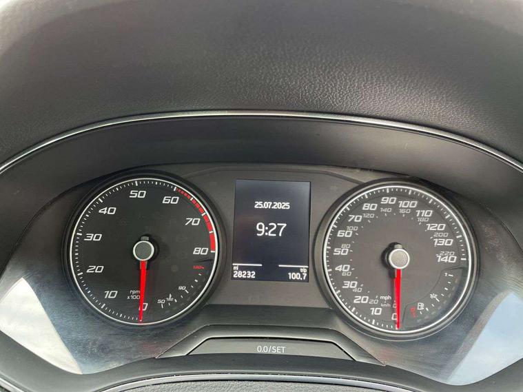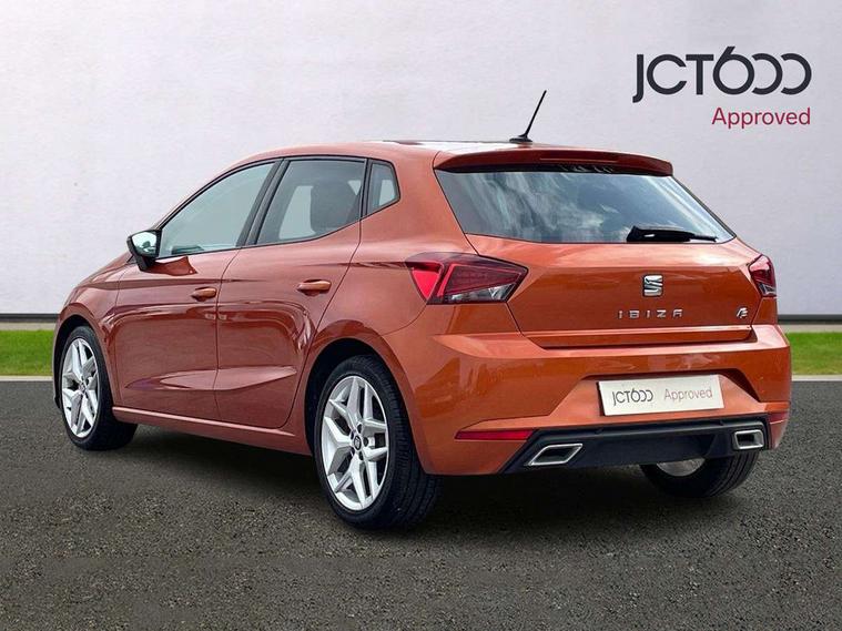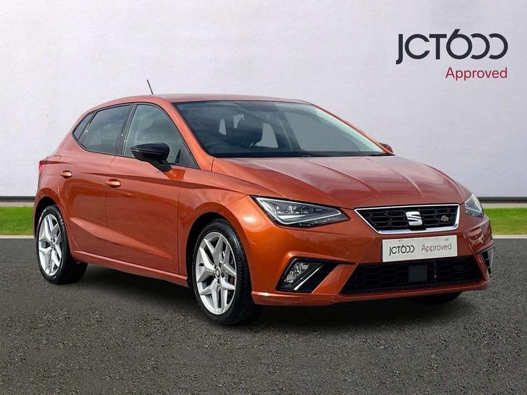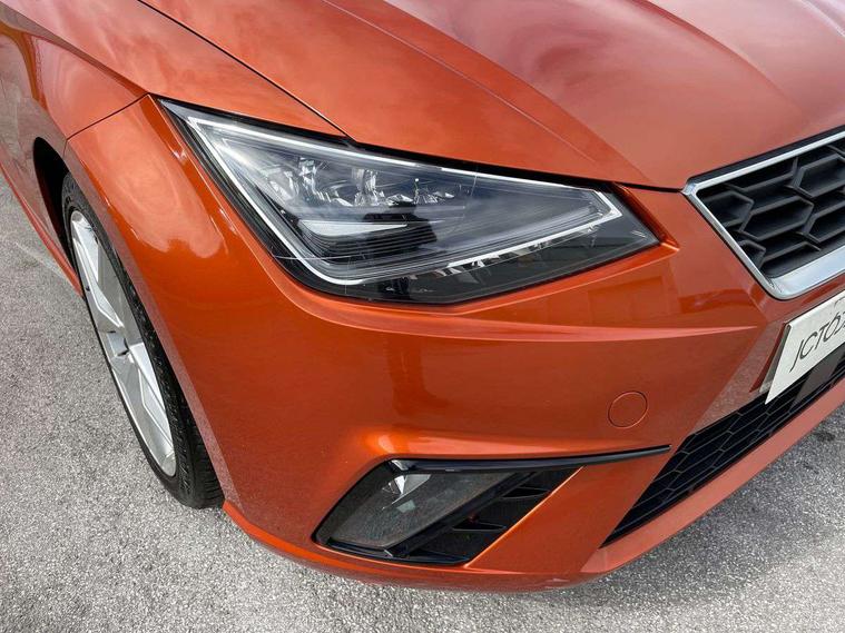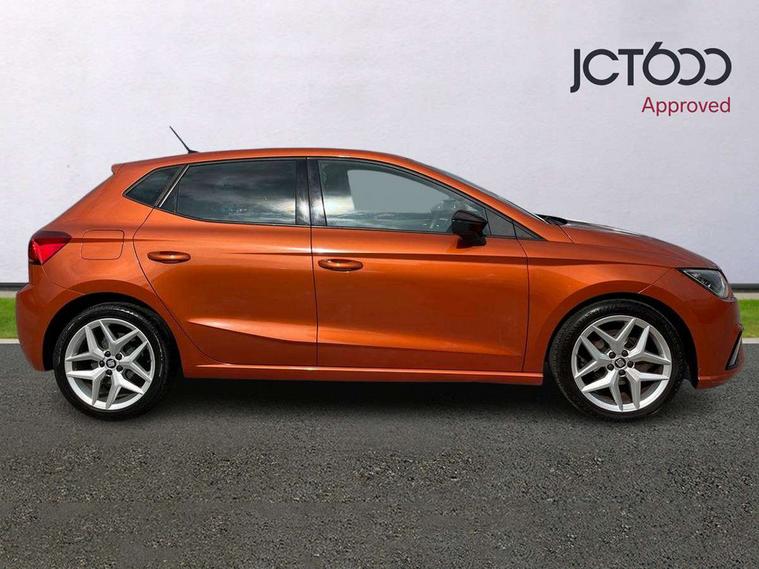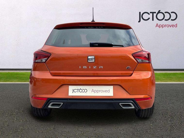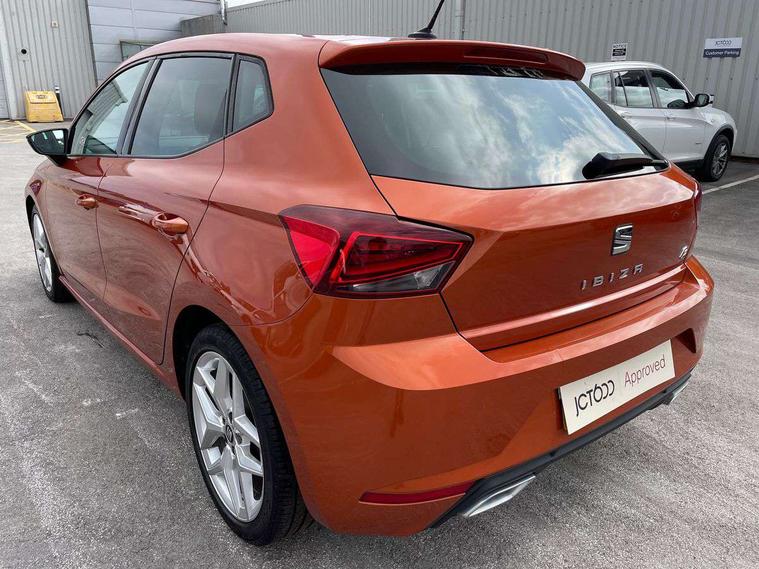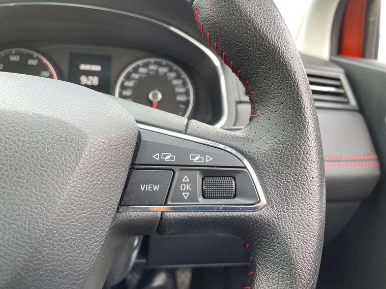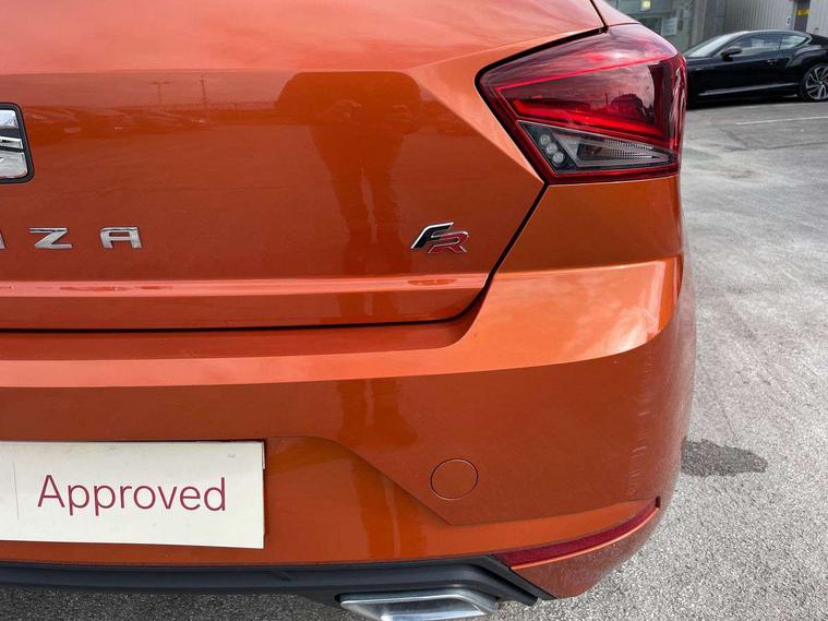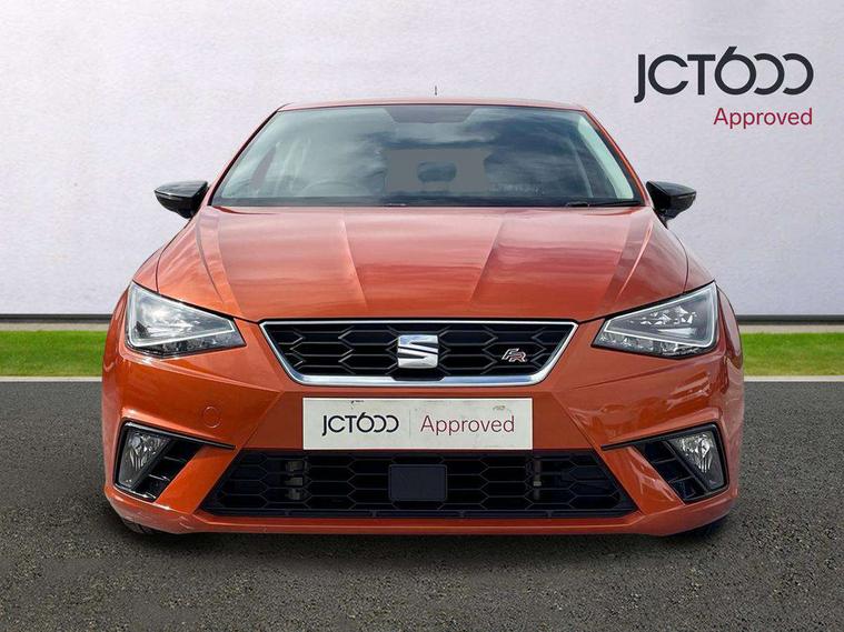 'Lights On' Reminder warning buzzer, Bluetooth Handsfree Phone Connection, Cruise control, Digital clock, Full Link Smartphone Integration with Mirror Link, Apple Car Play, Google Android Auto, Low fuel warning light, Outside temperature gauge, Satellite navigation system with 3D mapping, 8" touch screen, voice control and additional USB port, SEAT Drive profile, SEAT logo boot release, Speed sensitive power steering, Trip computer, Sports suspension, 6 speakers, Auxiliary input socket, CD player, Digital Audio Broadcast (DAB) Tuner, Radio/MP3 player, SD card slot, SEAT USB media cable, Steering wheel mounted controls, USB port, Anti theft roof antenna, Auto dimming rear view mirror, Automatic headlights, Automatic rain sensing wipers, Body colour bumpers, Body colour door handles, Brilliant black door mirrors, Chrome front grille frame, Chrome grille, Coming/leaving home lighting function, Cornering front fog lights, Dark tinted rear windows, Electric folding door mirrors, Electric front windows, Electric headlight adjustment, Electrically adjustable and heated door mirrors, Exclusive FR rear bumper, Full LED headlights, LED daytime running lights, LED tail lights, Rear fog lights, Twin exhaust pipes, 3 rear headrests, 60/40 split folding rear seat, Air conditioning, Door and steering wheel ice metal decorative inserts, Driver's sunvisor with ticket holder/vanity mirror, Dust/pollen filter, Flat bottomed perforated leather steering wheel with red stitching and FR logo, Front courtesy lights, Front cupholders x 2, Front reading lights, Gear shift indicator, Glovebox, Height adjustable driver's seat, Height adjustable front/rear head restraints, Height adjustable passenger seat, Height/reach adjust steering wheel, Illuminated boot, Instrument lighting with brightness control, Leather handbrake, Leather steering wheel and gear knob, Multi-colour ambient interior lighting, Nora cloth upholstery, Passenger sunvisor, Rear top tether child seat ISOFIX attachment, Sports seats, Full LED headlight pack - Ibiza, 3 point seatbelts on all 3 rear seats, ABS, Active front headrests, Child locks on rear doors, Curtain airbags, Driver/Front Passenger airbags, ESP+EBA, Front assist (AEB), Front passenger airbag deactivation, Front side airbags, Hill hold control, Multi-Collision braking, Seatbelt warning, Tiredness recognition system, Tyre pressure monitoring system, 2 folding remote keys with window open/close function, Electronic engine immobiliser, Locking wheel bolts, Remote central locking + deadlocks, Volumetric alarm with back up horn, Black dash trim, Leather dashboard, 17" Dynamic alloy wheels,