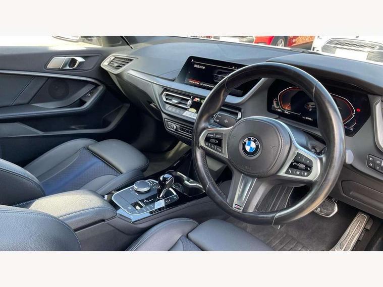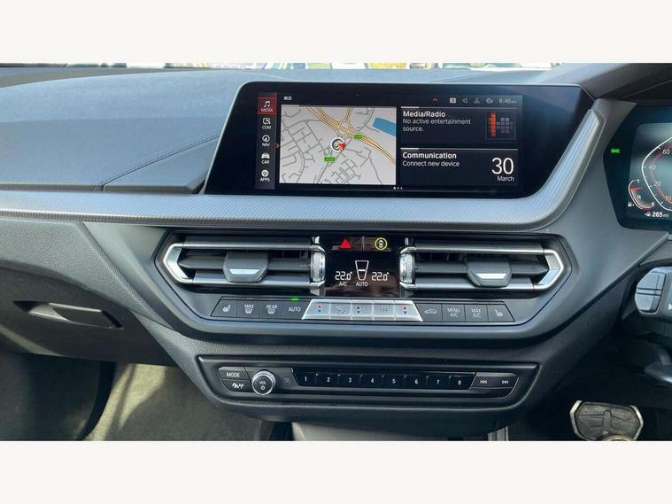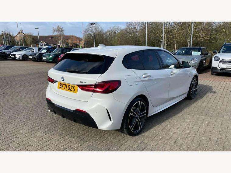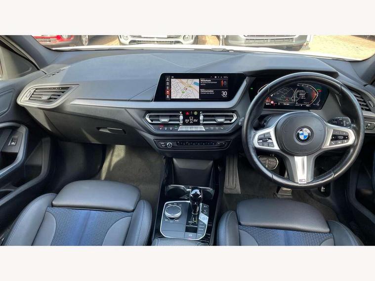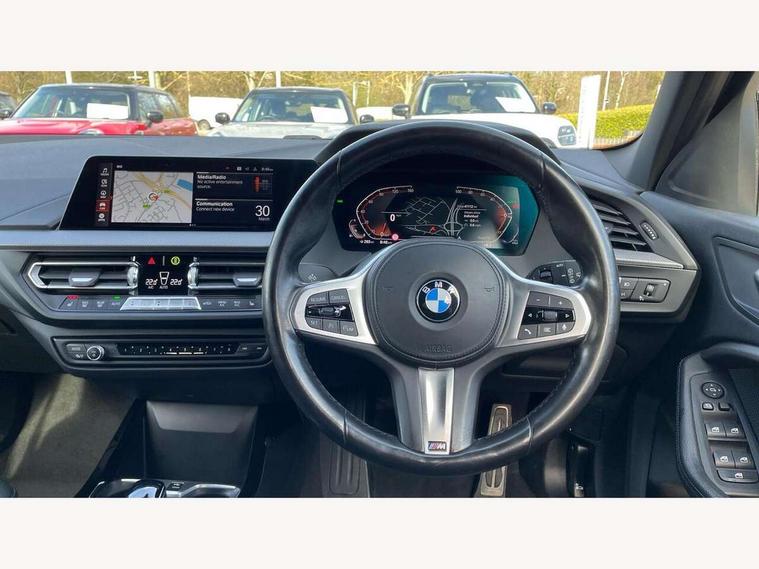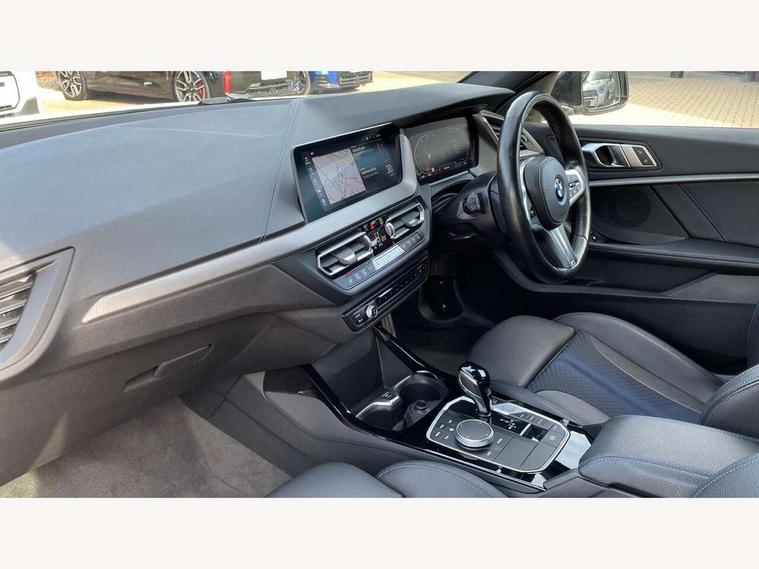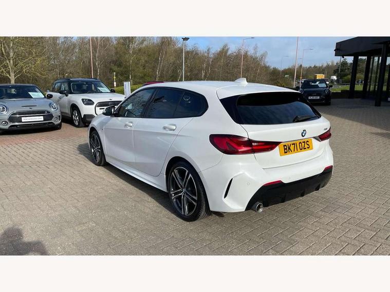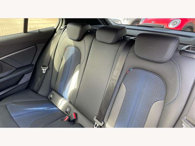 Active guard plus, Attentiveness assist, BMW Online services, BMW Teleservices, Check Control warning system for monitoring of lights and door/luggage compartment open warning, Connected eDrive Services, Eco pro mode, Integrated owners handbook, Oil sensor for level and grade, On board computer, Optimum shift indicator, Personal Profile, Pull away assistant, Speed limiter, Aluminium lightweight construction, Anti roll bar front and rear, Balancer shaft, Double VANOS, Drive Performance Control, Electronic differential lock, High precision injection, M sport suspension, Petrol Particulate Filter, VALVETRONIC engine management, Bluetooth audio streaming, DAB Digital radio, Auto dimming rear view mirror, Automatic headlight beam throw control, Automatic windscreen wipers and automatic headlight, Body colour door handles, Body colour mirror caps, Chrome 'M' logo side designation, Chrome exhaust tailpipe in single, round (Exhaust tailpipe, stainless steel - single, round), Chrome kidney grille frame with Satin Aluminium struts, Direction indicator side lights in exterior mirrors, Electric folding and anti dazzle exterior mirrors, Fading support, Follow me home headlights, Front and rear bumper system with replaceable deformation elements, Front and rear electric windows with open and close fingertip control, anti trap facility and comfort closing, Front door sill finishers in black plastic with M designation in metallic look, Green tinted heat protection glazing, Heated, electrically adjustable exterior mirror aspheric on driver side, convex on passenger side, High gloss shadowline window frame, Recess cover mirror frames and B/C pillar embelisher trim, High level third brake light, LED daytime running lights, LED eyebrow turn indicators, LED front fog lights, Lightweight engineering, Matt black air guide grilles, Model designation on right side of tailgate, Nearside reverse light in rear light cluster, Preparation for high beam assistant, Rain sensor including auto headlights activation, Rear fog lights, Rear window wiper, Shark fin antenna, Visible VIN plate, Welcome lighting, 12V power socket in centre console, 3 rear seat head restraints, 3 spoke M sports design leather steering wheel finished in nappa leather with specific M badge, Anthracite headlining, Anthracite Velour floor mats, Child seat ISOFIX attachment for two outer rear seats and front passenger seat with anchorage points, Conditioned based service, Dakota leather upholstery with perforation and contrast stitching, Driver and front passenger seat heating, Folding rear clothes hook, Four grab handles integrated in roof lining, Front and rear door pockets, Front and rear door pockets with bottle holders, Front and rear side armrest integrated into door trim, Front armrest foldable with integrated storage compartment, Front sports seats with electric side bolster adjustment, Glove compartment, Height adjustable front head restraints, Manual adjust steering wheel, Multi-function controls for steering wheel, Storage compartment in centre console, Sun visors with vanity mirrors and insert tab, Two zone automatic air conditioning, Additional interior lighting pack - 1 Series, Connected pack professional - 1 Series, Extended storage pack - 1 Series, Interior lights pack - 1 Series, Luggage compartment pack - 1 Series, M Sport exterior styling aerodynamics pack - 1 Series, 2 tone horn, 3 point seatbelts on all seats, front pyrotechnic belt tensioners, stopper and belt force limiters, rear coded belt buckles, Airbags - front driver/passenger, front & rear curtain, front side, Anti lock braking system (ABS) with brake assist, BMW emergency call, Brake drying, Braking readiness, Crash sensor activating central locking release, hazard warning lights, fuel cut off, interior lighting + activation of safety battery terminal clamp, Driver and front passenger seat belt security check, Dynamic stability control + (DSC+), Dynamic Traction Control - DTC, Electrically operated hand brake, Front and rear disc brakes, Front passenger manual airbag deactivation, Seatbelt warning, Side impact protection, Tyre pressure monitoring system, Warning triangle and first aid kit, Automatic drive away locking facility, Central locking switch for all doors, fuel filler cap and luggage compartment, Deadlocking function system to all doors, Locking wheel bolts, Remote control with integrated key with High-gloss Black inlay and M designation and 1 button for open/ close lock, window, open luggage compartment, Start/stop button with comfort go keyless engine start and auto start stop deactivation button, Thatcham Cat.1 alarm and immobiliser, Contrast stitching on instrument panel, Reduced rolling resistance tyres,