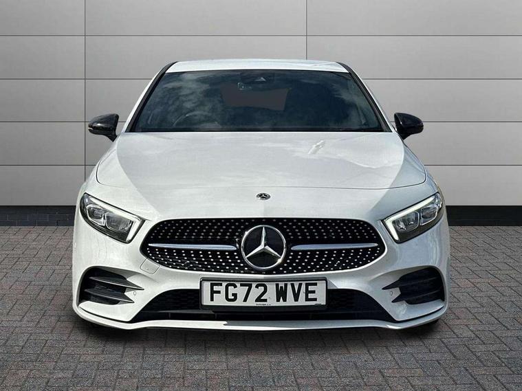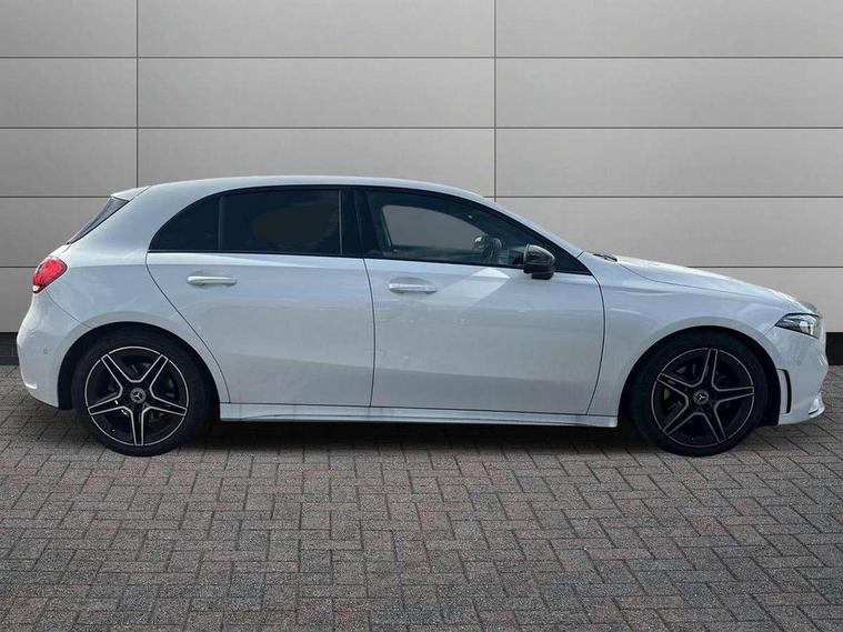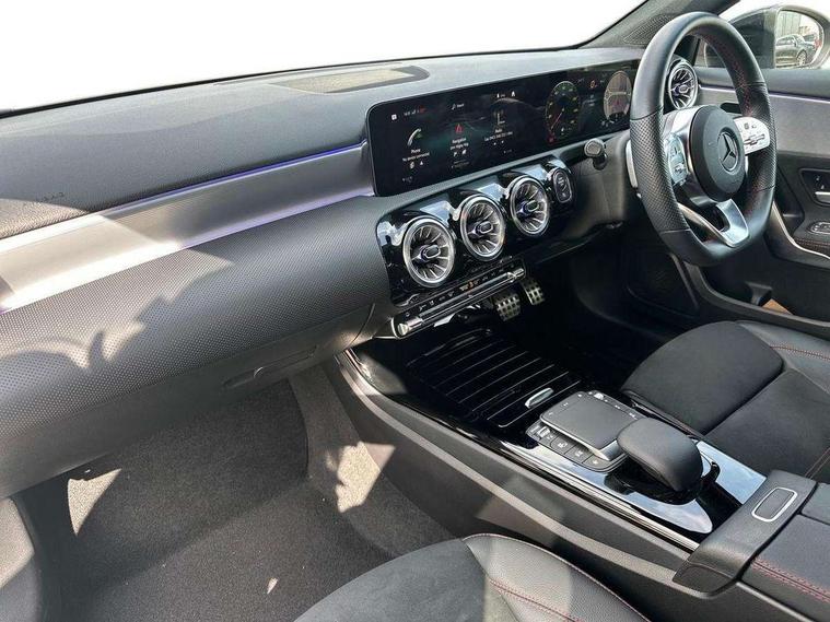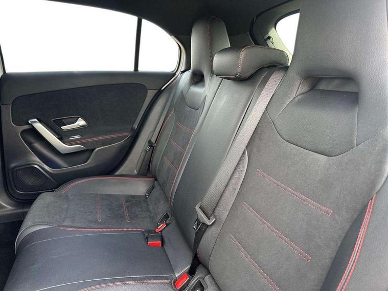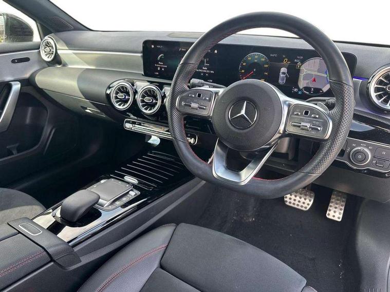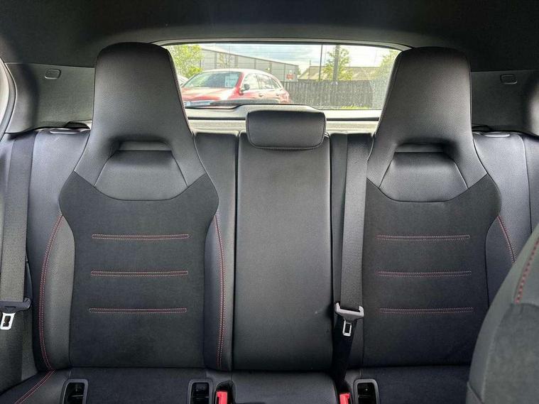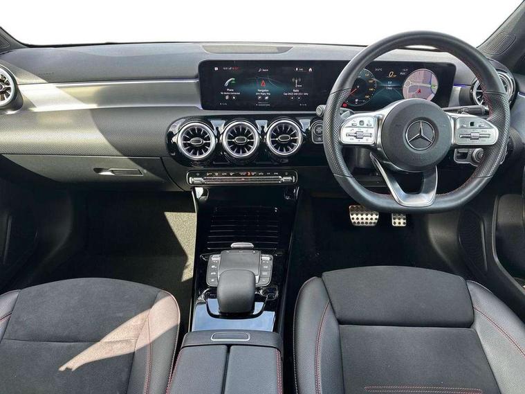 10.25" Digital instrument cluster display screen, 10.25" media display, 180 degree rear view camera with parking guidelines, Active parking assist with visual and audible warning of detected obstacles, Attention assist, Brake pad wear indicator warning light, Car wash mode, Cruise control + speed limiter, Direct steering, Dual bluetooth interfaces, DYNAMIC SELECT with a choice of driving modes (ECO, Comfort, Sport and Individual), ECO start/stop function, Fluid level warning indicator for fuel, oil, coolant and washer fluid, Hard-disk navigation, Hey Mercedes Voice activation, Lamp failure indicator, Lane keeping system, Mercedes me connect including emergency call system, accident recovery, breakdown and maintenance management, Mercedes me remote services, Outside temperature gauge, Owners manual in English, Pre-installation for private car sharing, Preinstallation for Mercedes Benz link, Service indicator (ASSYST), Smartphone integration with Apple CarPlay and Android auto, Speed limit assist, Speed sensitive power steering, Trip computer, Ultrasonic sensors positioned in the front and rear bumpers, Lowered comfort suspension, Rear axle torsion beam, 2 USB ports (type C) in rear stowage compartment and one in front of center console, 6 speakers, DAB Digital radio, MBUX multimedia system with DAB digital radio and touchpad including satellite navigation, Mercedes-Benz sound system - 100W, 4 Electric Front and Rear windows, Adaptive brake lights, AMG bodystyling - Front apron with splitter in chrome, rear apron with chrome trim and chrome visible trim elements in tailpipe, Automatic headlights, Black weather strip, Body colour bumpers, Body colour door handles with chrome inserts, Body colour side skirt, Electric adjustable and heated door mirrors with integrated LED side indicators, Exclusive diamond radiator grille, Exhaust system - Twin visible tailpipes in polished stainless steel, Headlamp assist automatic headlamp activation, Heated glass rear windscreen + timer control, LED High level third brake light, LED high performance headlamps with integrated LED daytime running lights, LED tail lamp, Privacy glass, Radio aerial, Rain sensing windscreen wipers with two sensitivity settings, Rear fog lights, Rear side wing doors, Rear wiper, 3 seat bench in 2nd row, 3 Spoke flat bottom leather multi function steering wheel with perforated leather in grip area, 40:20:40 split folding rear seats, Artico man-made leather/Microfibre Dinamica upholstery with red contrast stitching, Auto Mercedes-Benz child seat recognition sensor, Black air vents with surround in silver chrome, Black roof lining, Brushed stainless steel sports pedals with rubber studs, Controller on centre console with chrome surround, Floor mats with AMG lettering, Front centre armrest with storage compartment, Front seat backs luggage nets, Galvanished gear shift paddles on steering wheel, Heated front seats, Height/reach adjustable steering column, Illuminated Mercedes Benz lettering front door sills with changeable cover, Interior lighting - 64 colour Ambient lighting, Interior mirror with reading lamps in black and frameless, Manual height adjustable front seats, Rear head restraints, Seat occupancy sensor for front passenger seat, Single front passenger seat, Sports seats with integrated headrests, Stowage compartment in centre console with retractable cover, Sunvisors with illuminated vanity mirrors, Touchpad on center console, Twin front cupholders, Two zone thermotronic luxury automatic climate control, Light and sight pack - A Class, Mirror package - A Class, Night pack - A Class Saloon/Hatchback, Seat comfort pack - A Class, 3 rear 3 point seatbelts, ABS with Brake Assist, Active bonnet, Active brake assist includes forward collision warning system with autonomous braking, Adaptive brake assist with hold function and hill start assist, Black seatbelts, Childproof locks manually operated for rear doors and electrically operated for rear power windows, Crash responsive emergency lighting, Driver and passenger head and side airbags, Drivers knee airbag, Dual stage driver/passenger airbags, Electronic parking brake, ESP curve dynamic assist, ESP with ASR, Front and rear seatbelt reminder, Front brake callipers with Mercedes Benz lettering, ISOFIX and top tether child seat fixing points in two outer rear seats, Tyre pressure monitoring system, Warning triangle and first aid kit, Window airbags, Alarm system/interior protection/immobiliser, Keyless Go, Remote central locking and crash sensor with emergency opening function, Urban guard vehicle protection system with immobiliser and interior protection, Matrix look light longitudinal grain aluminium trim element, 18" AMG 5 twin spoke light alloy wheels aerodynamically optimised painted in black with highsheen finish, Summer tyres, Tirefit sealant kit,