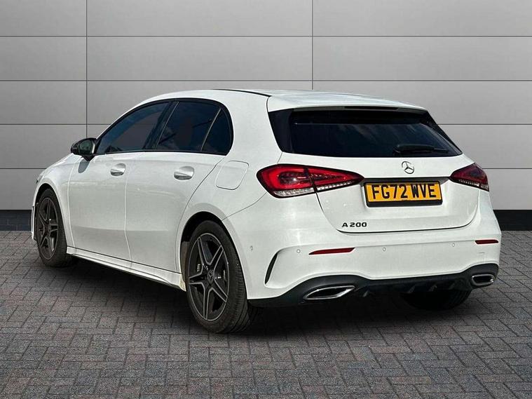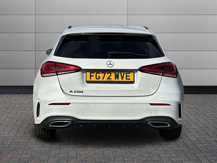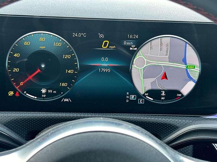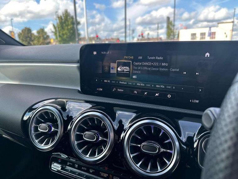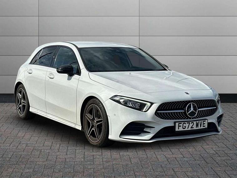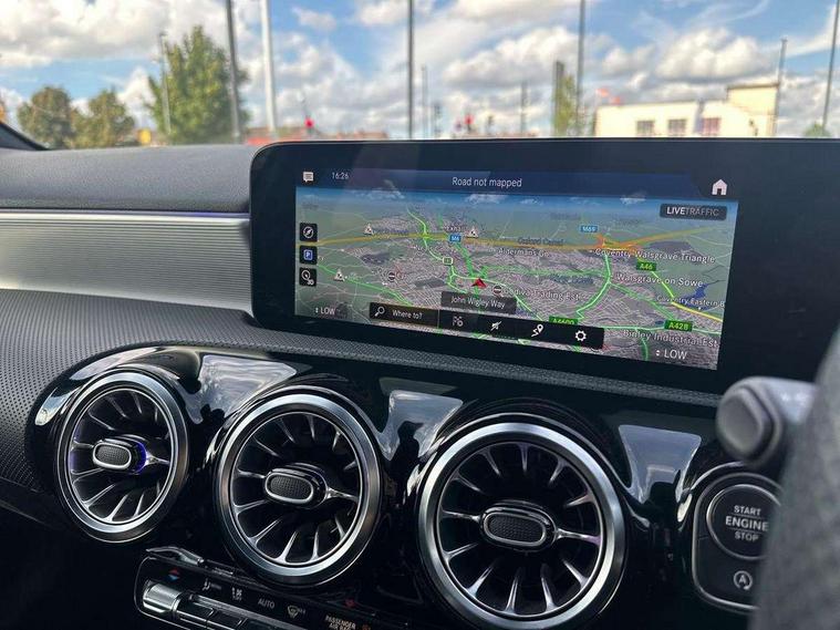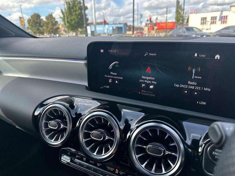 10.25" Digital instrument cluster display screen, 10.25" media display, 180 degree rear view camera with parking guidelines, Active parking assist with visual and audible warning of detected obstacles, Attention assist, Brake pad wear indicator warning light, Car wash mode, Cruise control + speed limiter, Direct steering, Dual bluetooth interfaces, DYNAMIC SELECT with a choice of driving modes (ECO, Comfort, Sport and Individual), ECO start/stop function, Fluid level warning indicator for fuel, oil, coolant and washer fluid, Hard-disk navigation, Hey Mercedes Voice activation, Lamp failure indicator, Lane keeping system, Mercedes me connect including emergency call system, accident recovery, breakdown and maintenance management, Mercedes me remote services, Outside temperature gauge, Owners manual in English, Pre-installation for private car sharing, Preinstallation for Mercedes Benz link, Service indicator (ASSYST), Smartphone integration with Apple CarPlay and Android auto, Speed limit assist, Speed sensitive power steering, Trip computer, Ultrasonic sensors positioned in the front and rear bumpers, Lowered comfort suspension, Rear axle torsion beam, 2 USB ports (type C) in rear stowage compartment and one in front of center console, 6 speakers, DAB Digital radio, MBUX multimedia system with DAB digital radio and touchpad including satellite navigation, Mercedes-Benz sound system - 100W, 4 Electric Front and Rear windows, Adaptive brake lights, AMG bodystyling - Front apron with splitter in chrome, rear apron with chrome trim and chrome visible trim elements in tailpipe, Automatic headlights, Black weather strip, Body colour bumpers, Body colour door handles with chrome inserts, Body colour side skirt, Electric adjustable and heated door mirrors with integrated LED side indicators, Exclusive diamond radiator grille, Exhaust system - Twin visible tailpipes in polished stainless steel, Headlamp assist automatic headlamp activation, Heated glass rear windscreen + timer control, LED High level third brake light, LED high performance headlamps with integrated LED daytime running lights, LED tail lamp, Privacy glass, Radio aerial, Rain sensing windscreen wipers with two sensitivity settings, Rear fog lights, Rear side wing doors, Rear wiper, 3 seat bench in 2nd row, 3 Spoke flat bottom leather multi function steering wheel with perforated leather in grip area, 40:20:40 split folding rear seats, Artico man-made leather/Microfibre Dinamica upholstery with red contrast stitching, Auto Mercedes-Benz child seat recognition sensor, Black air vents with surround in silver chrome, Black roof lining, Brushed stainless steel sports pedals with rubber studs, Controller on centre console with chrome surround, Floor mats with AMG lettering, Front centre armrest with storage compartment, Front seat backs luggage nets, Galvanished gear shift paddles on steering wheel, Heated front seats, Height/reach adjustable steering column, Illuminated Mercedes Benz lettering front door sills with changeable cover, Interior lighting - 64 colour Ambient lighting, Interior mirror with reading lamps in black and frameless, Manual height adjustable front seats, Rear head restraints, Seat occupancy sensor for front passenger seat, Single front passenger seat, Sports seats with integrated headrests, Stowage compartment in centre console with retractable cover, Sunvisors with illuminated vanity mirrors, Touchpad on center console, Twin front cupholders, Two zone thermotronic luxury automatic climate control, Light and sight pack - A Class, Mirror package - A Class, Night pack - A Class Saloon/Hatchback, Seat comfort pack - A Class, 3 rear 3 point seatbelts, ABS with Brake Assist, Active bonnet, Active brake assist includes forward collision warning system with autonomous braking, Adaptive brake assist with hold function and hill start assist, Black seatbelts, Childproof locks manually operated for rear doors and electrically operated for rear power windows, Crash responsive emergency lighting, Driver and passenger head and side airbags, Drivers knee airbag, Dual stage driver/passenger airbags, Electronic parking brake, ESP curve dynamic assist, ESP with ASR, Front and rear seatbelt reminder, Front brake callipers with Mercedes Benz lettering, ISOFIX and top tether child seat fixing points in two outer rear seats, Tyre pressure monitoring system, Warning triangle and first aid kit, Window airbags, Alarm system/interior protection/immobiliser, Keyless Go, Remote central locking and crash sensor with emergency opening function, Urban guard vehicle protection system with immobiliser and interior protection, Matrix look light longitudinal grain aluminium trim element, 18" AMG 5 twin spoke light alloy wheels aerodynamically optimised painted in black with highsheen finish, Summer tyres, Tirefit sealant kit,