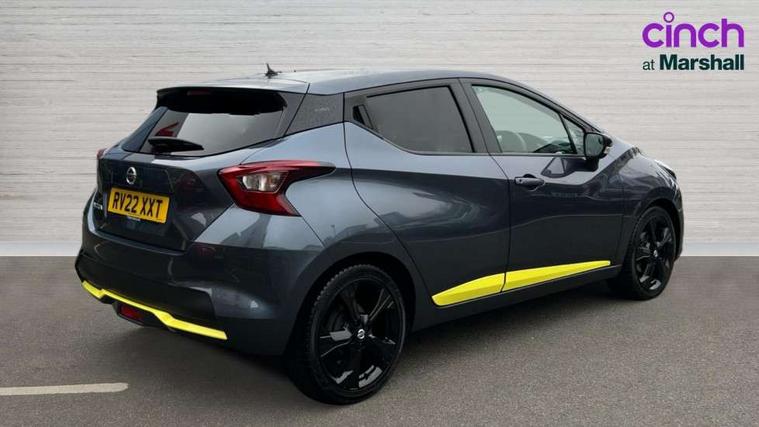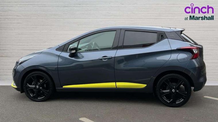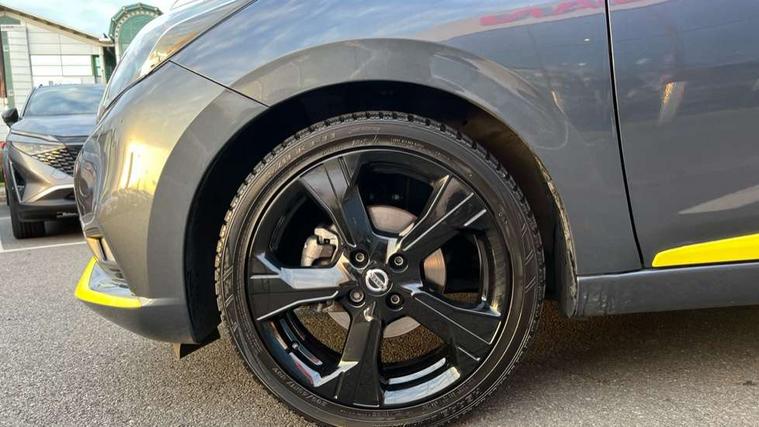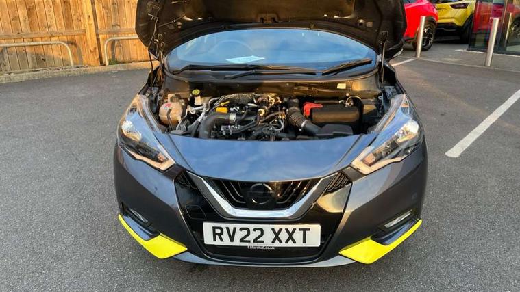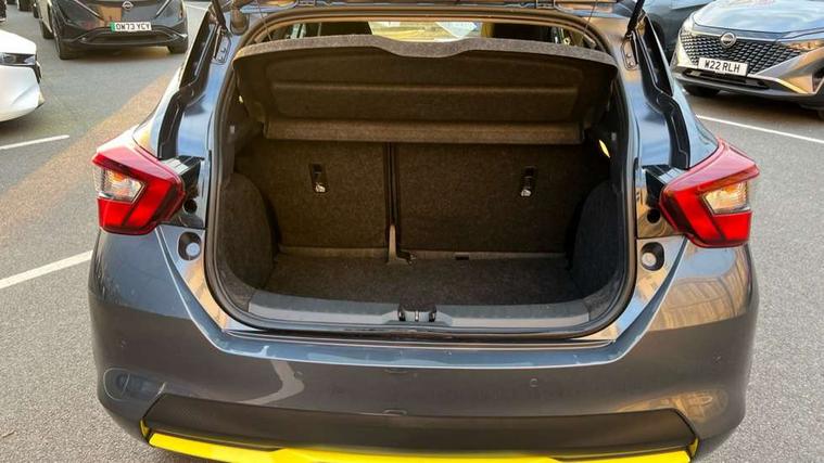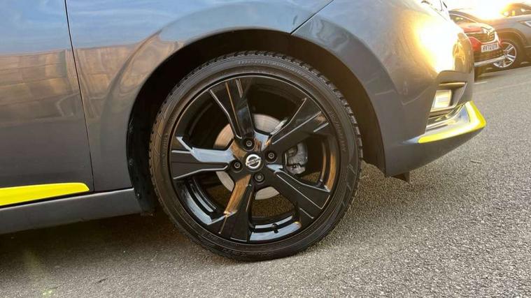 Adjustable speed limiter, Advanced drive assist display 5'' TFT coloured screen, Bluetooth system, Cruise control, eCall emergency call system, Engine start button, Lane departure prevention, Lane departure warning system, Nissan Connect touchscreen navigation and Entertainment system, Outside temperature gauge, Power assist steering, Rear parking sensors, Smartphone integration with Apple CarPlay and Android auto, Stop/start system, TomTom services, Traffic sign recognition, Trip computer, 4 speakers, Audio system with MP3, DAB Digital radio, Steering wheel mounted audio controls, USB/iPod connection, 4 pocket halogen headlights with signature finisher, Antenna, Automatic activation of hazard warning lights, Automatic headlights, Body colour front door handles, Body coloured bumpers, Body coloured door mirrors, Concealed rear door handles, Door mirror integrated indicators, Electrically adjustable door mirrors, Front and rear electric windows, Front fog lights, High beam assist, High mounted stop lamp, Jacknife key type x1, KIIRO stickers in c-pillar, LED signature daytime running lights, Metallic paint, Rain sensor windscreen wipers, Rear privacy glass, Rear roof spoiler, Rear side wing doors, Rear wiper with reverse link, Spicy yellow personalisation in front, side and rear, Variable front intermittent wipers, 12V power point front, 2 height adjustable rear headrests, 2 x front and 1 x rear cup holders, 3 seat bench in 2nd row, 60/40 split folding rear seat, Automatic air conditioning, Boot compartment cover, Boot light, Casual cloth upholstery, Chrome interior door handles, Driver's seat manual height adjust, Driver/passenger sunvisors and vanity mirrors, Front and rear door pockets with bottle holders, Front console storage box, Gear shift indicator, Grey PVC front door pads, Height adjustable front headrests with satin sliver decoration, Illuminated electric window switch, Isofix front passenger and rear seat preparation, Map reading lamp, Parcel shelf, Passenger seat back pocket, Reclining front seats, Satin silver accents on steering wheel, Satin silver air vents, Satin silver gearknob, Single front passenger seat, Soft touch upper IP with grey PC Insert, Tilt/telescopic adjustable steering wheel, ABS+EBD+Brake assist, Crash sensor, Driver/Front Passenger airbags, Front and rear curtain airbags, Front side airbags, Height adjustable front seatbelts with pre-tensioners and load limiters, Hill start assist, Intelligent emergency braking with pedestrian recognition, Passenger airbag deactivation system, Rear door child safety locks, Rear seatbelts with pre-tensioners and load limiters, Seatbelt warning, Three 3 point rear seatbelts, Tyre pressure monitoring system, Warning triangle and first aid kit, Anti-theft immobiliser, Remote central locking, 17" Alloy wheels, Tyre repair kit,