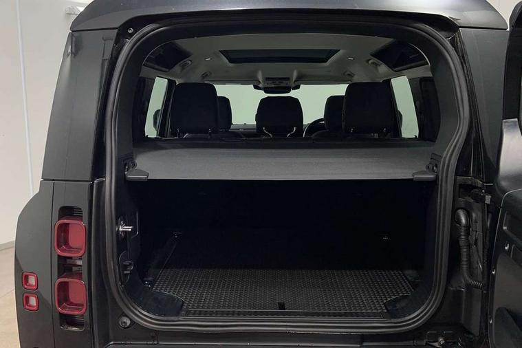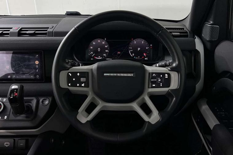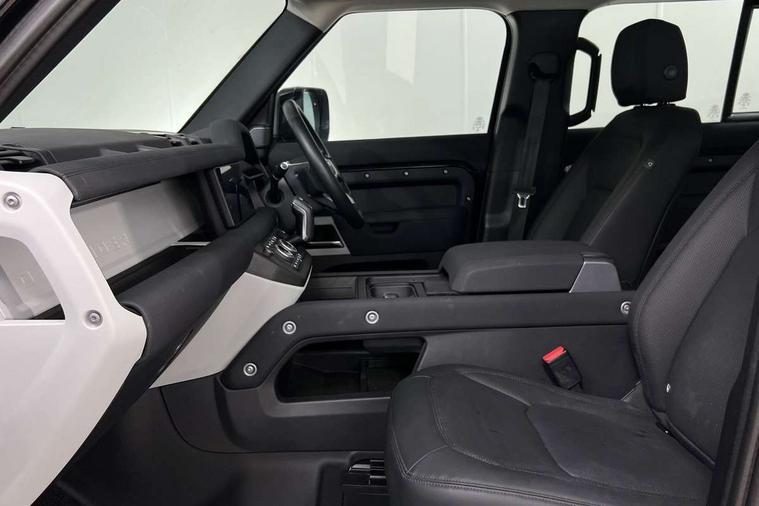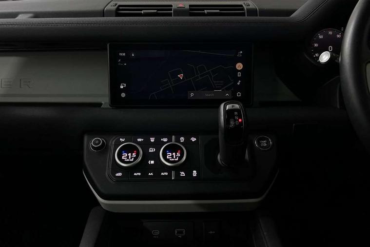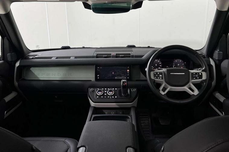 360 degree parking aid, 3D Surround Camera with 360 View, 180 Rear View, Front Traffic Detection, Forward Vehicle Guidance, Tow Hitch Assist and clear sight Ground View, Adaptive cruise control, Android Auto, Apple CarPlay, Assisted tailgate with soft close, Blind spot assist, Bluetooth system, Brake pad wear indicator, Clear exit monitor, Connected navigation pro, Driver condition monitor, Electric power assisted steering (EPAS), Interactive driver display, Lane keep assist, Push button start, Rear traffic monitor, Traffic sign recognition with adaptive speed limiter, Trip computer, Wade Sensing, 8 speed automatic transmission, All wheel drive system, Twin speed transfer box, DAB Radio (Digital Audio Broadcasting), Pivi pro connected, Automatic headlight levelling, Automatic headlights, Centre high mounted stop light, Electric heated/power fold door mirrors with approach lights and auto dimming driver side, Electric windows with one touch open/close and anti-trap, Follow me home lighting, Heated rear window with timer, Heated windscreen, LED tail lights, Puddle lights, Rain sensing windscreen wipers, Rear fog lights, Rear side wing doors, Rear wiper, Side hinged tailgate, Trailer stability assist, 12V power socket in loadspace, 3 seat bench in 2nd row, Alpine lights, Durable rubber cabin flooring, Durable rubber loadspace flooring, Footwell lights, Front passenger isofix child seat attachment, Loadspace cover, Loadspace Hook, Multifunction steering wheel, Overhead stowage for sunglasses, Premium cabin lighting, Rear headrests, Rear ISOFIX, Rear reading lights, Single front passenger seat, Standard seat configuration, Storage glovebox, Sunvisors with illuminated vanity mirrors, Online pack with data plan - Defender, 5 x 3 point seatbelts, ABS, Brake hold function, Cornering brake control (CBC), Customer configurable autolock, DSC - Dynamic Stability Control, EBD - Electronic brakeforce distribution, Electric parking brake (EPB), Emergency brake assist, Emergency braking, ESP + traction control, Front airbags with passenger seat occupant detector, HDC - Hill descent control, Hill launch assist, Low traction launch, Power operated child locks, Remote for (e-Call, Optimised assistance call, InControl app, Climate, beep and flash and door), RSC - Roll stability control, Seat belt reminder, TPMS (Tyre pressure monitoring system), Alarm, Immobiliser, Intrusion sensor, Keyless entry, Locking wheel nuts,