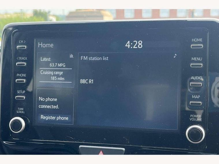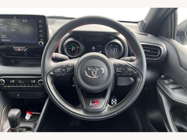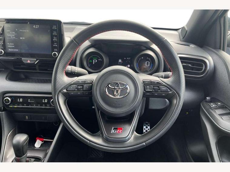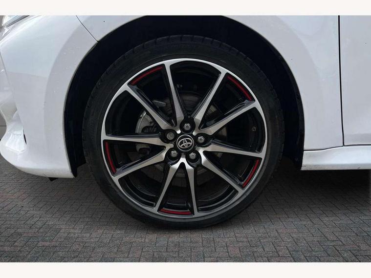 Adaptive cruise control, Adjustable speed limit with speed warning, Bluetooth connectivity, Colour binocular inspired displays with digital speedometer, E-call, Electric power steering, Hybrid energy display, Multi information display switches on steering wheel, Reversing camera, Smartphone integration with Apple CarPlay and Android auto, Tailgate, Voice recognition, Vehicle Stability Control (VSC), 6 speakers, 8" Multimedia display touch screen, Toyota Touch 2 with DAB, USB connection, Acoustic windscreen glass, Auto windscreen wipers, Automatic headlights, Body coloured door mirrors, Dark chrome lower front grille, Electric adjustable heated door mirrors, Follow me home headlights, Front auto power windows with anti jam protection, Full LED rear lights, LED daytime running lights, LED front fog lights, LED front light guide, LED Headlights, LED High mounted stop lamp, LED Indicators, LED rear light guide, Manual headlight levelling, Painted chequered front grille with hot stamp in mesh design, Rain sensor, Rear auto power windows with anti jam protection, Rear privacy glass, Rear side wing doors, Rear spoiler, Rear wiper, Shark fin antenna, Turning signal integrated indicators in door mirrors, Variable front intermittent wipers, 3 adjustable rear headrests, 3 seat bench in 2nd row, 3 spoke leather steering wheel, 60/40 split folding rear seat, Active headrests, Adjustable boot height, Black roof lining, Coat hooks in rear grab handles, Cup holders (2 front & door), Data Communication Module (DCM) connected services, Dual zone automatic air conditioning, Fabric upholstery with red stitching, Front armrest, Front sport seats, Glovebox, Height adjustable driver's seat, Height adjustable passenger seat, Isofix seat fixing, Leather gearshift, Map pockets on the backs of the front seats, Pollen filter, Shopping bag hooks, Single front passenger seat, Tilt/telescopic steering column, 3 point seatbelts on all rear seats, ABS+EBD+Brake assist, Electronic parking brake, Emergency brake light system (EBS), Front passenger airbag on/off switch, Front seatbelt reminder, Hill start assist control (HAC), Rear child proof door locks, Rear seat belt reminder, Supplemental Restraint System (SRS) 8 airbags: Driver & passenger's airbags, dual side curtain airbags, side impact airbags, front centre airbag, Toyota Safety Sense 2, Precollison + Night time Pedestrian & Cyclist Detection, Lane Trace Assist, Auto High Beam, Intelligent ACC & Road Sign Assist, Tyre pressure warning system, 2x Master key, Alarm/immobiliser, Keyless smart entry with push button start, Remote AC via MyT, Remote locking via MyT, Remote powered central double locking doors, GR Sport interior styling with accents and exterior styling, Piano black interior trim, Soft touch instrument panel, 18" machined face alloy wheels with GR Sport red deco lines, Space saver spare wheel,