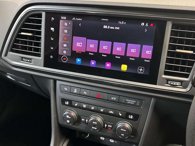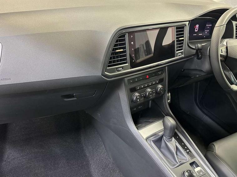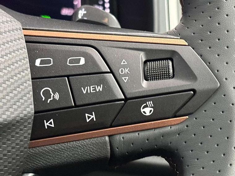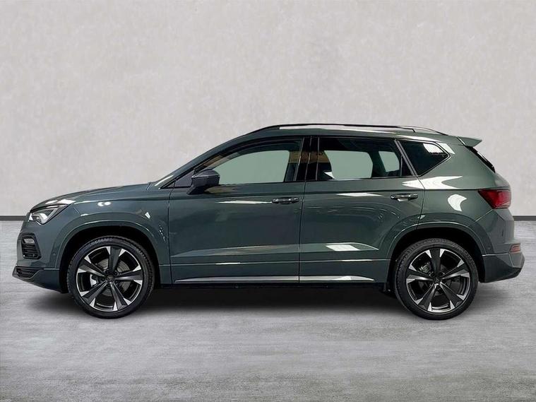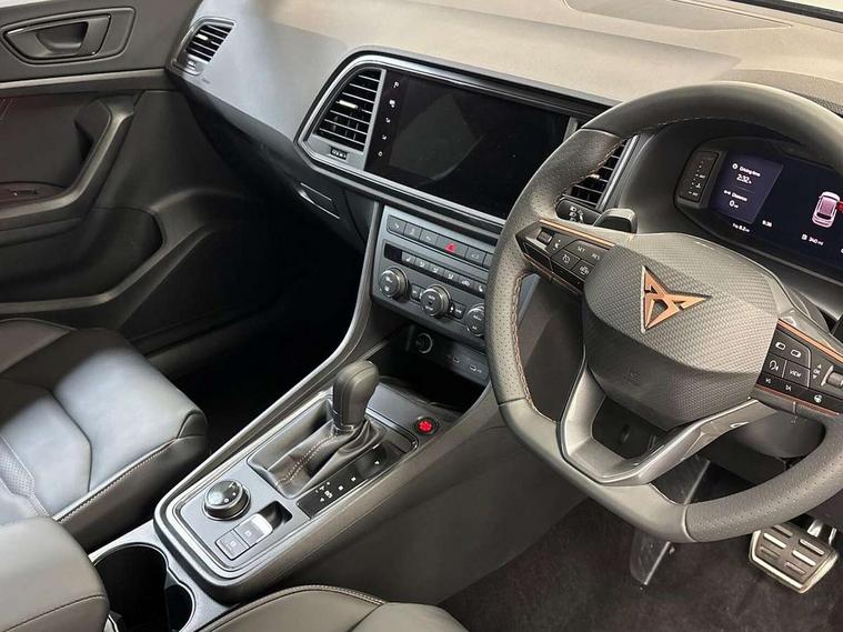 Cruise control system with speed limiter, Digital cockpit, Driving profile selection and conventional shock absorber, E-call, Electric tailgate with virtual pedal, Outside temperature gauge, Progressive power assisted steering, Rear view camera, Self parking functionality (includes front and rear parking sensors), Trip computer, wired and wireless full link smartphone integration, Wireless phone charger, Front and rear shock absorption, chassis with increased ride height, Steering wheel mounted audio/phone controls, Body colour bumpers with dark aluminium diffusor, Body coloured wheel arch surrounds, Dark tinted rear windows, Daytime running lights, Door mirrors with welcome CUPRA light silhouette, Dynamic headlight range control with self adjusting whilst driving, Electric adjustable/heated/folding door mirrors, Front and rear electric windows, Front grille frame in chrome, Full LED headlamps with lens and LED front fog lamps with cornering function, Gloss black door mirrors, Gloss black roof rails, Gloss black side mouldings, Gloss black side window trim, Illuminated aluminium front door sill, LED rear tail lights with dynamic indicators, Rear fog lights, Rear side wing doors, Rear spoiler, Rear wash/wipe, Specific CUPRA design front bumper, Standard rear exhaust tailpipes, Third brake light, 12v socket in front, 3 seat bench in 2nd row, 60/40 split folding rear seat, Aluminium pedals, Cupra steering wheel emblem, Dual zone climate control, Electric driver seat with memory function, Front and rear head restraints, Front centre armrest, Front seat back storage pockets, Grey roof lining, Heated front seats, Heated steering wheel, Height adjustable driver and passenger seat with lumbar adjustment, ISOFIX points in outer rear seats with top tether anchorage points, Leather sport bucket seats, Leather steering wheel and gear knob, Multicoloured ambient lighting with LED interior illumination, Pedal cluster, Rear armrest and easy back seat release mechanism from boot, Single front passenger seat, Sports steering wheel, Steering wheel mounted gearshift paddles, Storage compartment in roof console for sunglass, Storage compartment under driver's seat, Convenience pack - Ateca, Interior lighting pack - Ateca, Navigation system plus pack with DAB - Ateca, Safety and driving pack - Ateca, 3x3 point rear seatbelts, ABS, Traction control system (TCS), Electronic stability control (ESC) and Electronic differential lock system (XDS), Airbags - Driver and front passenger airbag with deactivation, front side, two curtain and driver's knee airbags, Black brake callipers with CUPRA logo, Electric parking brake with auto hold function, Front and rear seatbelt reminder, Front assist with autonomous emergency braking, Hill hold control, Manual rear child locks, Single tone horn, Tiredness recognition system, Tyre pressure monitoring system, Alarm, Keyless entry, Locking wheel bolts, 19" Sport machined alloy wheels 36/3 in black/silver,