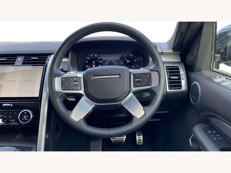 11.4" touchscreen, 3D surround camera, Adaptive cruise control, Android Auto, Apple car play, Blind spot assist, Driver condition monitor, Electric power assisted steering (EPAS), Emergency services call system, Front and rear parking aid, Interactive driver display, Lane keep assist, Power inner tailgate, Power tailgate/boot lid, Push button start, Rear collision monitor, Rear traffic monitor, Remote, Remote boot release, Service interval indicator, Speed proportional steering, Sportshift selector, Stop/start system, Traffic sign recognition with adaptive speed limiter, Trip computer, Wade Sensing, Wireless device charging, Adaptive dynamics, Dynamic stability control, Electronic air suspension, Front axle open differential, Digital Audio Broadcast radio-DAB, Dynamic volume control, Pivi pro connected, Acoustic laminated windscreen, Animated directional indicators, Auto dimming interior rear view mirror, Auto high beam assist, Automatic headlight levelling, Automatic headlights, Black roof rails, Body colour bumpers, Body colour door handles, Centre high mounted stop light, Electric heated/power fold memory door mirrors with approach lights and auto dimming driver side, Electric windows with one touch open/close and anti-trap, Heated rear window, Heated windscreen, LED darkend tail lights, LED headlights with signature DRL, Privacy glass, Puddle lights, Rain sensing windscreen wipers, Rear fog lights, Rear side wing doors, Rear wash/wipe, Trailer stability assist, Variable intermittent wiper, 1 x 12V power socket in Row 1, Row 2, and loadspace, 1 x USB-C (power only), 1 x USB-A & 1 x USB-C (power & data) in Row 1, 18 way heated electric memory driver seats with captains armrest + manual height adjust headrest + 4way power lumbar support, 2 seat bench in 3rd row, 2 x USB-C in Row 2 (power only), 2 x USB-C in Row 3 (power only), 3 seat bench in 2nd row, Central hinged twin lidded storage, Electric adjustable steering column, First and second row door bins, Footwell lights, Front passenger seat ISOFIX, In-facia storage, Isofix child seat preparation for front passenger seat, Loadspace cover, Loadspace Hook, Loadspace light, Lockable glovebox, Lower centre console storage, Luggage tie downs in loadspace, Multi function steering wheel, Overhead lighting console, Premium carpet mats, Premium non-leather steering wheel, Rear ISOFIX, Shopping bag hook, Single front passenger seat, Storage glovebox, Sunvisors with illuminated vanity mirrors, Third row storage, Treadplates with metal inserts, Twin front cupholders with cover, USB with 12V socket in centre console, Online pack with data plan - Discovery, 3x3 point rear seatbelts, Anti-lock braking system (ABS), Brake pre-fill technology, Cornering brake control, Curtain airbags, Customer configurable autolock, Driver and passenger airbags, EBD - Electronic brakeforce distribution, Electronic traction control, Emergency brake assist, Emergency braking, ESP, Front side airbags, Gradient acceleration control, Hill descent control, Hill launch assist, Power operated child locks, Rear airbags, Roll stability control, Seat belt reminder, Torque vectoring brake, Tyre pressure monitoring system, Immobiliser, Intrusion sensor, Keyless entry, Locking wheel nuts, Remote central locking, All terrain tyres,