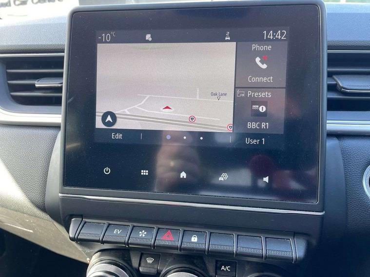 7" TFT Driver information display, Cruise control + speed limiter, EasyLink 7" touchscreen with navigation, google search and traffic information, Eco mode, EV button to activate pure mode, Front and rear parking sensors with rear view camera, Gear change indicator, Lane departure warning system, Lane keep assist, Multisense with 3 driving modes + 8 ambient lighting colours, Renault automatic emergency assist, Smartphone integration compatible with Apple CarPlay and Android Auto, Traffic sign recognition with over speed prevention, Trip computer, Variable assistance power steering, Wireless phone charger, DAB Radio with Bluetooth and USB, EasyLink multimedia system, scheduled charging, heating and air conditioning, Auto dimming rear view mirror, Automatic front wipers with rain sensors, Automatic headlights, Automatic high/low beam, Black side door protection with chrome effect, Body colour door handles, Body coloured bumpers, Body coloured door mirrors, C Shaped LED front and rear lighting signatures with 3D effect on the rear lights, Chrome around front air deflectors, on front wing deco element and window lining, Day time running light, Drivers one touch window with anti-pinch feature, Extra tinted glass in rear windows and tailgate, Front and rear electric windows, Front grille with chrome upper trim, Full LED headlights, Grey front and rear skid plate, LED front fog lights, LED high level brake lights, LED rear fog light, Longitudinal roof bars, Rear side wing doors, Rear wiper, Shark fin antenna, 12V Accessory socket, 3 rear headrests, 60/40 split and fixed base rear seat bench, Automatic climate control with one touch demist function and air quality regulator, Centre console storage tray, Front head restraints, Glovebox, Heating system with pollen filter, Height adjustable driver's seat, Height adjustable passenger seat, Height/reach adjust steering wheel, ISOFIX child seat fixing points on rear outermost seats, LED front roof lights, Middle console with armrest and storage, Modular boot floor, Rear air vents, Single front passenger seat, Sliding rear bench, Synthetic leather steering wheel, Synthetic leather/cloth upholstery, 3 rear seatbelts, ABS+EBA, B Brake Mode - One pedal driving with increased regenerative braking, Distance warning alert, Driver and front passenger, side, head and curtain airbags, Driver height adjustable seat belt, Electric parking brake with auto hold function, Electronic stability control, Front and rear no seatbelt warning sound, Front dash warning indicator in case of heavy braking, Front driver and passenger side airbag deactivation, Hill start assist, Rear door and window child locking function for rear door, Tyre pressure warning light, Anti drill door locks and locking fuel cap, Central door locking, Deadlocking system, Hands free keycard with push button and start/stop function, RAID (Renault Anti-Intruder Device) automatic door locking, Black soft touch dashboard, 18" Pasadena diamond cut alloy wheels with grey inserts,
