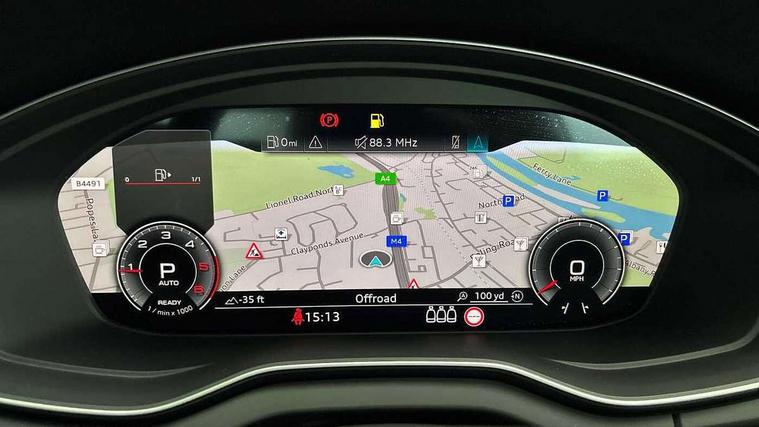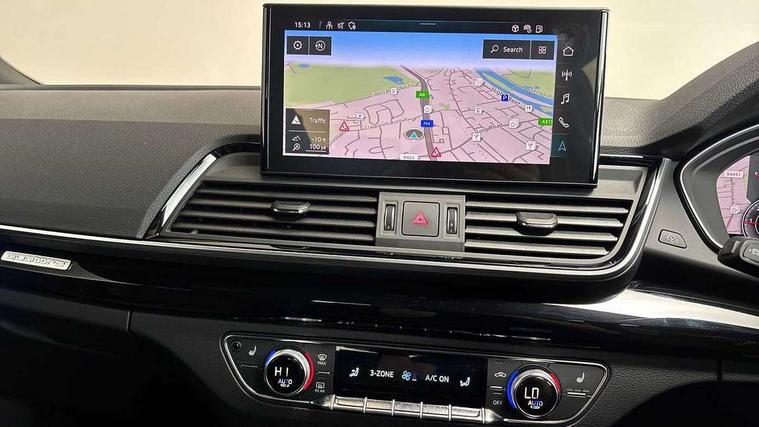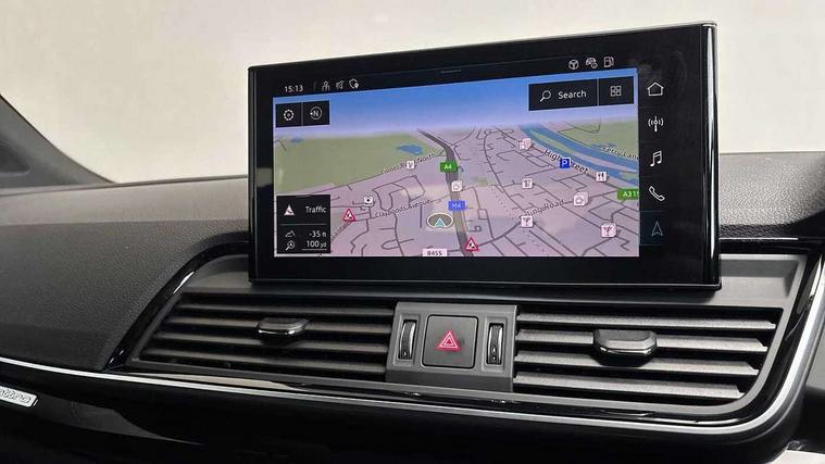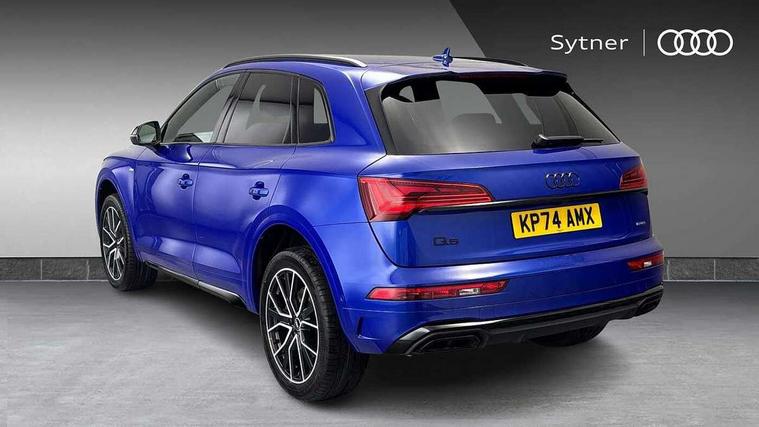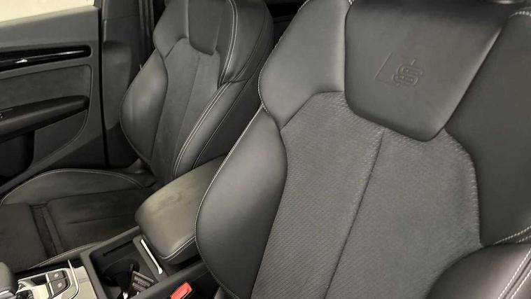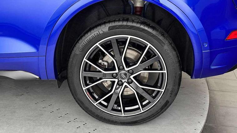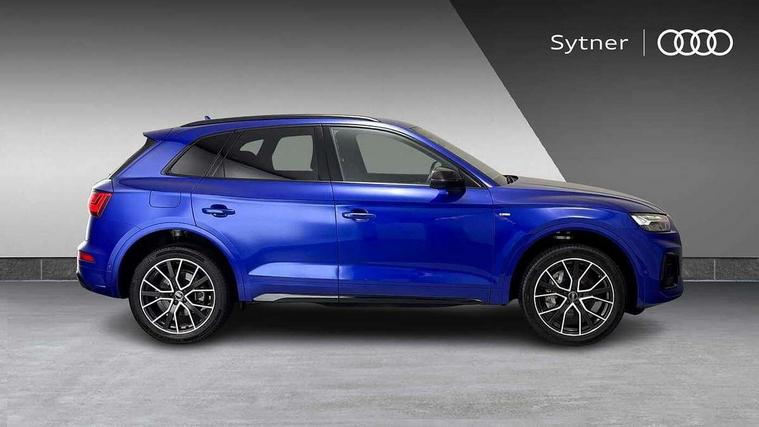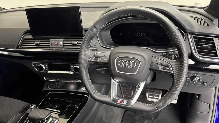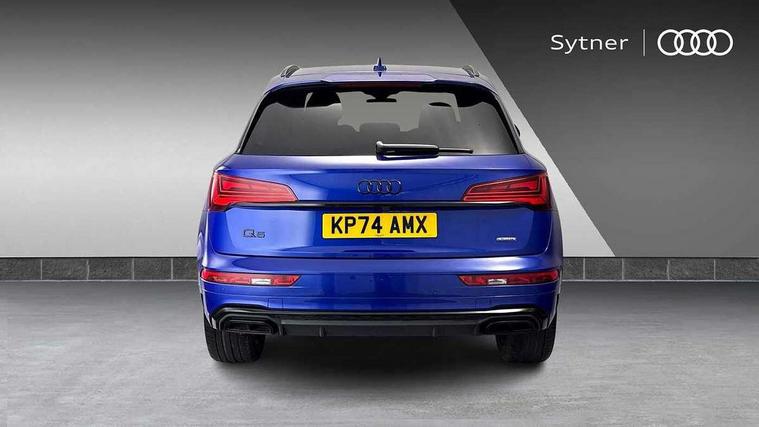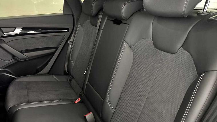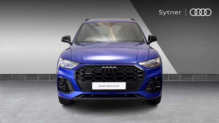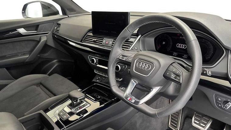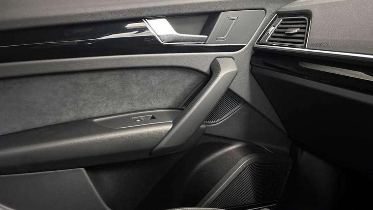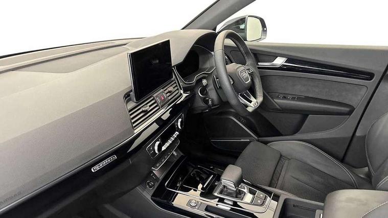Acoustic front and rear parking sensor, Audi connect safety and service (e-call), Audi drive select, Audi virtual cockpit plus with 12.3" screen and three different layout designs, Audi wireless smartphone interface, Automatic start-stop system with coasting functionality and efficiency programme, Bluetooth interface, Camera based traffic sign recognition, Electro - mechanical power assisted steering, Lane departure warning, MMI navigation plus with 10.1" touch screen, Power tailgate, Reversing camera, Service interval indicator, Voice control system with Audi hotword activation "Hey Audi", Diesel particulate filter, Quattro on demand, S line sports suspension, 2 x USB charging port with aux input socket, 8 loudspeakers, DAB Digital radio, Acoustic windscreen, Auto dimming door mirrors, Auto dimming frameless rear view mirror, Automatic headlight adjustment, Automatic headlights and windscreen wipers, Black roof rails, Black styling with black rings, Body colour bumpers, Body colour rear diffuser with matt aluminium silver surrounds, Body colour underbody protection, Chrome plated exhaust trims, Daytime running lights, Door sills in Selenite silver, Electric adjustable/heated/folding door mirrors, Front air inlet surrounds in aluminium, Front and rear electric windows, Front radiator grille in honeycomb design, LED 3rd brake light, LED headlights and LED tail lights, Loading edge protection in stainless steel, Lower bumpers painted in contrast Manhattan grey, Rear chrome trim strip below lights, Rear privacy glass and rear side windows, Rear side wing doors, Rear wiper, Roof bars, S Line badges on the front wing panels, S Line front and rear bumpers, S Line rear spoiler, S Line side skirts, 3 rear headrests, Black cloth headlining, Comfort front centre armrest, Contrast stitching on seats, steering wheel and gear lever gaiter, Deluxe 3 zone electronic climate control, Front head restraints, Front sport seats with S embossed logo, Front/rear floor mats, Gear lever in black leather, Heated front seats, Height/reach adjustable steering column, Illuminated door sill trims with S logo, Luggage compartment cover, Manual seat adjustment with 4-way electric lumbar support, Single front passenger seat, Stainless steel pedals, Sunvisors with vanity mirrors, Top surface of the rear centre armrest in artificial leather, High gloss pack - Q5, LED interior light pack - Q5, 3 point seatbelts on all seats, 6 airbags - Driver, front passenger, curtain and side airbags, Attention and drowsiness assist, Electrically operated child locks on rear doors, Electromechanical parking brake, Electronic stabilisation control including ABS, ASR and EDL, First aid kit with warning triangle and vests, Front passenger airbag deactivation, Hill descent control, Hill hold assist, ISOFIX child seat mounting for front passenger seat and ISOFIX child seat mounting with Top Tether for outer rear seats, Multi collision brake assist, Pop-up bonnet for pedestrian protection, Pre sense city, Seatbelt monitoring, Tyre pressure warning, Anti theft alarm, Anti-theft wheel bolts, Remote central locking, Remote control key with SAFELOCK and keyless go, Air vents inserts and centre console in gloss black, Tool kit, Tyre repair kit,