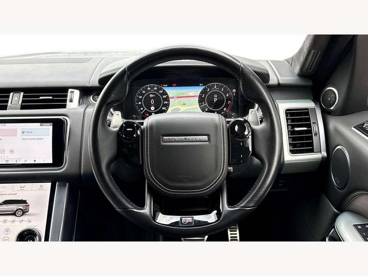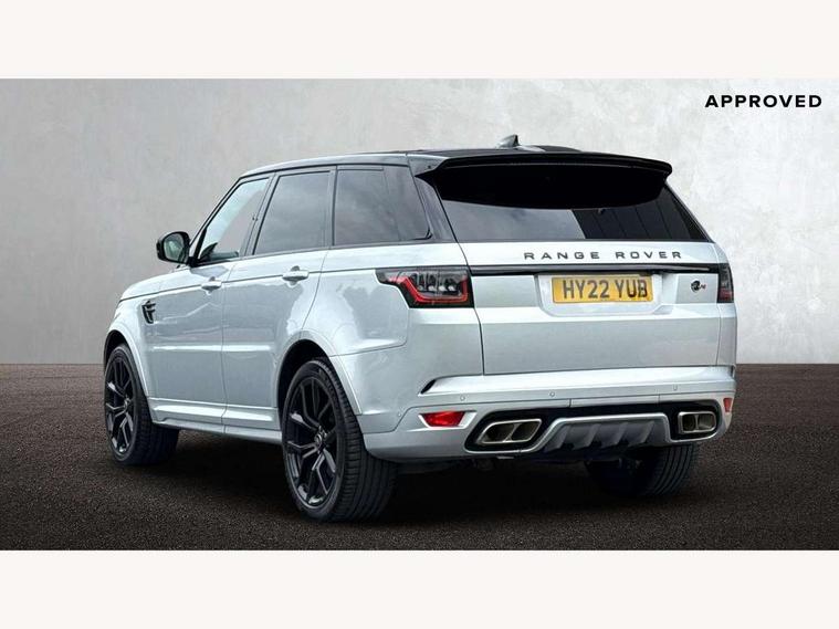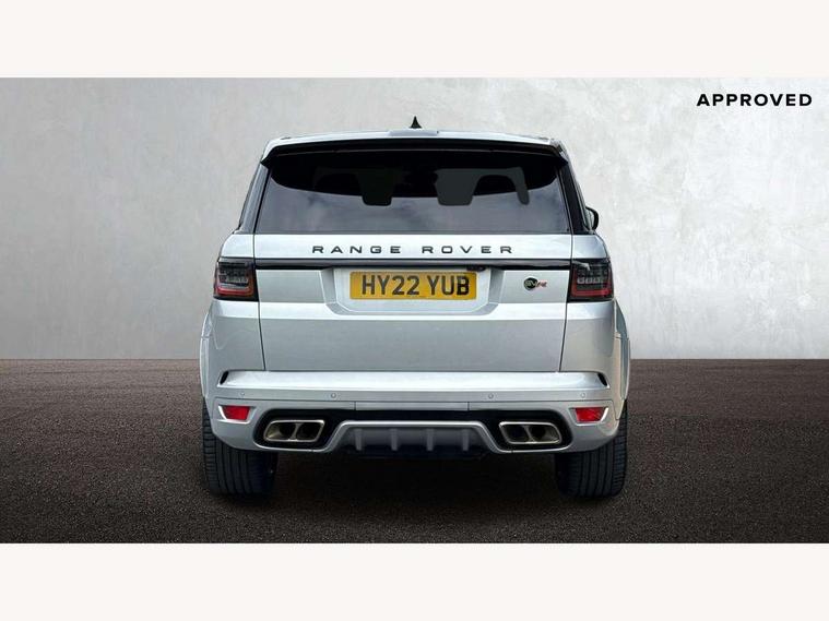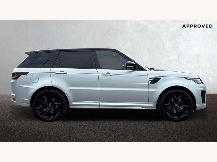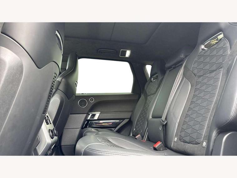 360 Parking aid, All Terrain Info Centre, Android Auto, Apple car play, Bluetooth connectivity, Clear exit monitor, Driver condition monitor, Electric power assisted steering (EPAS), Incontrol apps in vehicle touchscreen, Interactive Driver display instrument cluster, Mist sensor, Navigation pro system with 10" touch screen, app interface and media storage, Powered gesture tailgate/boot lid, Pro services and wifi hotspot, Push button start, Rear traffic monitor, Remote premium - Upgraded Incontrol remote app including remote climate control (engine dependent), remote lock + Unlock and remote beep + flash, Touch pro duo system, Traffic sign recognition with adaptive speed limiter, Trip computer, Adaptive dynamics, All terrain progress control, Configurable dynamics, Electronic active differential with brake torque vectoring, Gradient release control (GRC), SVR sports suspension with dynamic response (active roll control), Terrain Response 2 with dynamic program, Twin speed transfer box, Bluetooth audio streaming, DAB Radio (Digital Audio Broadcasting), Incontrol protect - SOS emergency call with automatic collision detection, optimised assistance call and Incontrol remote app essential, USB/aux input socket, Acoustic front and toughened rear side glass, Acoustic laminated front windows, Active exhaust system with integrated exhaust mounted quad tailpipes, Adaptive brake lights, Auto dimming interior rear view mirror, Automatic headlights, Body coloured side sills and bumpers corners, Centre high mounted stop light, Electric windows with one touch open/close and anti trap, Electrical towing preparation, Follow me home lighting, Front and rear recovery eyes, Headlight power wash, Heated rear window, Heated windscreen includes heated washer jets, Illuminated metal treadplates with brand name script, LED rear lamps, Power fold, auto-dimming, heated door mirrors with memory and approach lights, Rain sensing windscreen wipers, Rear fog lights, Rear side wing doors, Rear wash/wipe, Remote window closing, Side repeater indicators in mirror, SVR badge, SVR exterior styling, Switchable sports exhaust, Trailer stability assist, Unique light weight exhaust system, 16 way driver/passenger electrically adjustable SVR performance seats with memory, 2 way rear head restraints, 3 seat bench in 2nd row, 4 way lumbar support with memory function, 60/40 split folding rear seat, Aluminium gear shift paddles, Auto air recirculation, Bright metal foot pedals, Centre console with armrest, Climate control memory, Configurable Ambient interior lighting, Customer configurable single point entry, Driver's footrest, Extended leather upgrade includes door top rolls and leather instrument panel mid section, Front and rear cupholders, Front and rear premium carpet mats, Front door storage space, Front map lights, Front seat back map pockets, Front stowage pocket, Front/rear passenger grab handles, Heated steering wheel, Integrated front head restraints, Isofix child seat preparation, Loadspace light, Loadspace mounting provisions, Lockable glovebox, Multifunction steering wheel, Pollen filter, Power socket, Reach/rake electric adjustable steering column + entry/exit tilt away, Rear centre armrest, Rear ISOFIX, Roller blind loadspace cover, Single front passenger seat, Sports pedals, SVR leather steering wheel, SVR Performance seats, Three 12V accessory power outlets, Smartphone pack - Range Rover Sport, 3 point seatbelts on all seats, Anti-lock braking system (ABS), Brake pre-fill technology, Cornering brake control (CBC), Curtain airbags, Customer configurable autolock, DSC - Dynamic Stability Control, Dual stage driver/passenger airbags, EBD - Electronic brakeforce distribution, Electric parking brake, Electronic traction control, Emergency braking includes city, urban AEB and pedestrian, Front seatbelt pretensioners, Gradient acceleration control, Height adjustable front seatbelts, High speed emergency braking, Hill descent control, Hill launch assist, Low traction launch, Passenger seat occupant detector with front airbags, Power operated child locks, Roll stability control, Seatbelt warning, TPMS (Tyre pressure monitoring system), Immobiliser, Intrusion sensor, Keyless entry, Locking wheel nuts, Perimetric and volumetric anti theft alarm, Remote locking,
