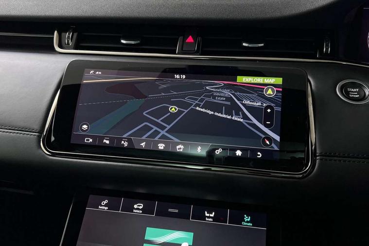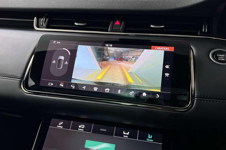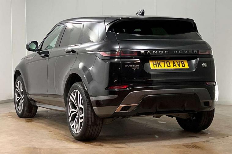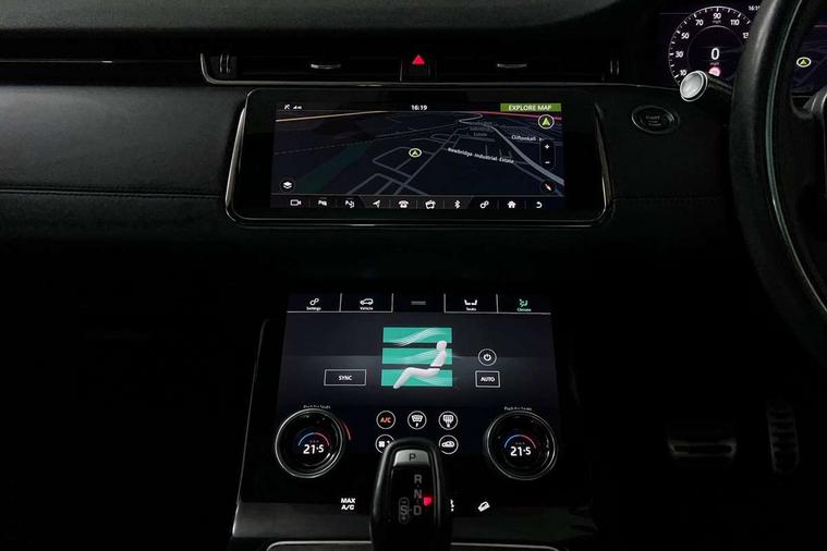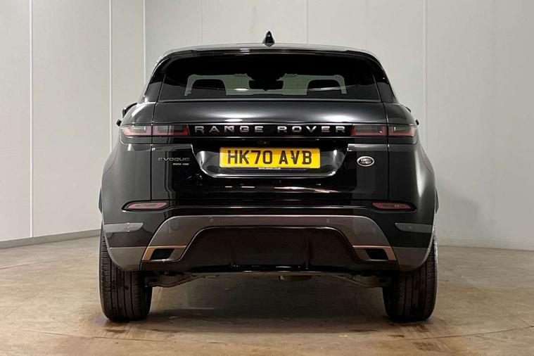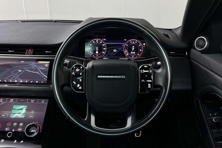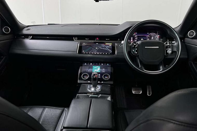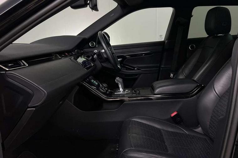 3D 360 degree surround camera, Adaptive cruise control, Android Auto, Apple car play, Blind spot assist, Bluetooth connectivity, Brake pad wear indicator warning light, Clear exit monitor, Driver condition monitor, Duo touch pro, Electronic power assisted steering (EPAS), InControl remote, Interactive Driver display instrument cluster, Land Rover InControl apps, Lane keep assist, Pivi pro connected includes upgraded infotainment, connected navigation pro, Nuance speech licence, Powered gesture tailgate/boot lid, Push button starter, Rear collision monitor, Rear traffic monitor, Traffic sign recognition with adaptive speed limiter, Voice control system, Wade Sensing, All terrain progress control, Efficient Driveline, Large fuel tank, Passive suspension, Terrain Response 2 Auto, Digital Audio Broadcast radio-DAB, Steering wheel mounted controls, Automatic headlight levelling, ClearSight interior rear view mirror, Electric windows with one touch open/close and anti trap, Evoque and R-Dynamic badge, Flush deployable exterior door handles, Heated rear window with timer, Heated washer jets, Heated windscreen, Power fold, auto-dimming, heated door mirrors with approach lights and auto dimming driver side, Rain sensing windscreen wipers, Rear fog lights, Shadow atlas bonnet and tailgate script, Tailgate spoiler, 40:20:40 split folding rear seats with centre headrest and armrest, Ambient interior lighting, Bright metal pedals, Isofix system on outer rear seats, Overhead lighting console, Overhead stowage for sunglasses, Passive front head restraints, R-Dynamic branding illuminated metal tread plates in loadspace and row 1 with brand name script and non illuminated metal in row 2, Rear air vents, Rear centre headrest, Satin chrome gearshift paddles, Sunvisors with illuminated vanity mirrors, Twin sliding front centre armrest, 3 rear 3 point seatbelts, Anti-lock braking system (ABS), Customer configurable autolock, DSC - Dynamic Stability Control, Electronic brake force distribution, Electronic parking brake, Electronic traction control, Emergency braking, Front and rear seatbelt reminder, Hill descent control, Hill launch assist, Low traction launch, Power operated child locks, Roll stability control, Six airbags - Driver and passenger airbags/driver knee airbag/front side airbag and curtain airbags, Torque vectoring brake, Tyre pressure monitoring system, Alarm, Immobiliser, Intrusion sensor, Keyless entry, Locking wheel nuts,