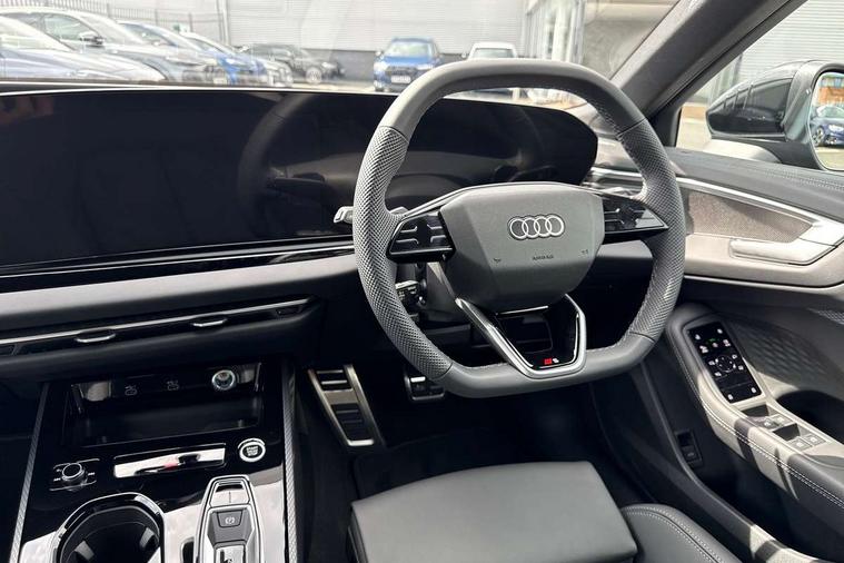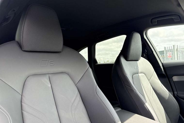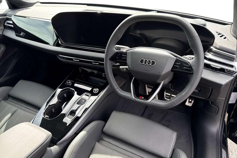 Adaptive cruise control, Advanced driver attention and fatigue montior, Audi application store, Audi assistant, Audi connect emergency call and service, Audi drive select, Audi smartphone interface, Audi virtual cockpit plus with 11.9" OLED colour display, Automatic start/stop system with coasting functionality, Camera based traffic sign recognition, Intersection assist, Lane departure warning, MMI navigation plus with high resolution 14.5" OLED touchscreen colour display, Park assist plus, Parking system plus with 360 display, Progressive steering with servotronic, Rear view camera, Swerve assist and turn assist, Traffic sign based speed limiter, Sports suspension lowered by 20mm, 2 USB-C ports in both the front and rear, Audi sound system impressive sound with 10 loudspeakers including centre speaker and subwoofer, 6-channel amplifier with a total output of 180 watts, DAB digital radio reception, Smartphone compartment with wireless charging, Aluminium roof rails, Aluminium window trims, Auto dimming rear view mirror, Body colour door mirrors, Door mirrors - electrically adjustable, heated, folding and auto dimming on both sides, Front and rear electric windows, Front door sill trims with aluminium inlays, illuminated with 'S' logo, High beam assist, LED headlights Plus incl. digital daytime running lights, turning light, all-weather light, motorway light, manouevring light and intersection light, LED rear lights pro incl. dynamic rear indicators and illuminated light strip with animated coming and leaving home function, LED third brake light, Privacy glass, Rear and side windows with heat insulating glass, Rear side wing doors, Rear wash/wipe, S Line badges on the front wings, S line bumpers, radiator grille and diffuser in phantom black and diffuser insert in matt anthracite, White rhombus logo projection light in exterior mirrors, Windscreen with acoustic glazing, 3 rear headrests, 3 seat rear bench, 3 spoke leather steering wheel with multi-function buttons with touch control, flattened on top and bottom, with S badging and contrast stitching, 3-zone automatic climate control, 40:20:40 split folding rear seat bench with centre armrest and cup holders, Comfort front centre armrest, Front and rear floor mats, Front seats with manual adjustment for position and 4-way electric lumbar support, Front sport seats with integrated headrest and S embossed logo, Headlining in black cloth, Heated front seats, i-Size child seat mounting on the front passenger side and outer rear seats, i-Size and top tether on the outer rear seats, Luggage compartment lid, electrically opening and closing, Manual steering column height and depth adjustment, Single front passenger seat, Stainless steel pedals and footrest, Steering wheel grips in perforated leather and shift paddles, Ambient lighting package plus - A5, 3x3 point rear seat belts, Driver airbag, Electric child safety locks, First aid kit with warning triangle and vests, Front emergency brake assist, Front passenger airbag, Front passenger airbag deactivation, Front side airbags with head airbag system and front interaction airbag, Hill hold assist, Seat belt monitoring with rear seat occupant reminder, Tyre pressure loss indicator, Anti theft alarm, Anti-theft wheel bolts, Keyless Go, Accent surfaces and control buttons in gloss black, Black dashboard with contrast stitching, Inlays in matt brushed aluminium with linear embossing, anthracite, Softwrap in leatherette with contrast stitching, Upper and lower interior elements in leatherette, Tyre repair kit,