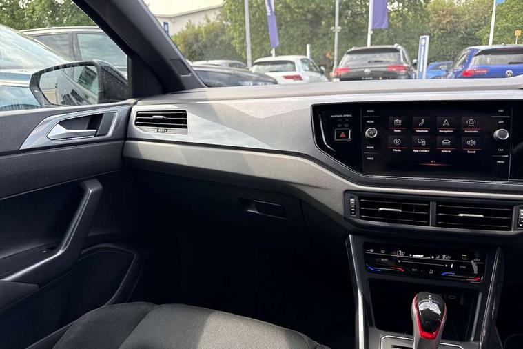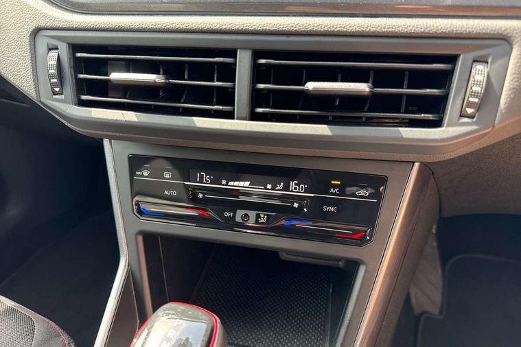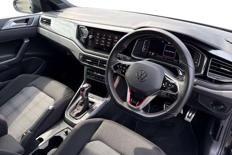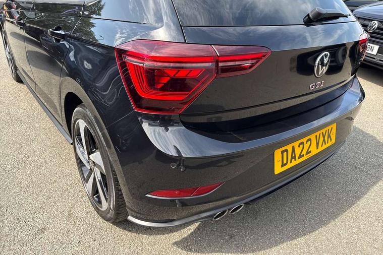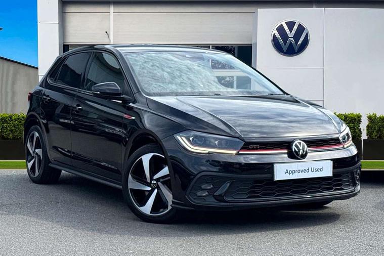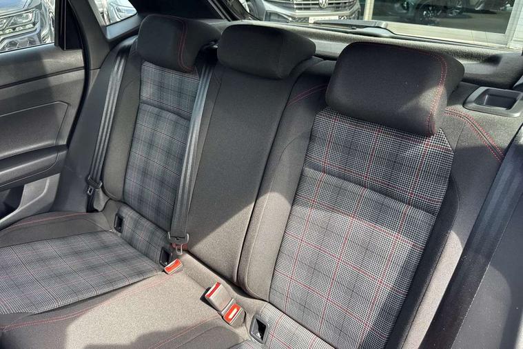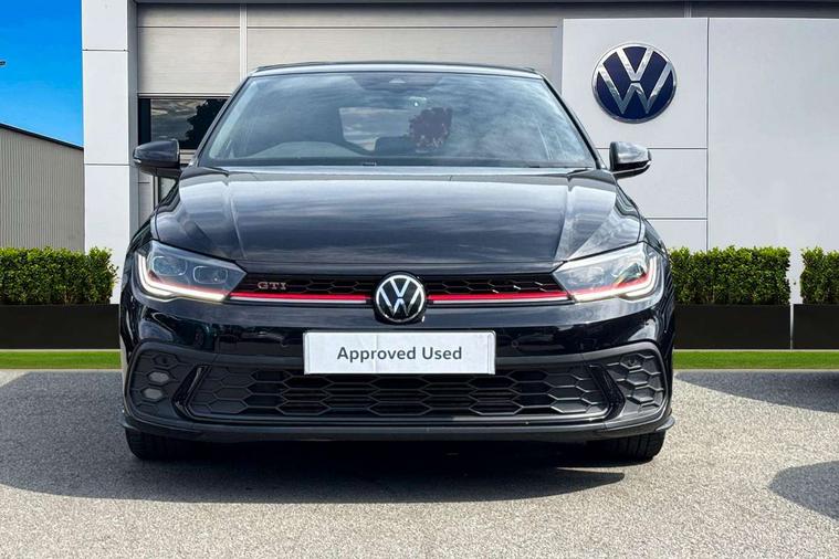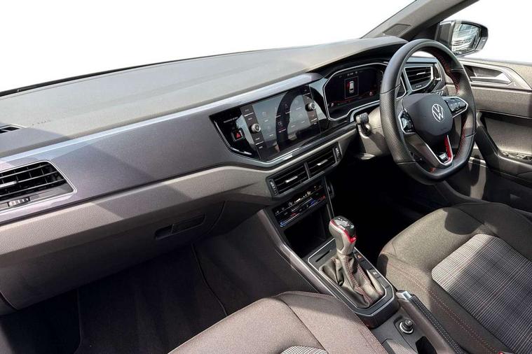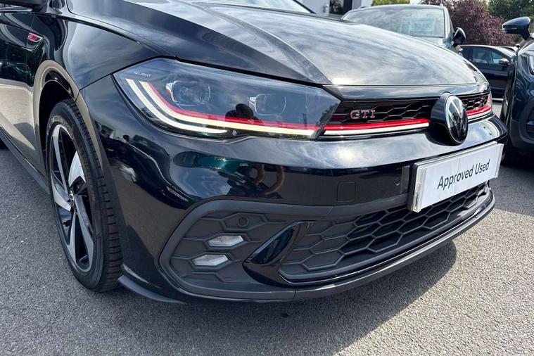 Adaptive cruise control with follow-to-stop and speed limiter, Bluetooth mobile phone interface, Digital Cockpit Pro with 10.25" Display, Driver alert system, Dynamic road sign display, Eco mode, Emergency call service, Power assisted speed sensitive steering, Preparation for We connect and We connect plus, Speedo and rev counter, electronic odometer, trip, service interval display and fuel gauge, Travel Assist - Lane keeping system and traffic jam assist, Travel assist including emergency assist, Trip computer, Warning signal and warning light for front and rear seatbelts not fastened, Washer fluid level indicator, Wireless app connect, Adaptive chassis control, Front wheel drive, Heavy duty rear axle, Rear shock absorpion sports version, Sports select suspension lowered by 15mm, Start-stop system with battery regeneration (recuperation - energy recovery during braking), DAB Digital radio, Diversity antenna for FM reception, Front and rear 6 speakers, Body colour bumpers, Body colour door handles, Electric front windows, Front scuff plates in aluminium with GTI logo, Heat insulating darkened glass in side and rear windows, Heat insulating glass windscreen, Power folding adjustable/heated exterior mirrors and front passenger exterior mirror lowering function, Rear electric windows, Rear fog light, Rear side wing doors, Rear windscreen washer and wiper with interval delay, Sport bumpers with air intakes with honeycomb structure, Third brake light, Twin chrome exhaust tailpipes, 12V power socket in centre console, 2 USB-C ports in the front, 2 USB-C charging sockets on the center console in the rear, 3 rear head restraints, 60/40 split folding rear seat and rear seat bench not split, Air care climatronic air conditoning system with active combination filter and 2-zone temperature control, Black roof lining, Ceramique headliner, Chrome plated radiator grille inserts, air vent surrounds and light switch surrounds, Door and side trim panel, Driver and front passenger seat height adjustment, Driver/passenger sunvisors with illuminated vanity mirrors, Front + rear carpet mats, Front centre armrest, Front footwell illumination, Front seat backrest storage pockets, GTI sports gearshift knob in aluminium leather, Handbrake lever handle in leather, Isofix child seat preparation easy-fit (for two outer rear seats, and front passenger seat) compatible with I-size, LED interior light with switch off delay and dimmer, 2 reading lights front and rear, Luggage compartment cover, Luggage compartment floor, Luggage compartment lighting, Single front passenger seat, Stainless steel pedals, Standard pedal cluster, Three spoke leather wrapped multifunction sports steering wheel with shifting paddles, IQ LED matrix headlights pack - Polo, Light and sight pack - Polo GTI, Sports suspension pack - Polo, 3 point height adj front seatbelts + pretensioners, 3x3 point rear seatbelts, ABS, Driver and front passenger airbag with front passenger airbag deactivation, Drivers and front passengers safety optimised head restraints, ESC (Electronic stability control) + EDL (Electronic Differntial lock) and ASR (Traction control), Extended and predictive pedestrian/ cyclist protection, Front and rear disc brakes with red brake calipers, Front curtain and side airbags with center airbag, Hill hold control, Manual child lock in rear doors, Two tone horn, Tyre pressure loss indicator, Alarm with interior protection, Anti-theft alarm system with interior monitoring, backup horn, and towing protection, Anti-theft wheel bolts, Electronic engine immobiliser, Chrome applications on rotary light, mirror adjustment, window regulator switches, outlet with frame in black, Low rolling resistance tyres,