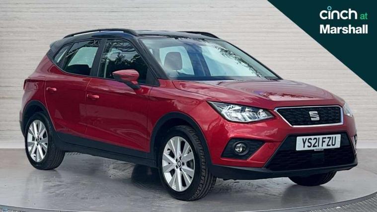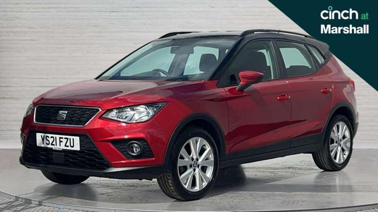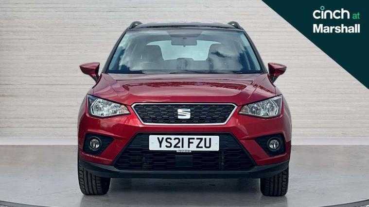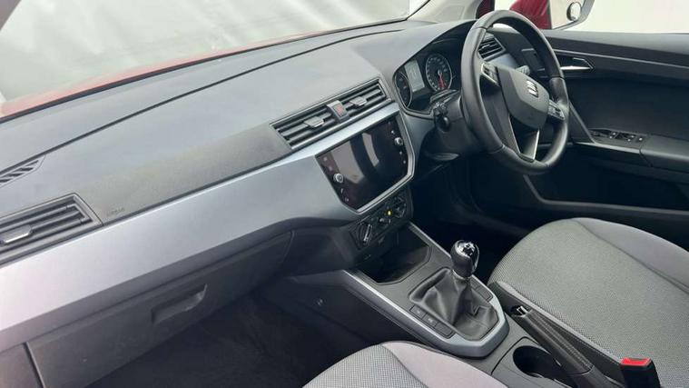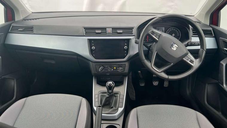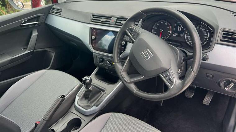 'Lights On' Reminder warning buzzer, Cruise control and speed limiter, Digital clock, Electric speed sensitive power steering, Full Link Smartphone Integration with Mirror Link, Apple Car Play, Google Android Auto with USB Type C cable for Apple and Android compatibility, Low fuel warning light, Outside temperature display, Rear parking sensor, RPM counter, Seat connect with safety, service, remote and online, Trip computer, Comfort suspension, 6 speakers, Bluetooth interface for hands free and audio streaming, DAB digital radio and AM/FM radio, Steering wheel mounted audio controls, Anti theft roof antenna, Automatic activation of hazard warning lights, Automatic headlights, Black roof rails, Black window trims, Body coloured bumpers, Body coloured door handle inserts, Body coloured door mirrors, Dimming rear view mirror, Electric adjustable door mirrors, Electric front/rear windows with one touch/auto up/down, Electric headlight adjustment, Front fog lights with cornering function and rear fog light, Halogen tailights, Hidden exhaust pipe, LED daytime running lights, LED licence plate lighting, Protective side mouldings, Rear window wash/wipe, Twin halogen headlights, Visible VIN plate, Windshield wiper with intermittent control and potentiometer, 2 cupholders, 60/40 split folding rear seat, Air conditioning, Cloth upholstery, Double boot floor, Driver sunvisor with covered mirror + card holder, Dust/pollen filter, Front courtesy light with front reading lights, Gear shift indicator, Grey interior roof, Height adjustable front seats, Height/reach adjustable steering column, Illuminated boot, Instrument lighting with brightness control, ISOFIX points in outer rear seats with top tether anchorage points, Leather steering wheel/gear knob/handbrake, Passenger sunvisor with vanity mirror, Two front and three rear height adjustable headrests, Connectivity pack plus - Arona, Interior chrome pack - Arona, 3 point seatbelts on all rear seats, ABS, Active front headrests, Child locks on rear doors, Driver and front passenger airbags with front passenger airbag de activation, front side and curtain airbags, Electronic stability control, Emergency Brake Assist (EBA) and front assist, Front and rear seatbelt reminder, Hill hold control, Multi-Collision braking, Tiredness recognition system, Traction control, Tyre pressure monitoring system, 2 folding remote keys with window open/close function, Electronic engine immobiliser, Locking wheel bolts, Remote central locking + deadlocks, Interior chrome line trim, Plastic grey dashboard, 17" Dynamic alloy wheels,